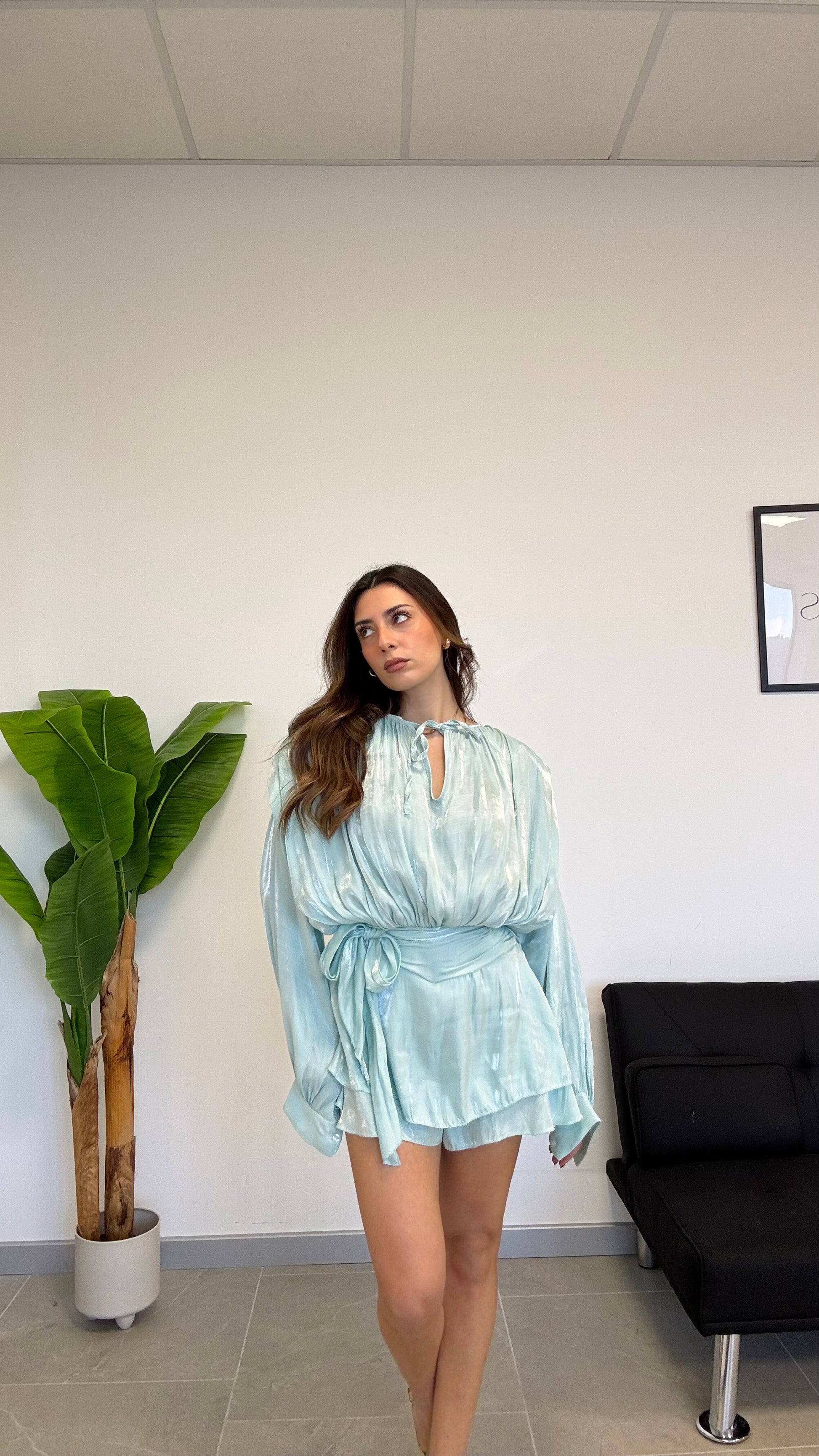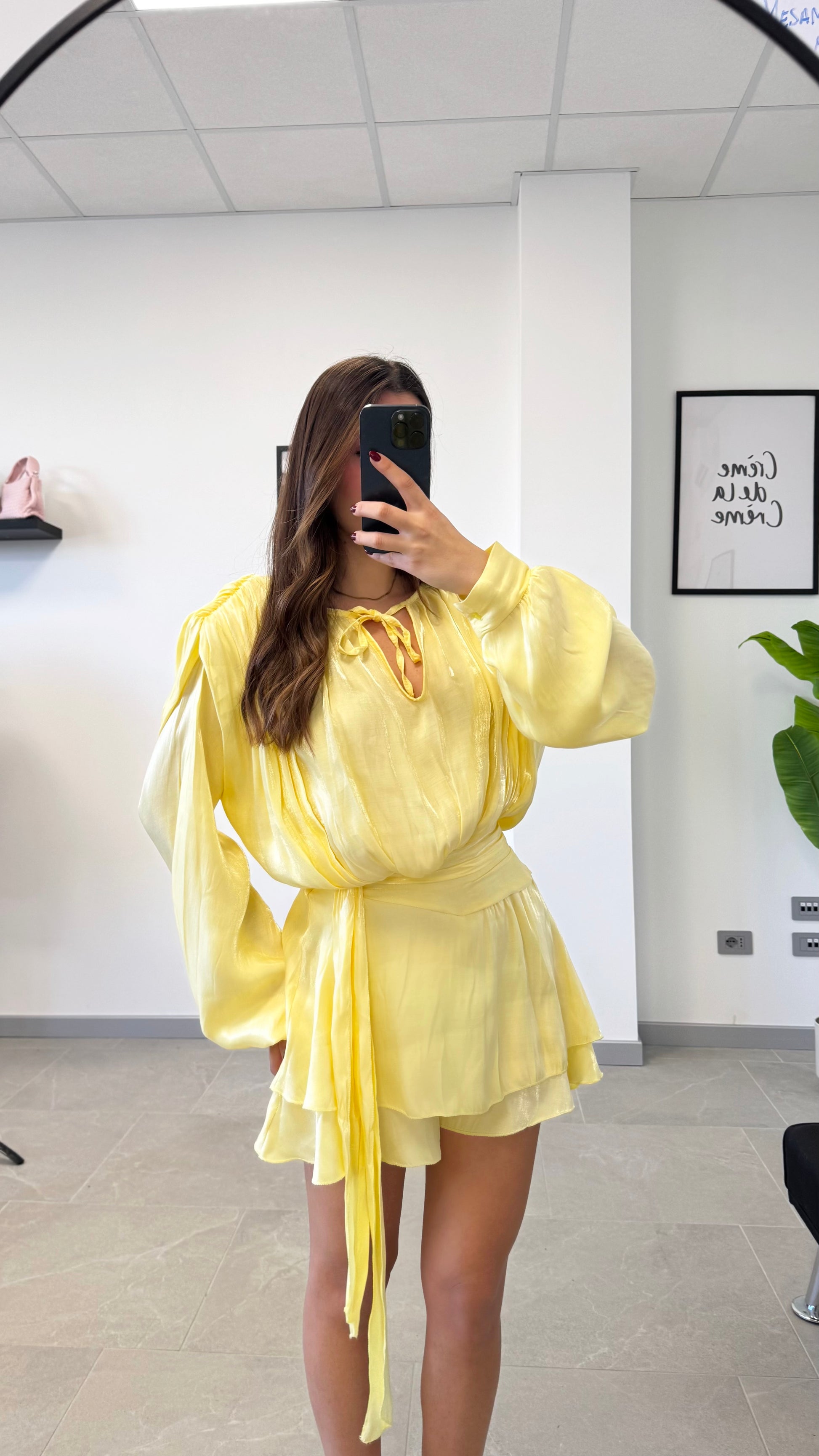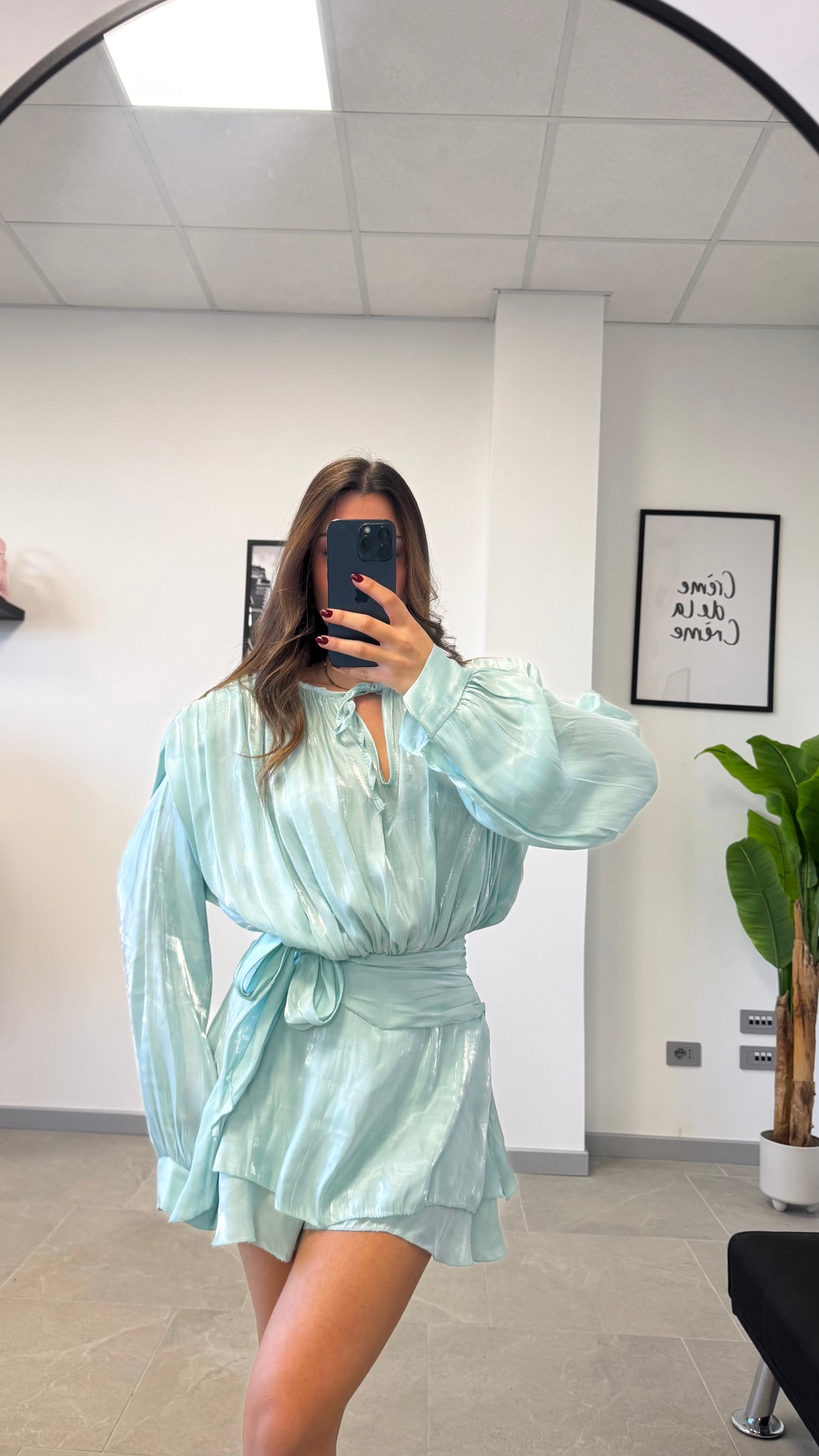 Abito Honey effetto seta sotto porta la culotte, non è trasparente, elasticizzato, spalla leggermente strutturata che scende verso il basso, taglia unica che veste 34-44.