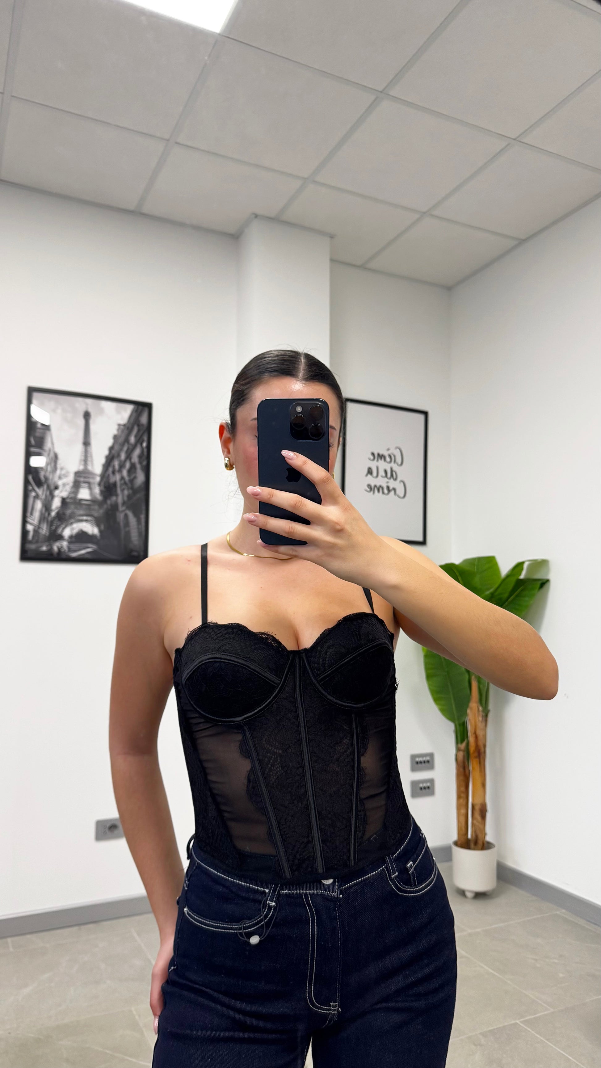 Corsetto con coppe interne e bretelle regolabili, ricamato in pizzo, chiusura con uncino, taglia unica che veste 36-46, puoi vestire fino ad una 4 di seno.