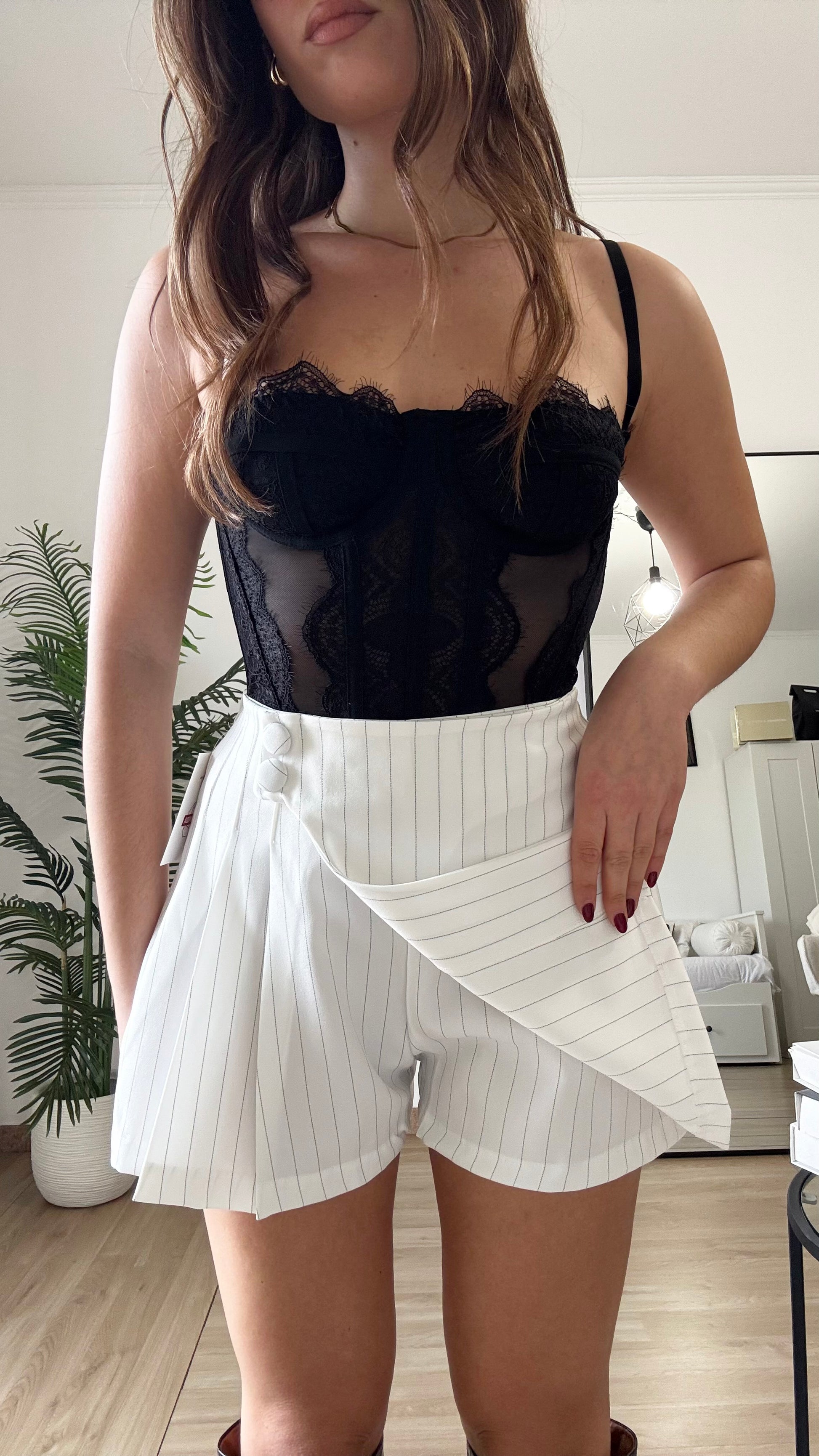 Gonna pant gessata con elastico sul retro, in taglia unica che veste 34-46, abbastanza elasticizzata, molto comoda.