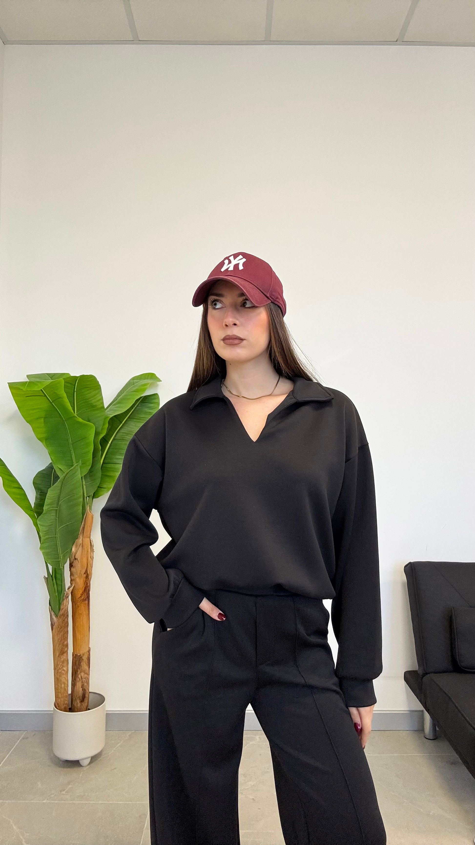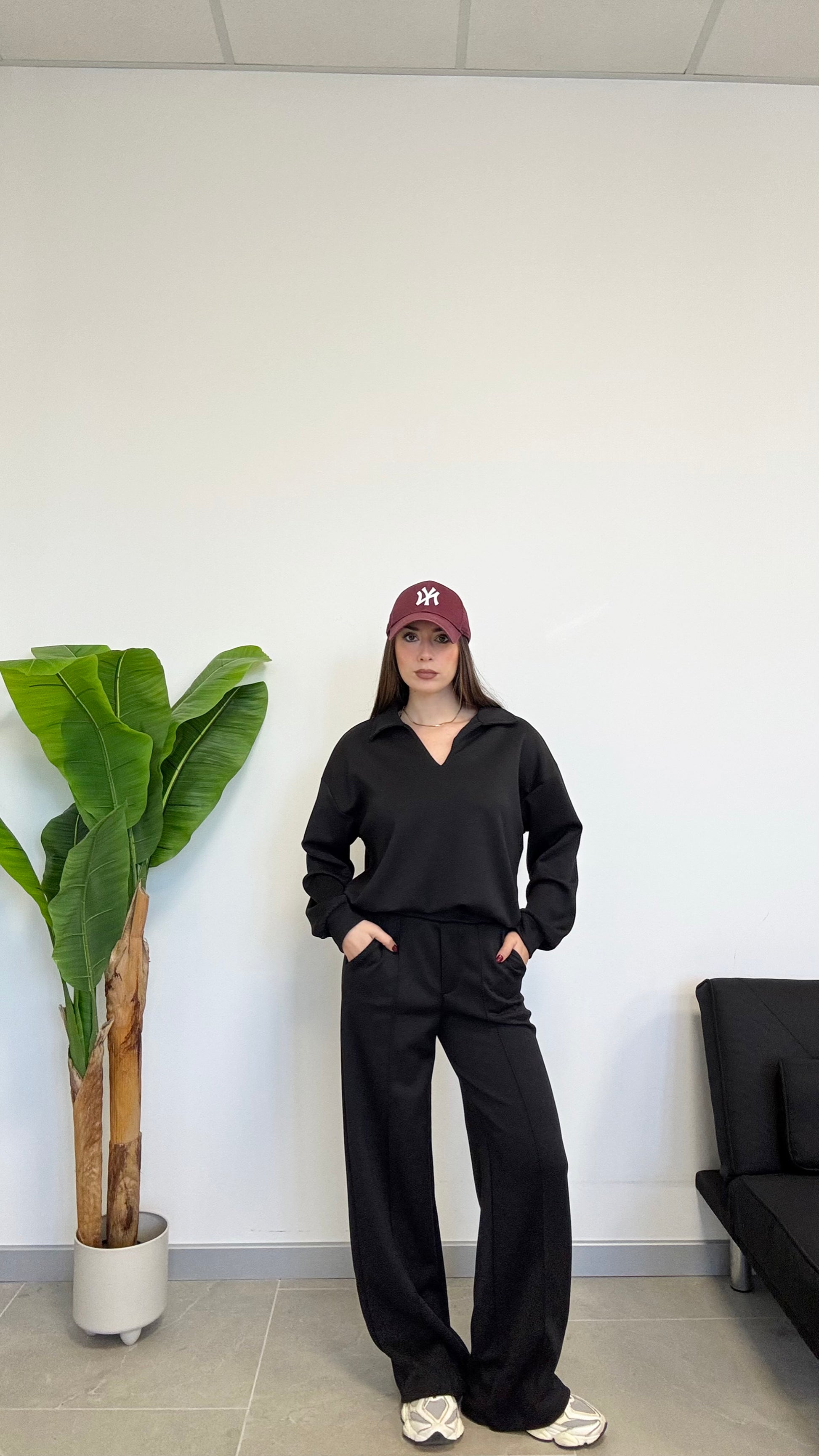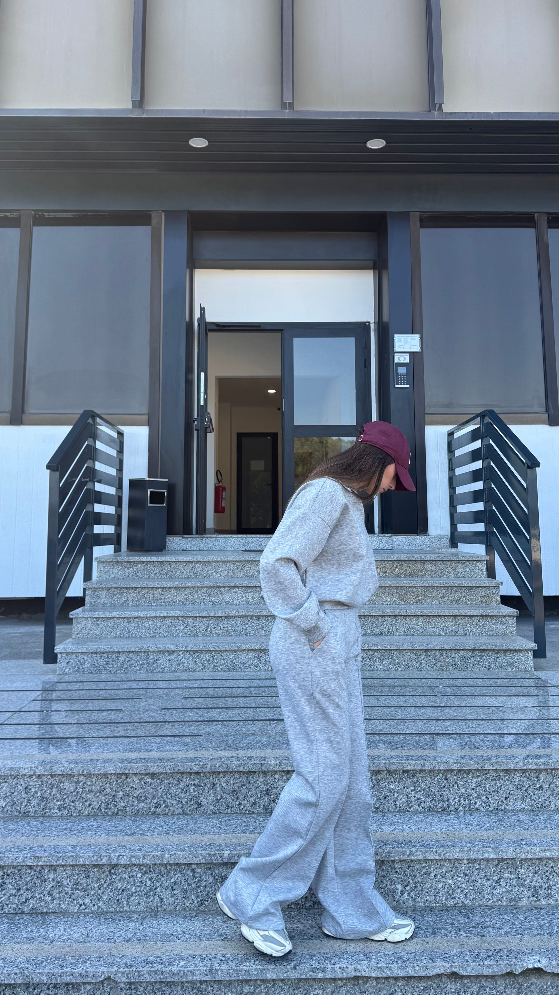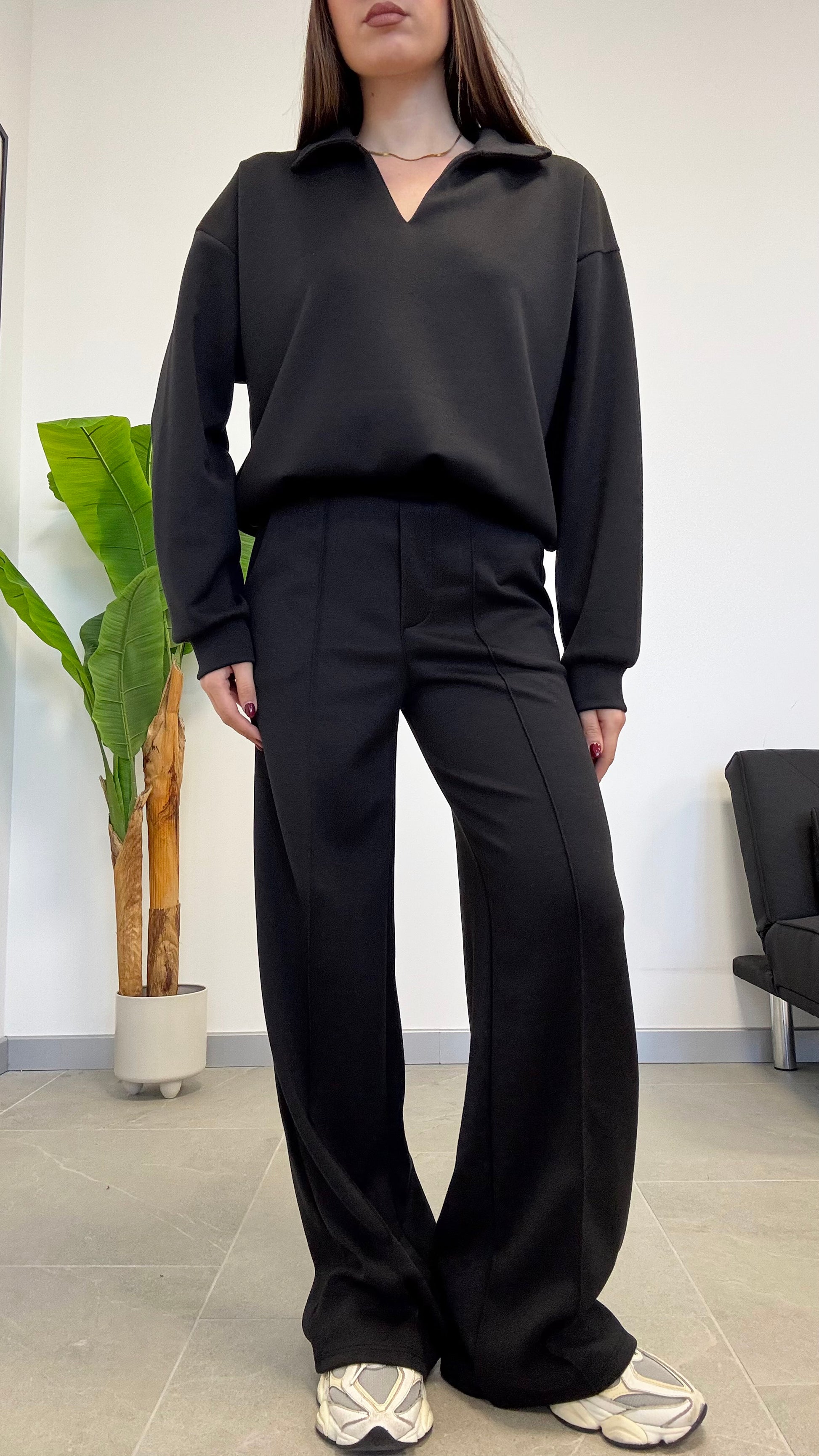 Coordinato in tuta composto da felpa e pantalone a palazzo, con tasche ed elastico, in taglia unica molto elasticizzato veste 36-46.