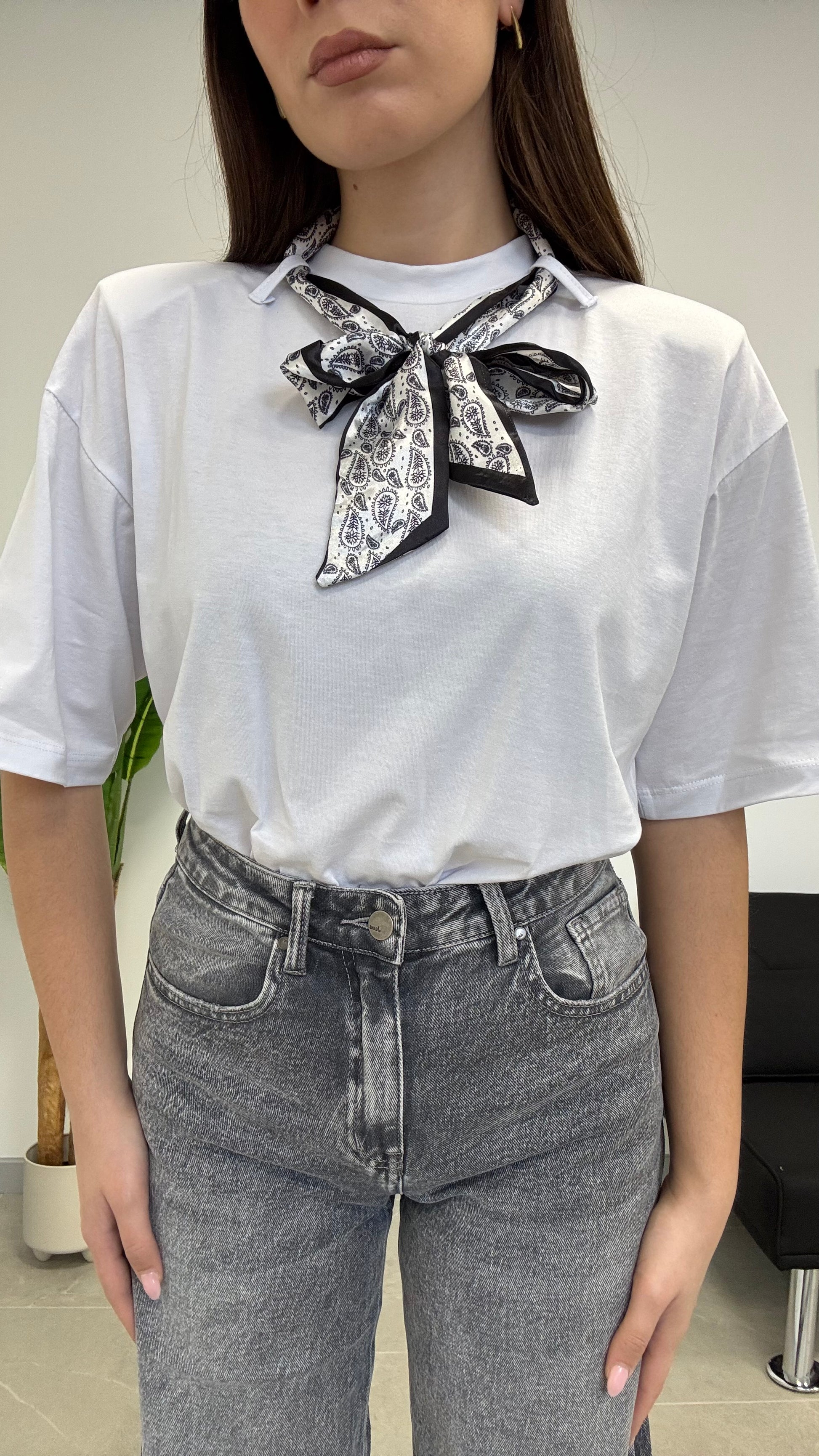 T shirt Just West 100% cotone, spalla strutturata, con foulard removibile, taglia unica che veste 34-46.