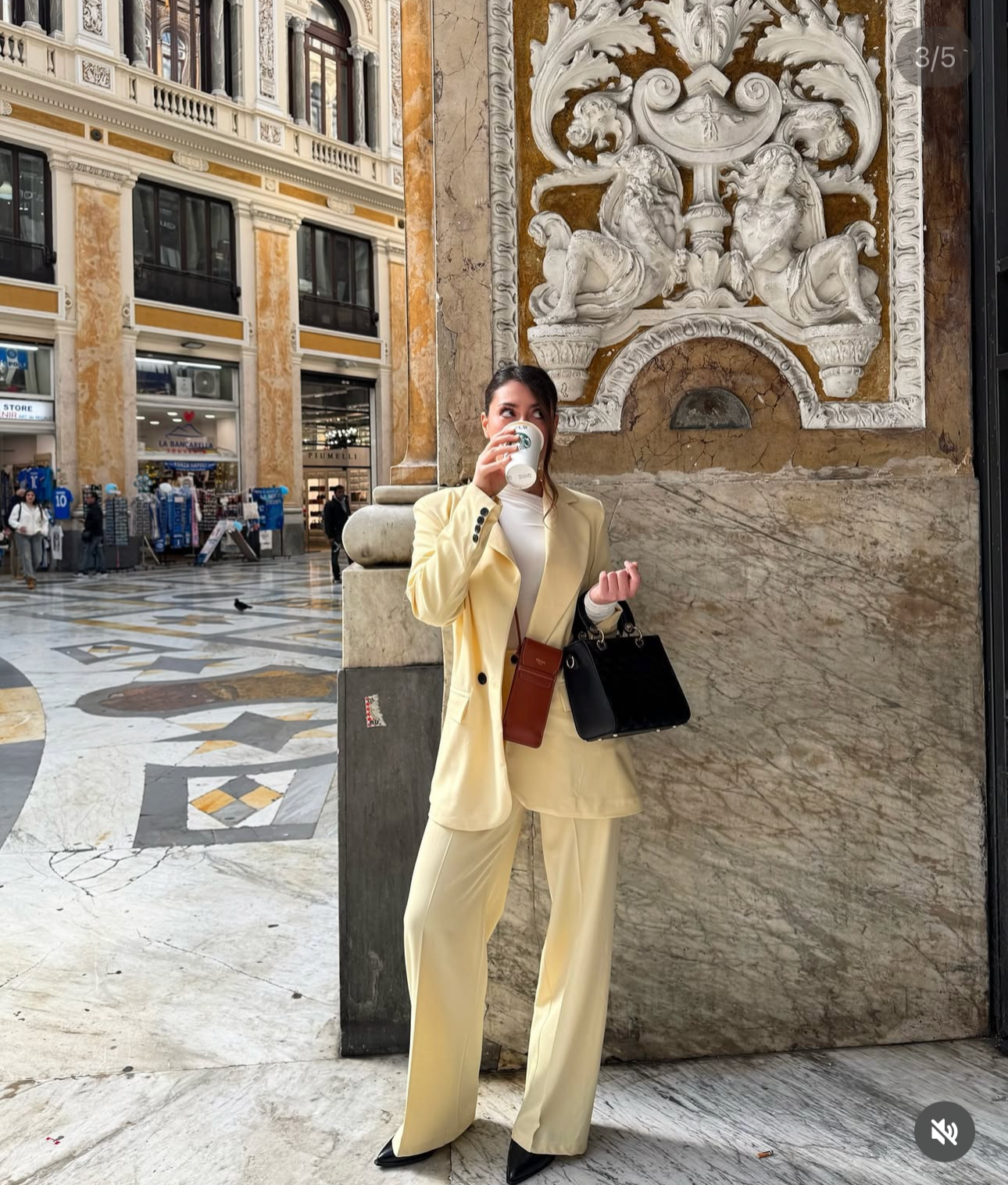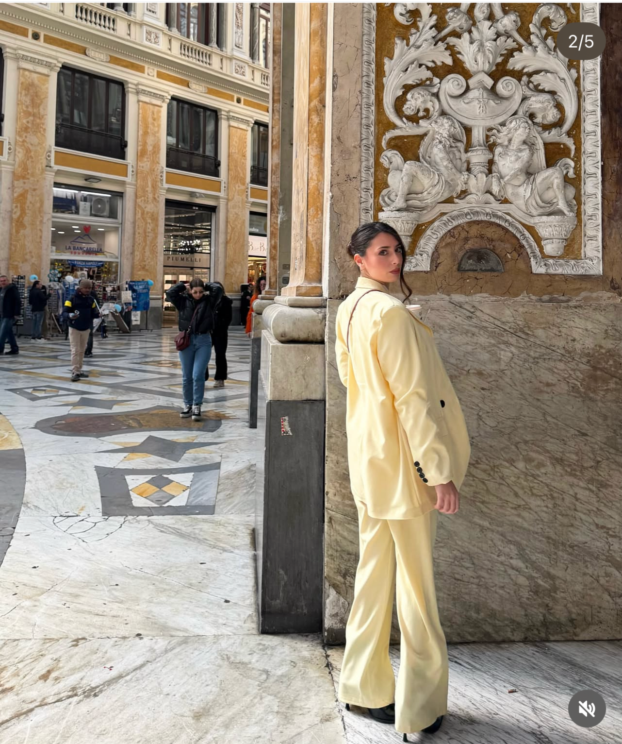Tailleur beste seller con giacca doppiopetto spalle imbottite e giacca foderata, pantalone alta vita con elastico sul retro a palazzo, tg unica che veste 36-46.