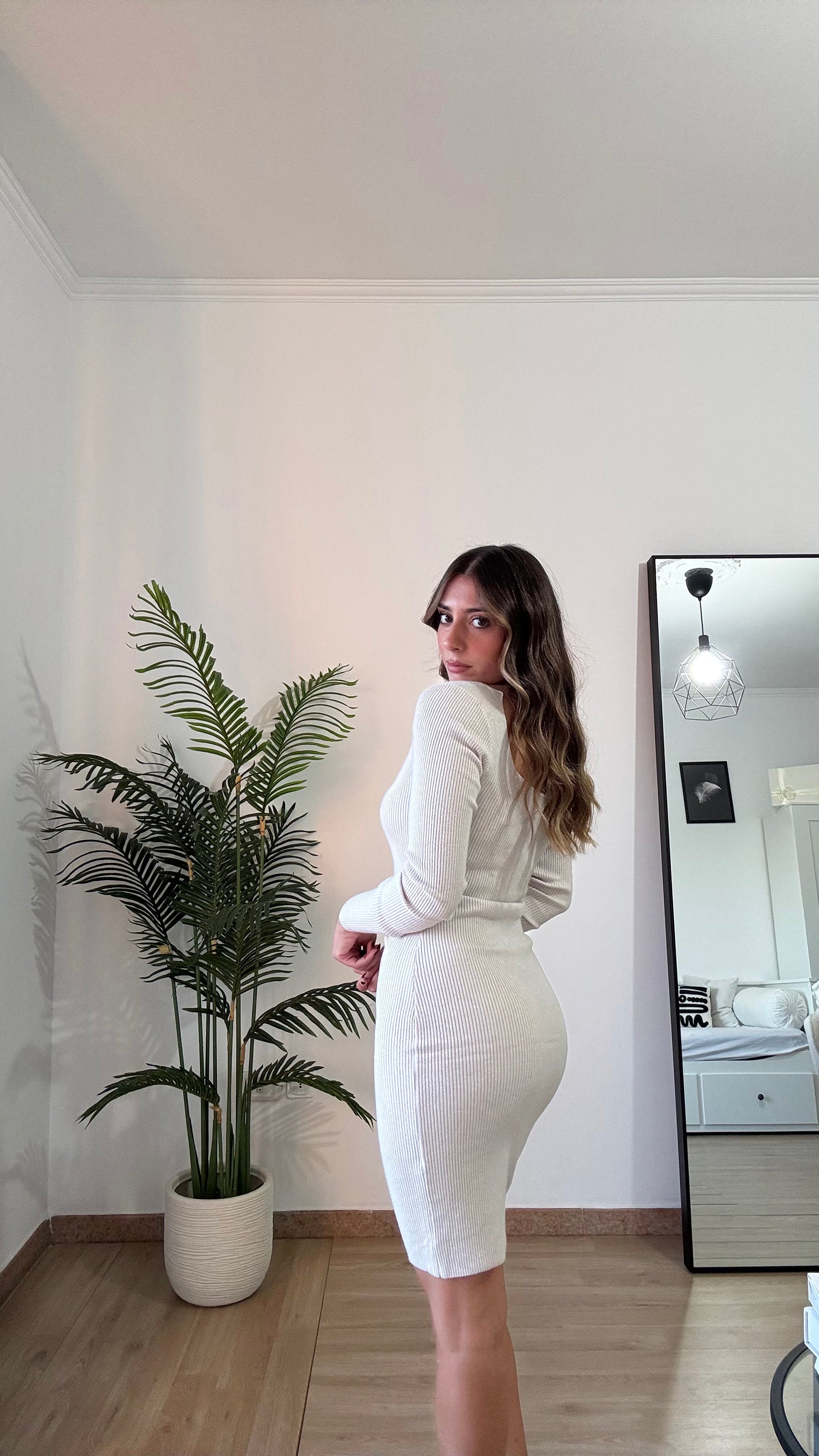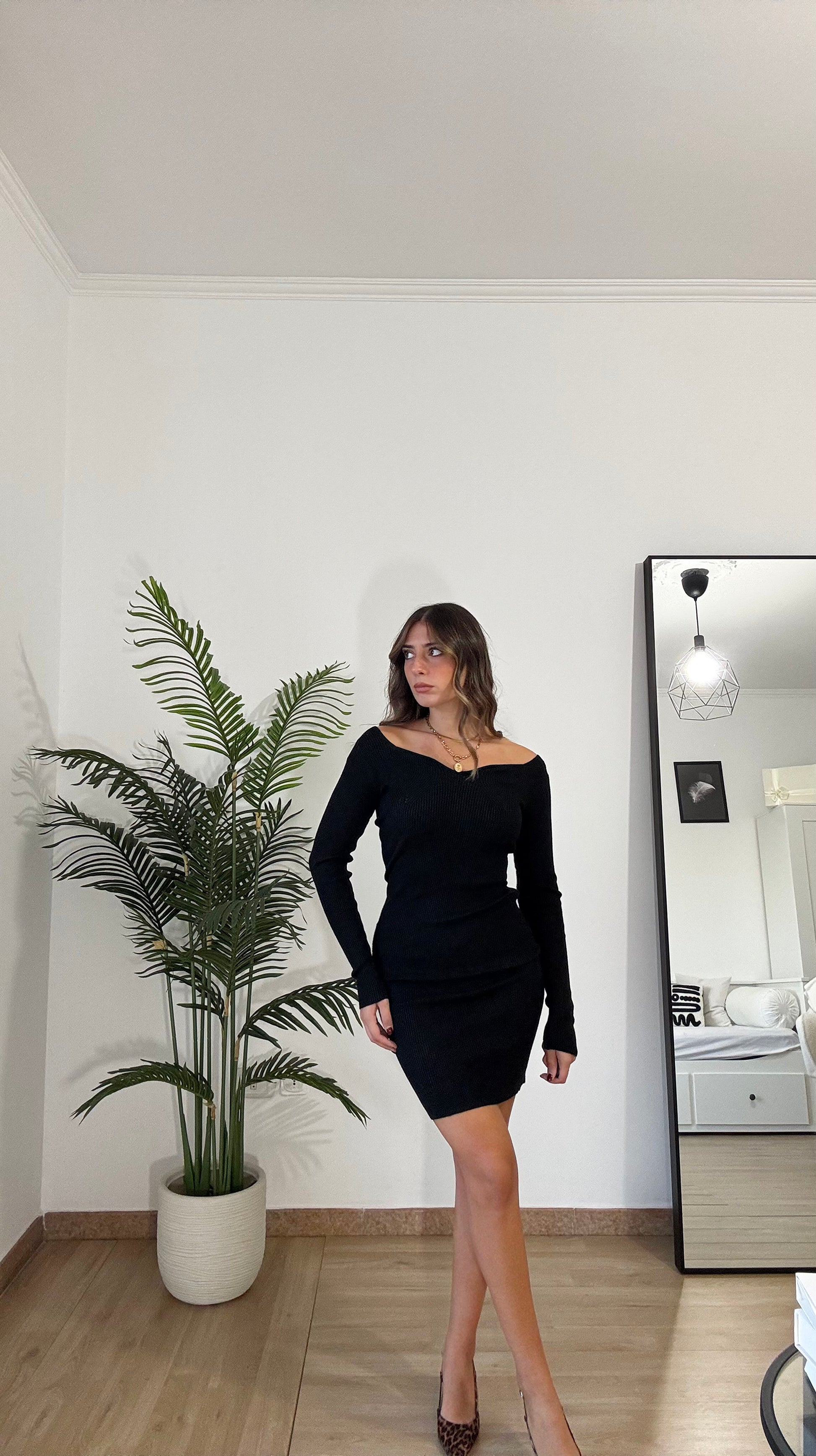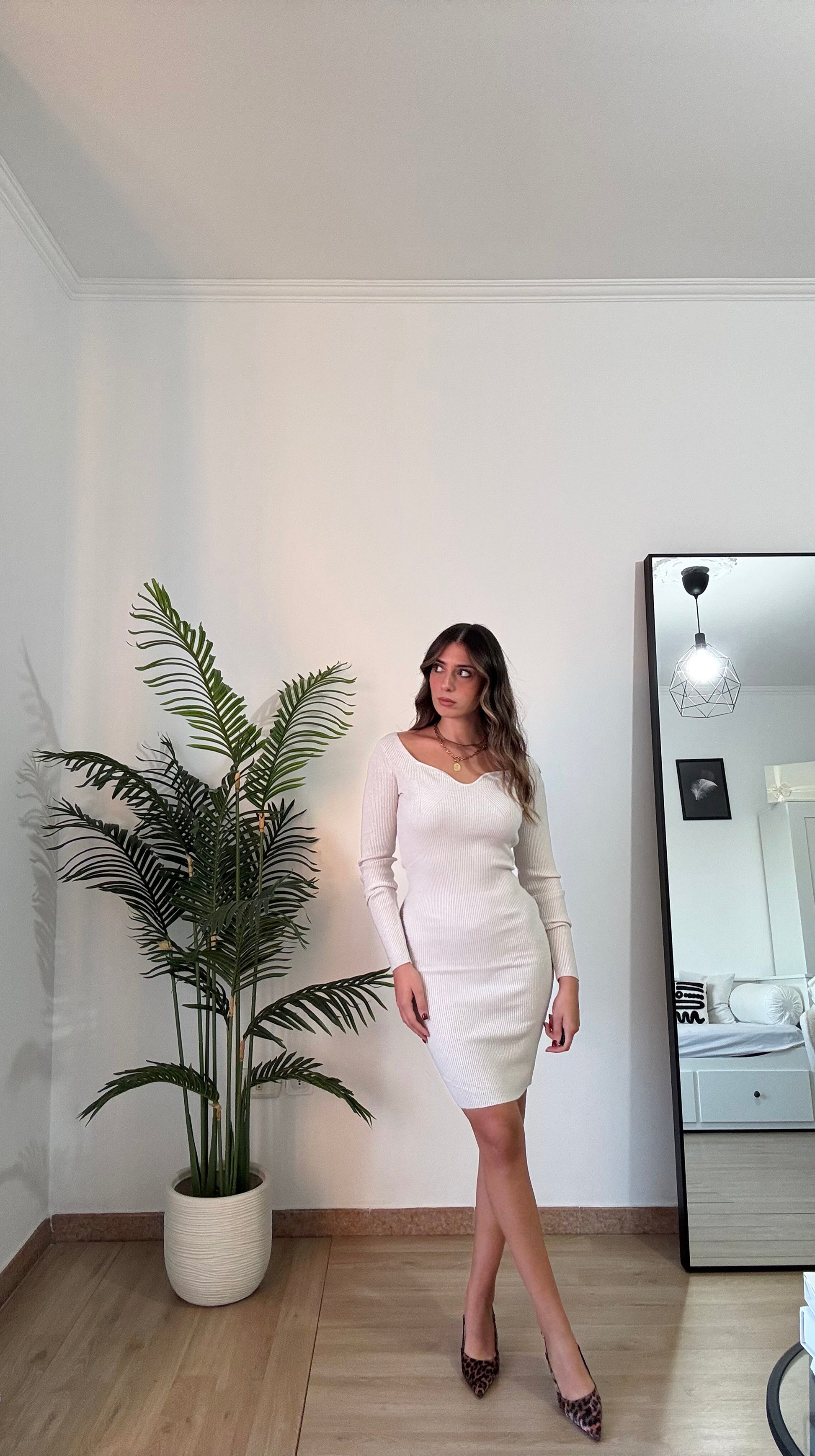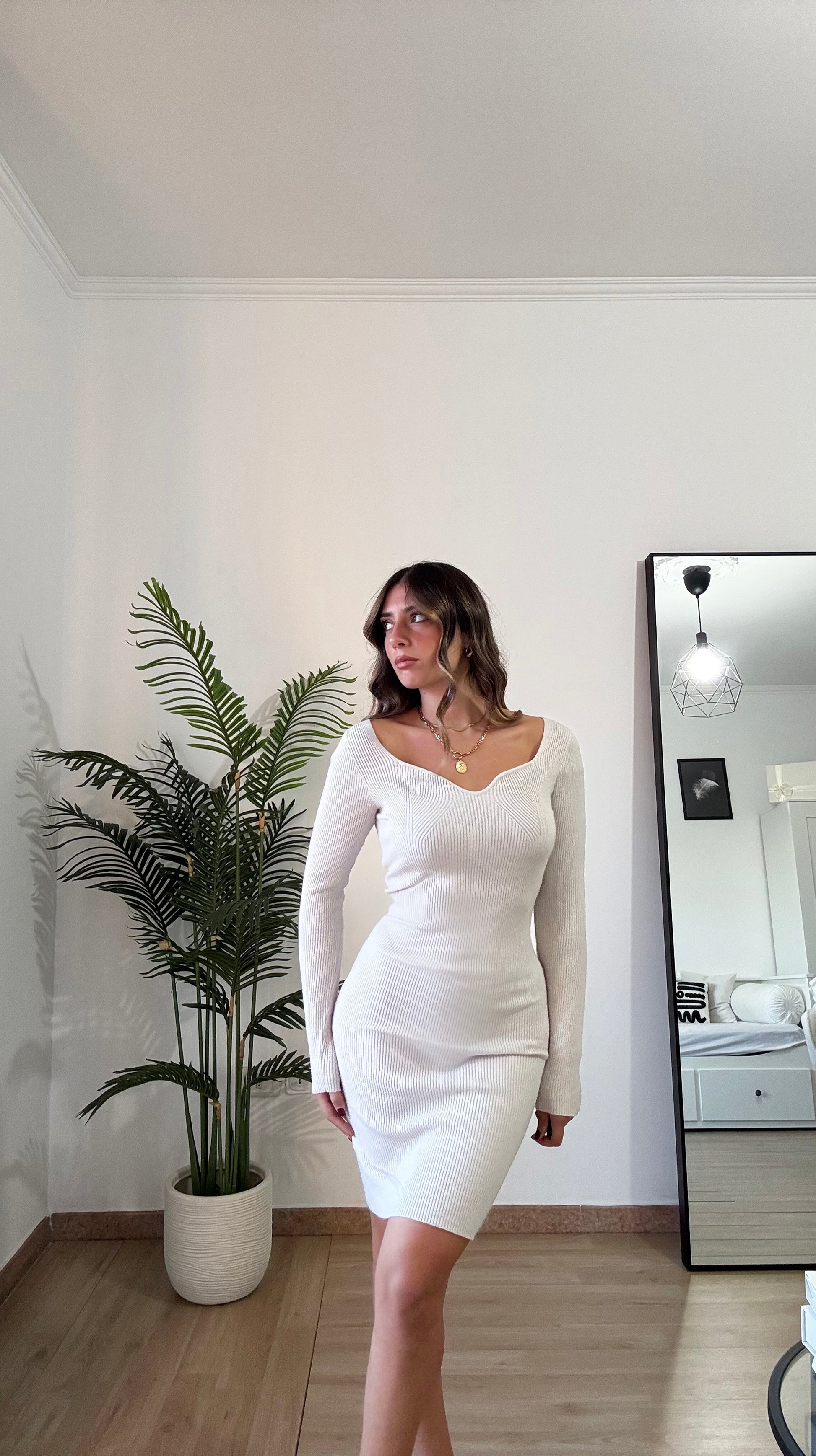Abito a costine midi con scollo a cuore tessuto in maglia super caldo, taglia unica veste 34-38, super elasticizzato!