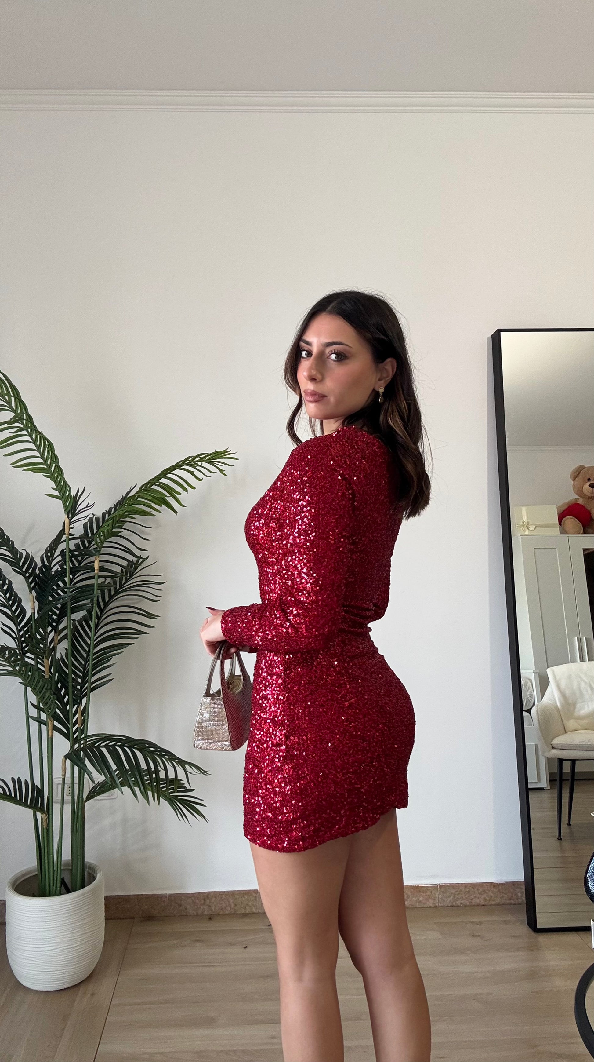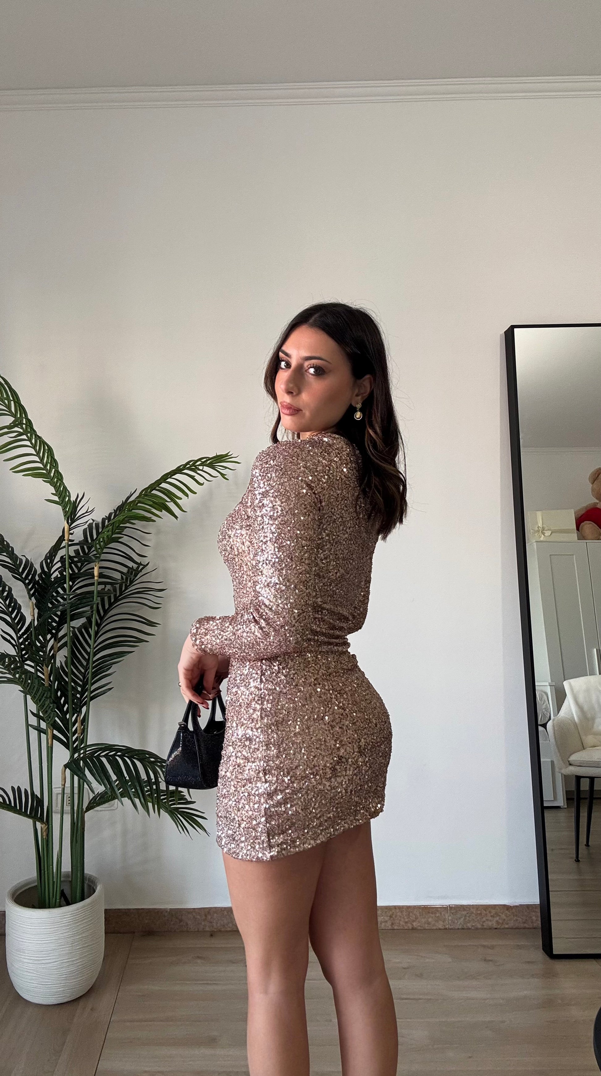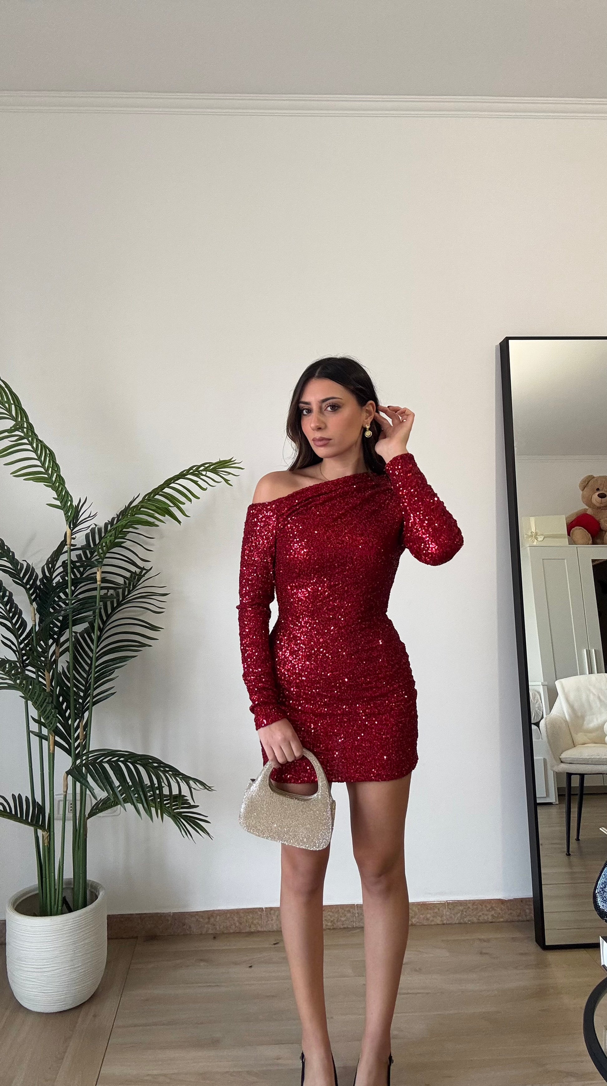 Abito asimmetrico paillettes, taglia unica chd veste 34-42, interno foderato abbastanza pesante.