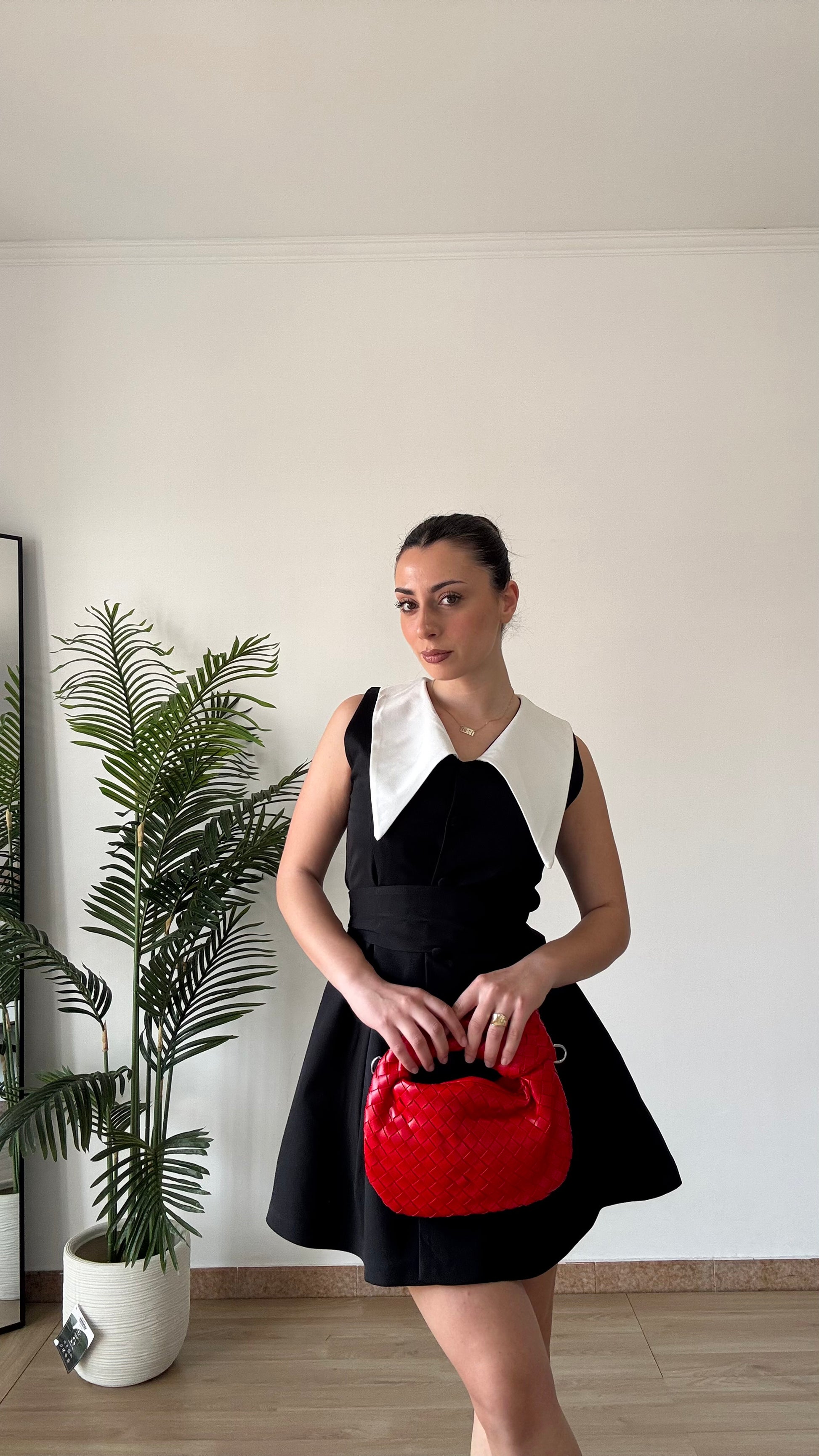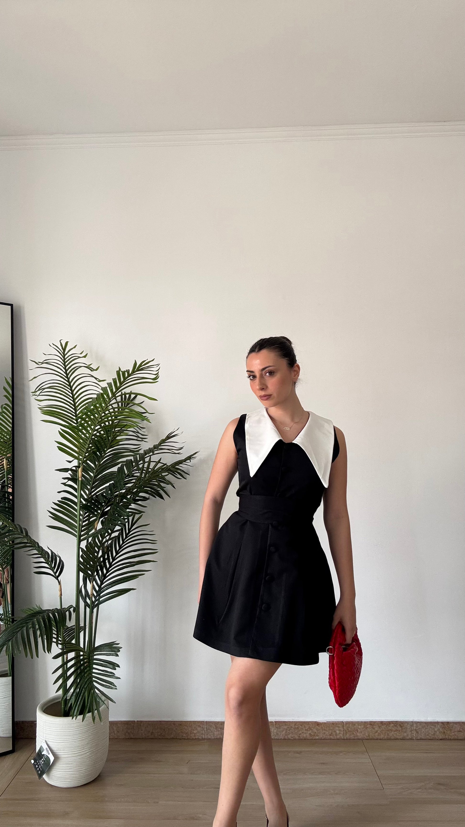 Abito con bottoni centrali e fascia centrale rimovibile, taglia unica che veste 34/46.