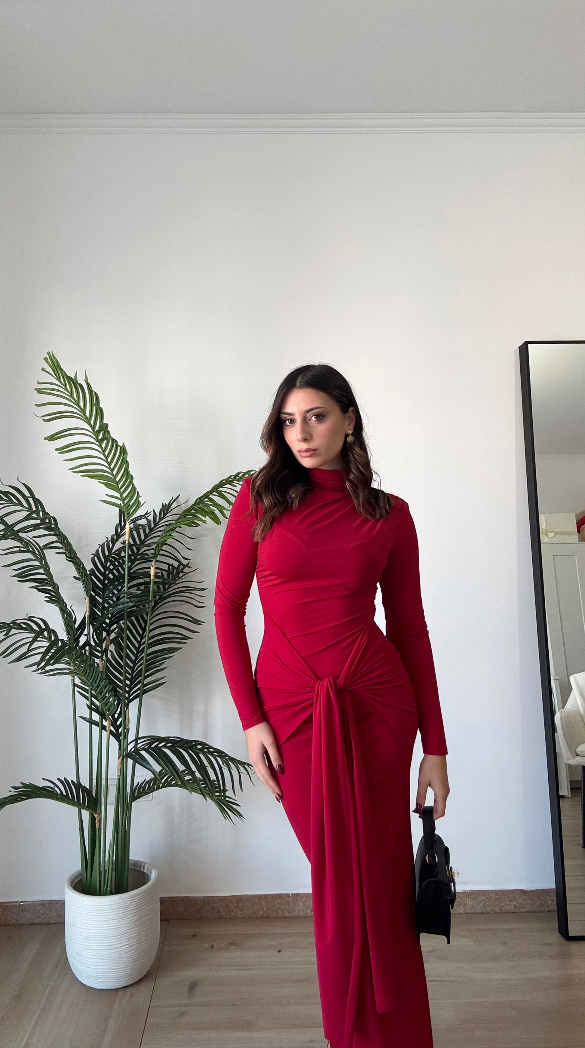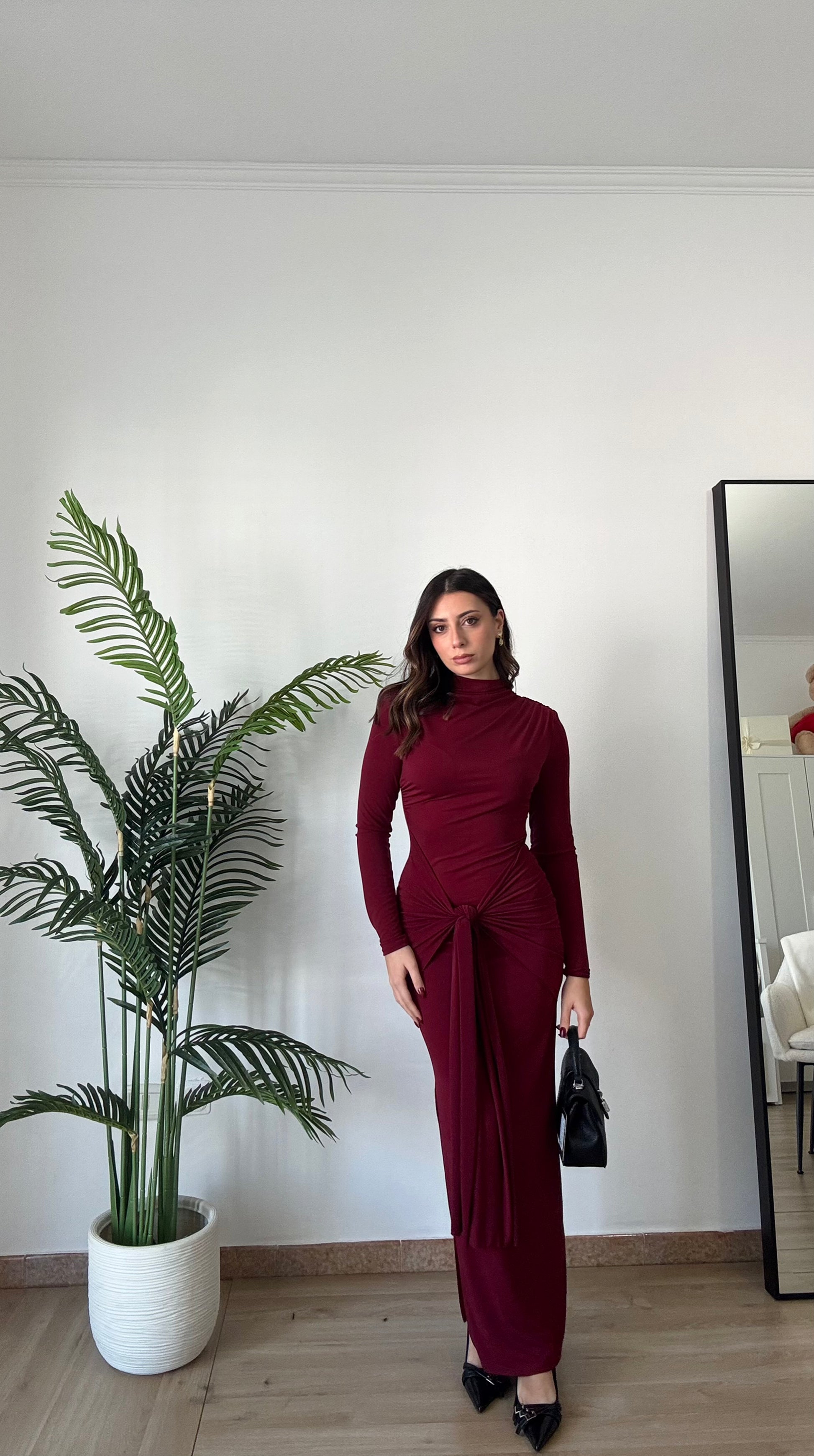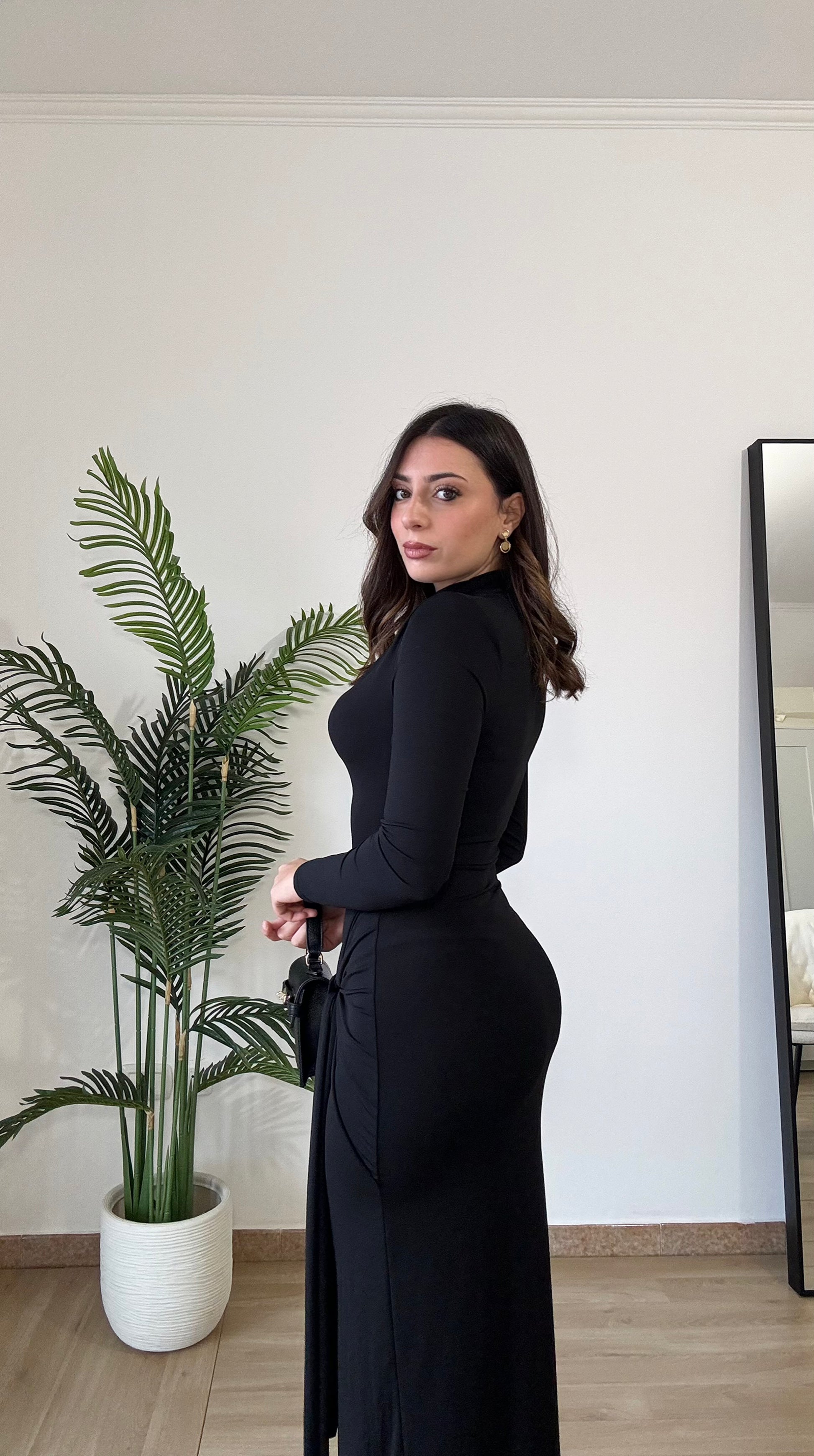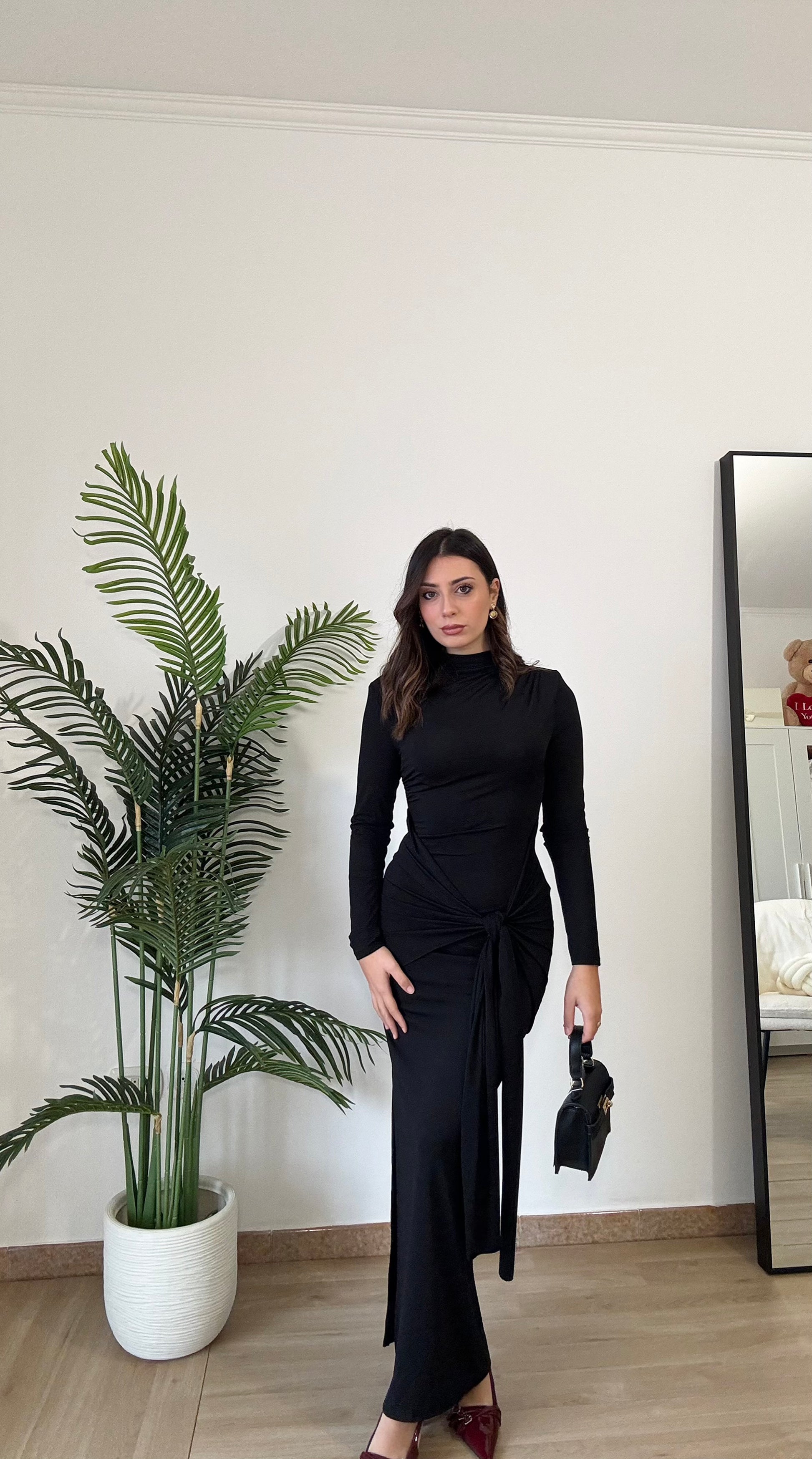 Abito lungo con spacco sulla caviglia, elasticizzato spalle imbottite, taglia unica veste 36-44, regolabile col nodo che troviamo sul davanti.