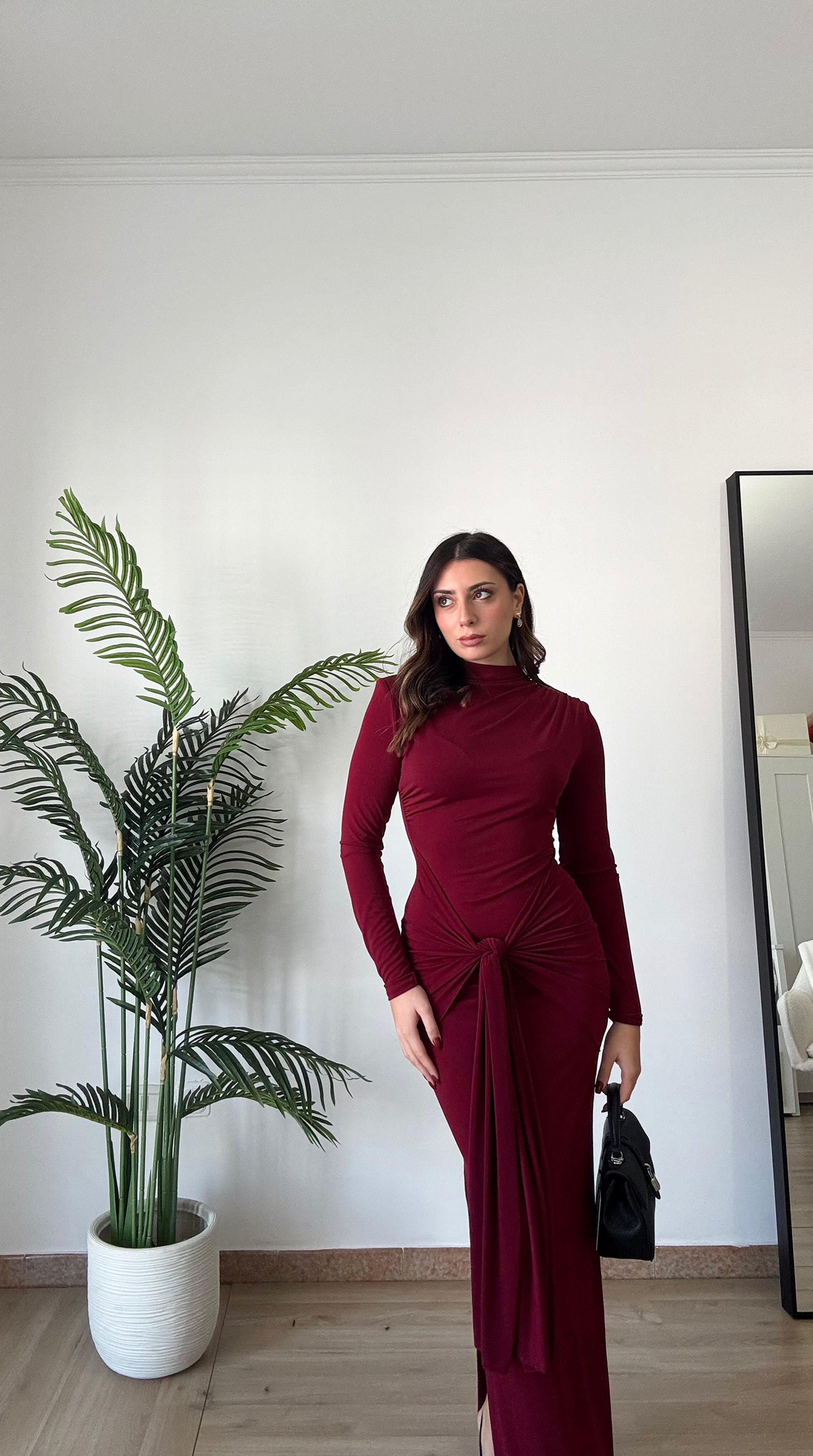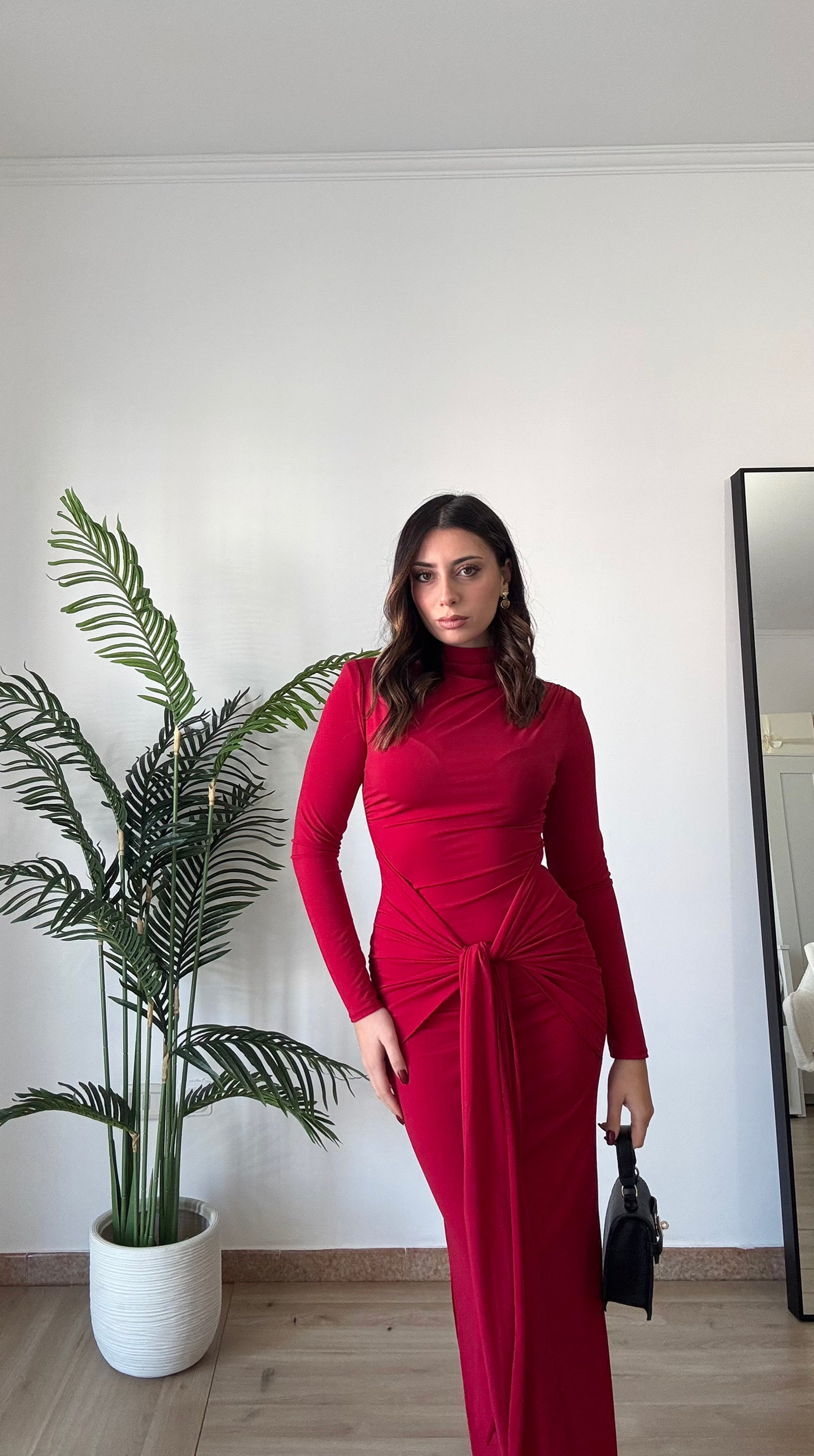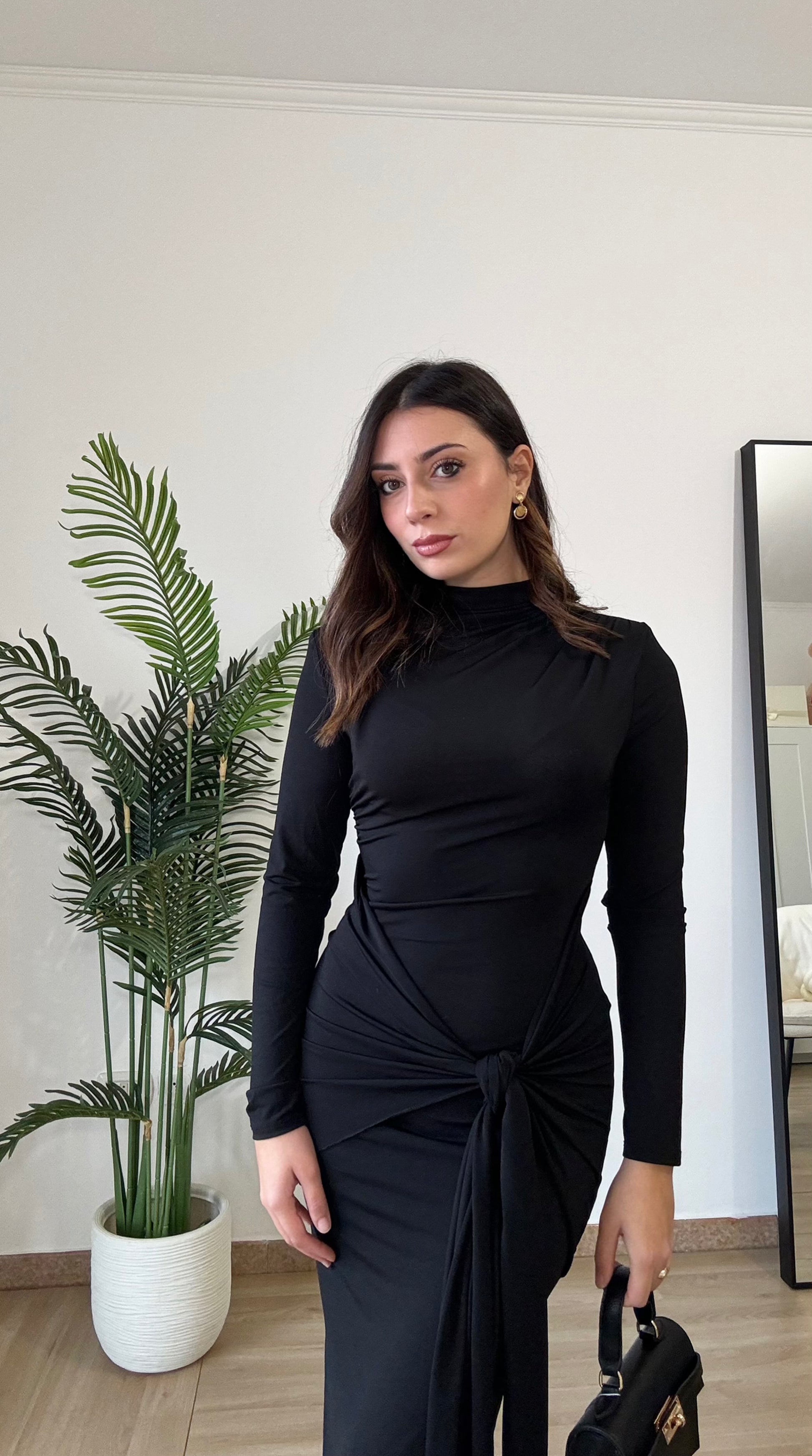Abito lungo con spacco sulla caviglia, elasticizzato spalle imbottite, taglia unica veste 36-44, regolabile col nodo che troviamo sul davanti.