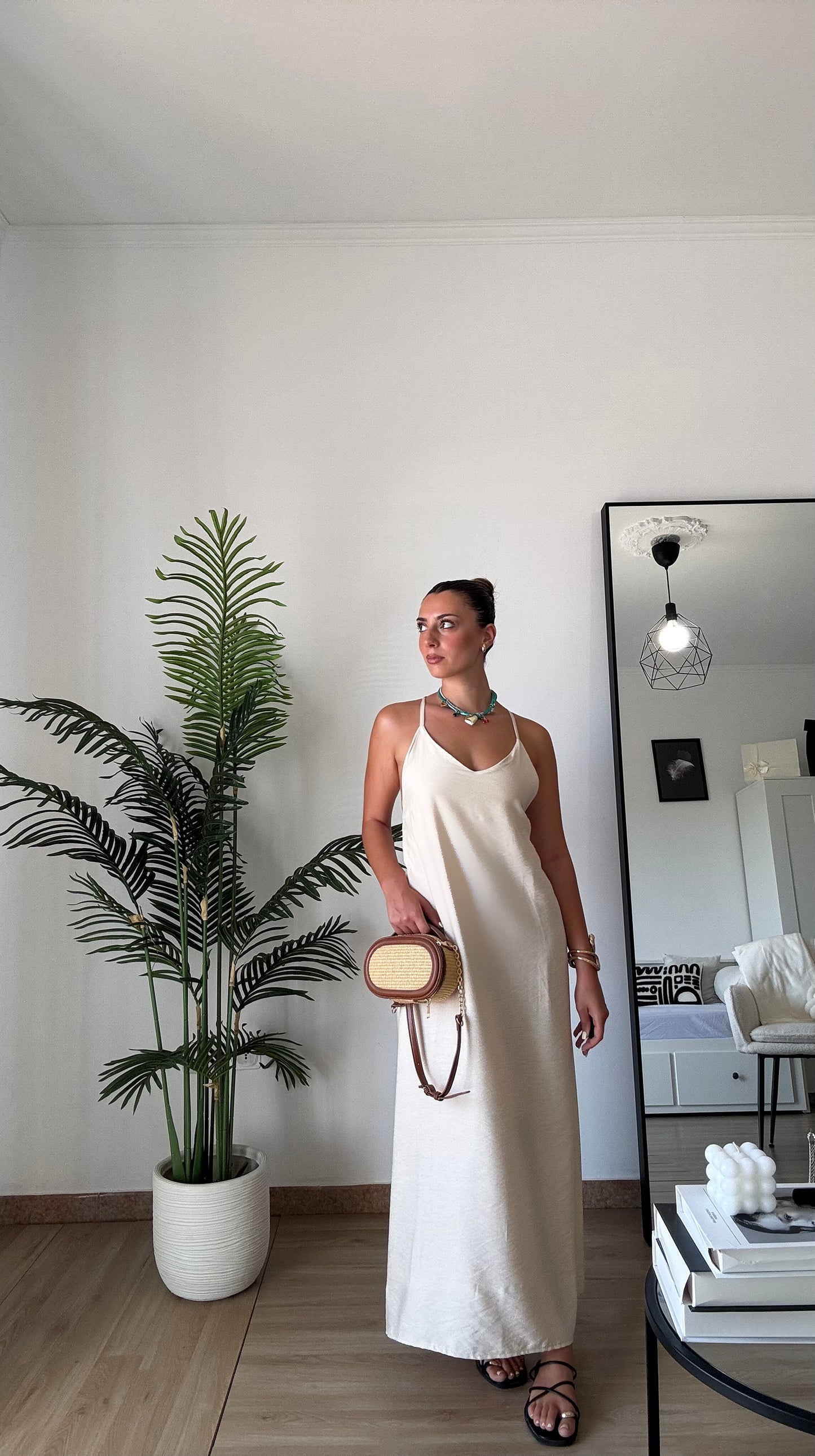 Abito “Today” super versatile e freschissimo 87% viscosa, porta una doppia fascia sul petto per il seno, sul retro ha un leggero elastico, taglia unica veste fino ad una taglia 34-44, di seno massimo fino ad una 3A-3B.