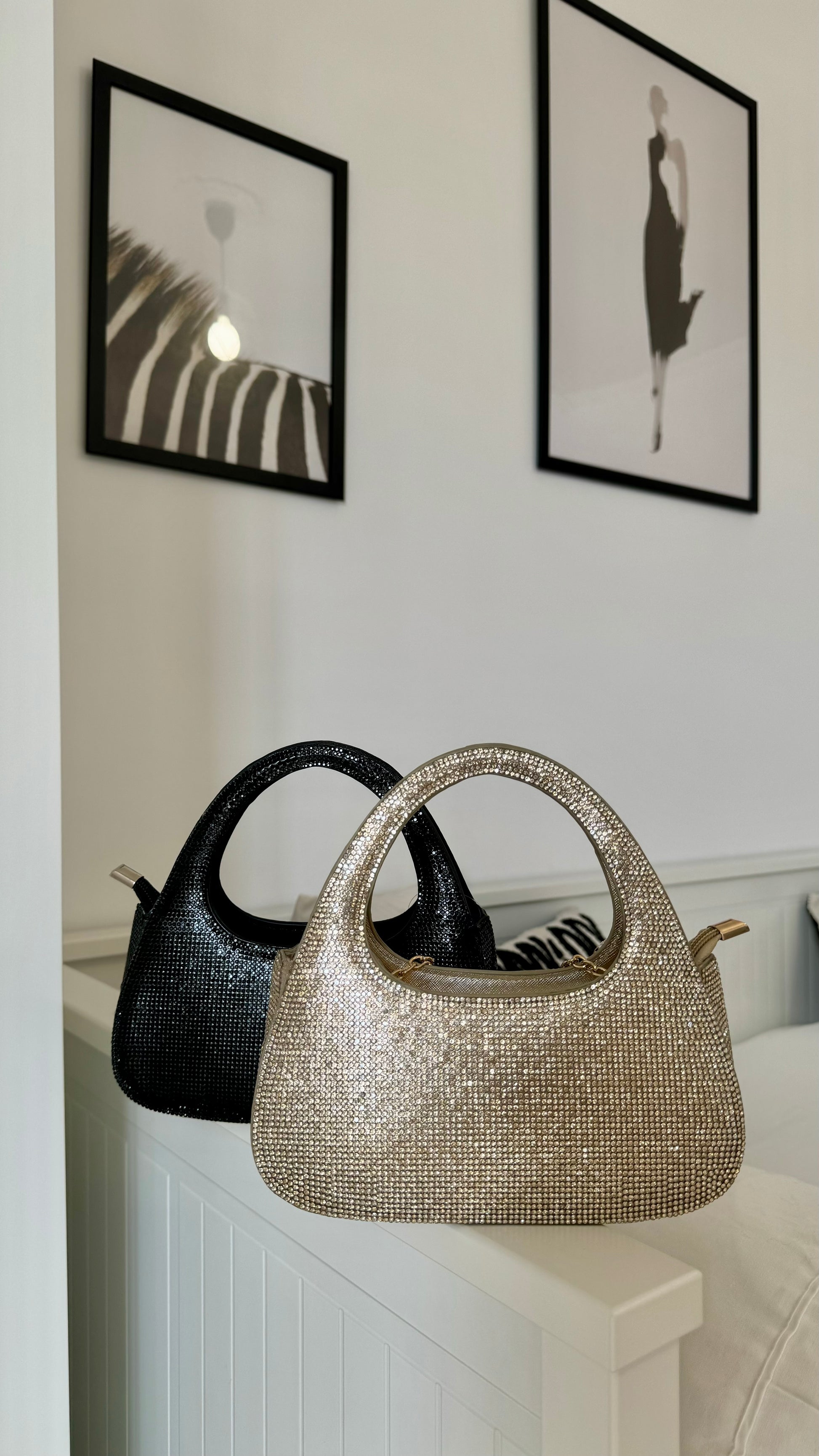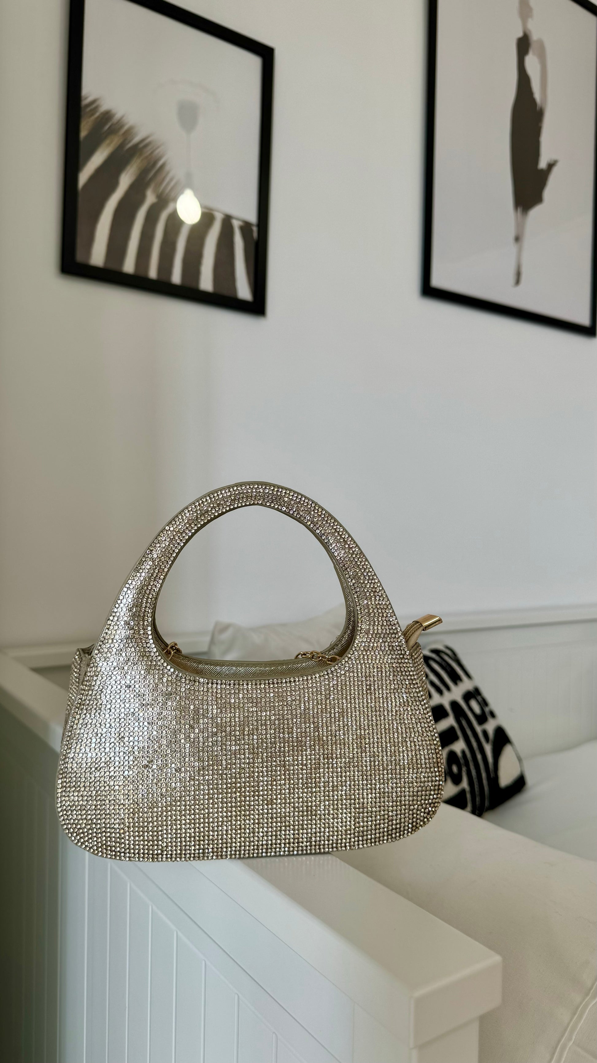 Bag ricoperta di brillantini molto elegante e fine, perfetta per le nostre festività, compresa di tracolla a catena.