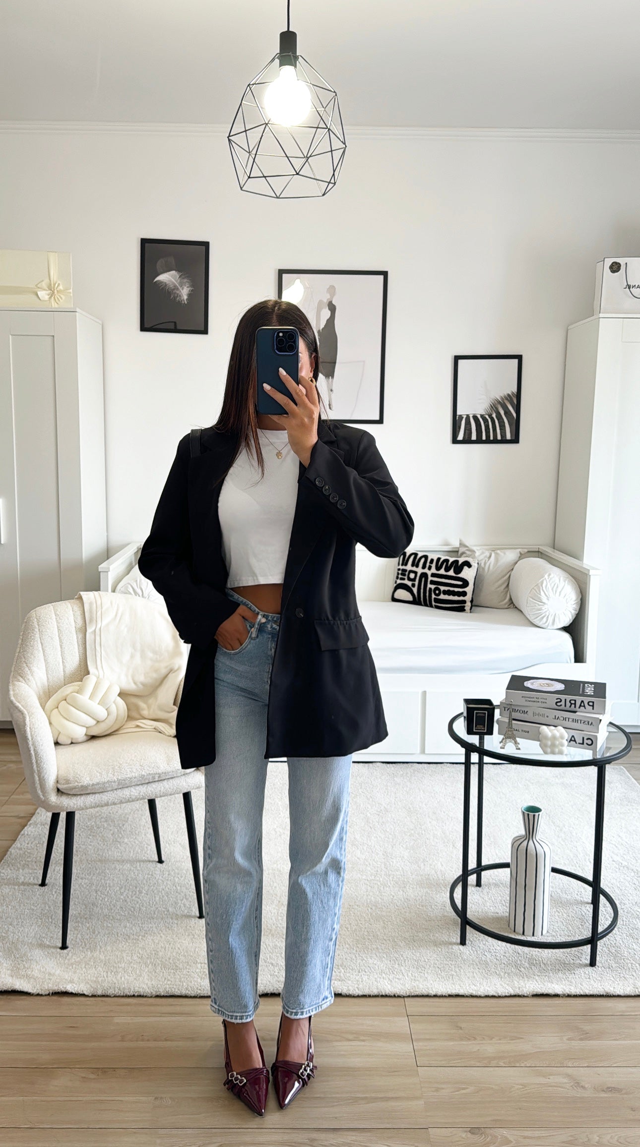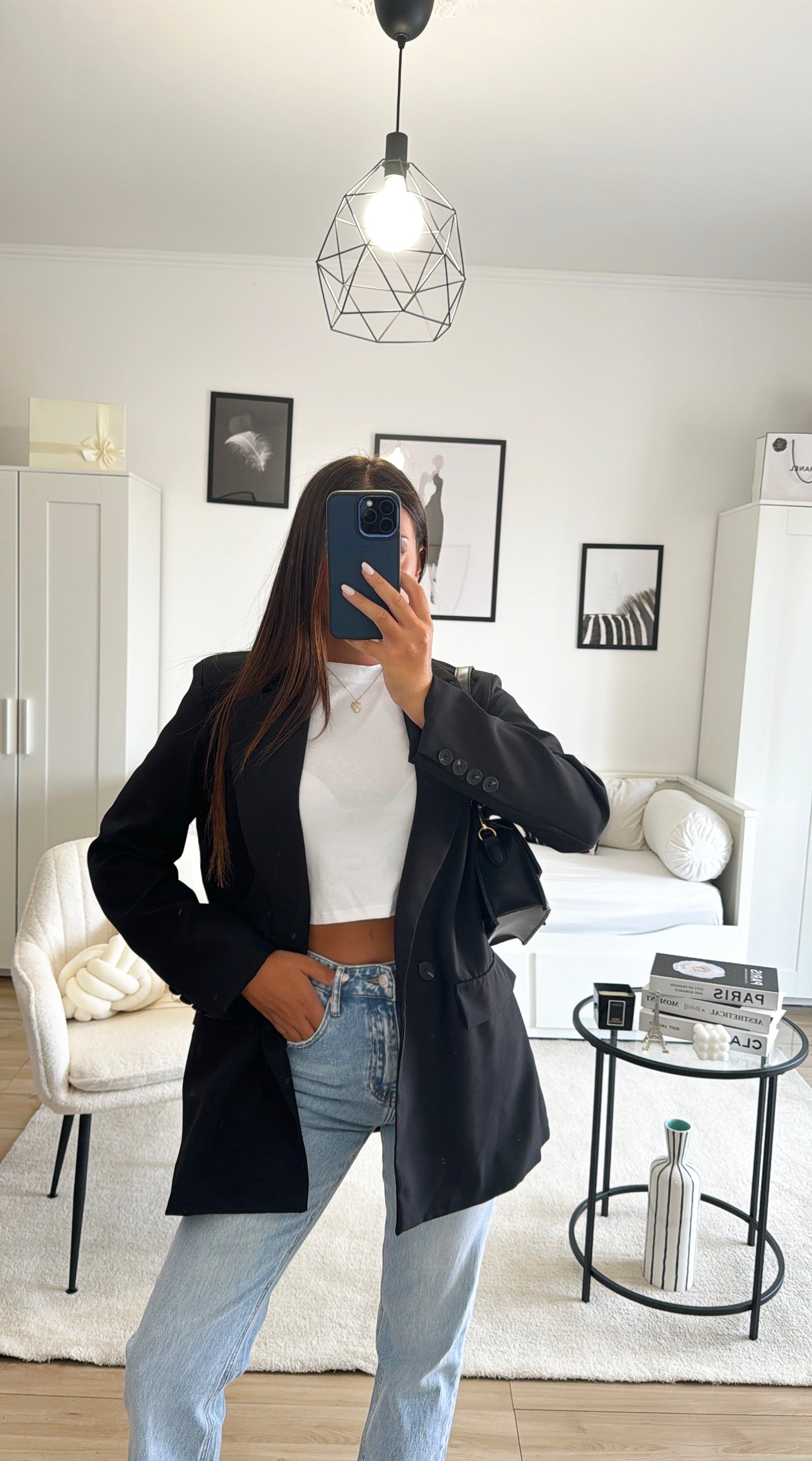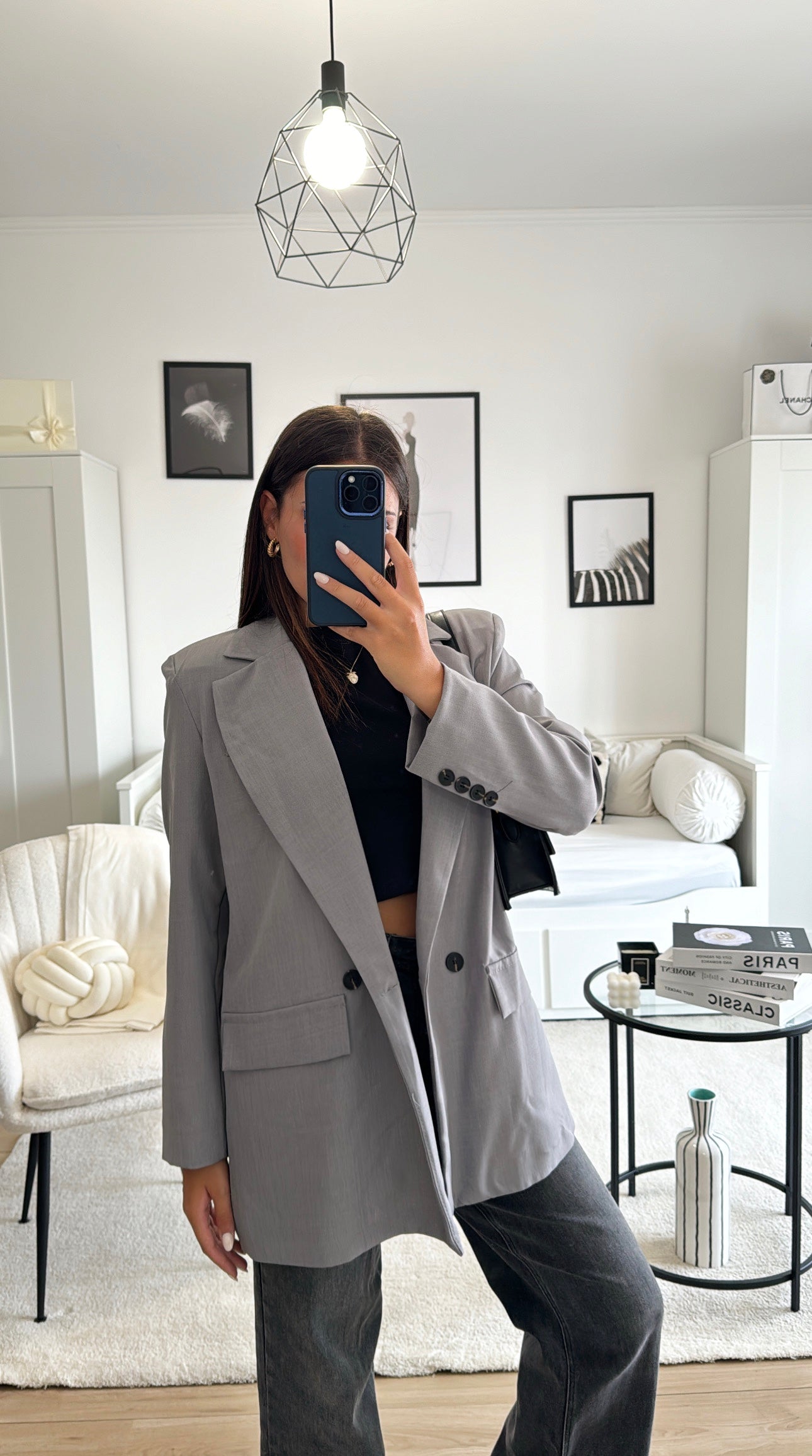 Blazer doppio petto taglia unica veste da una S ad una XL, spalle imbottite.