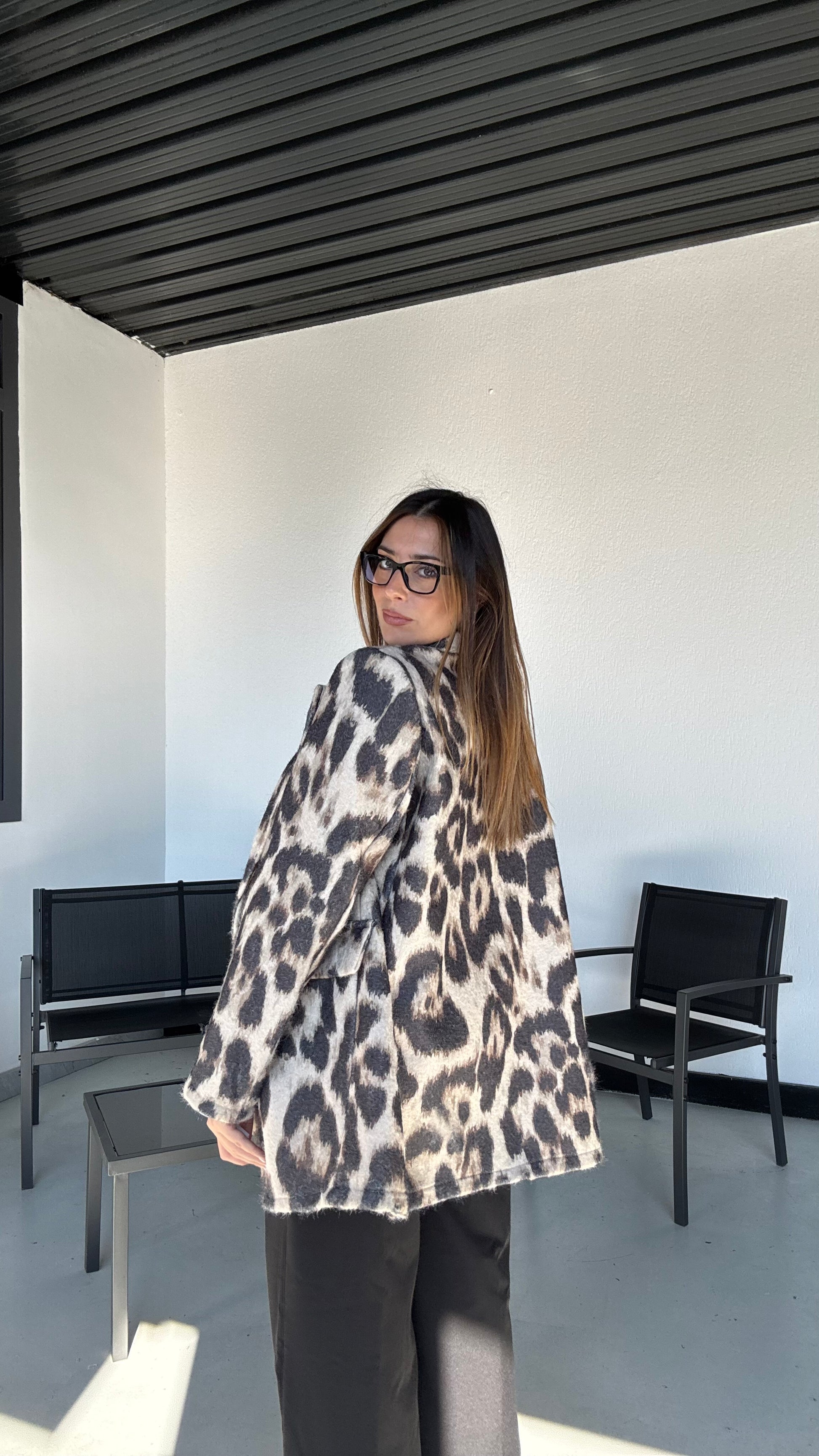 Blazer coat over size super caldo e morbido fantasia maculata, spalle imbottite taglia unica che veste 36-48.