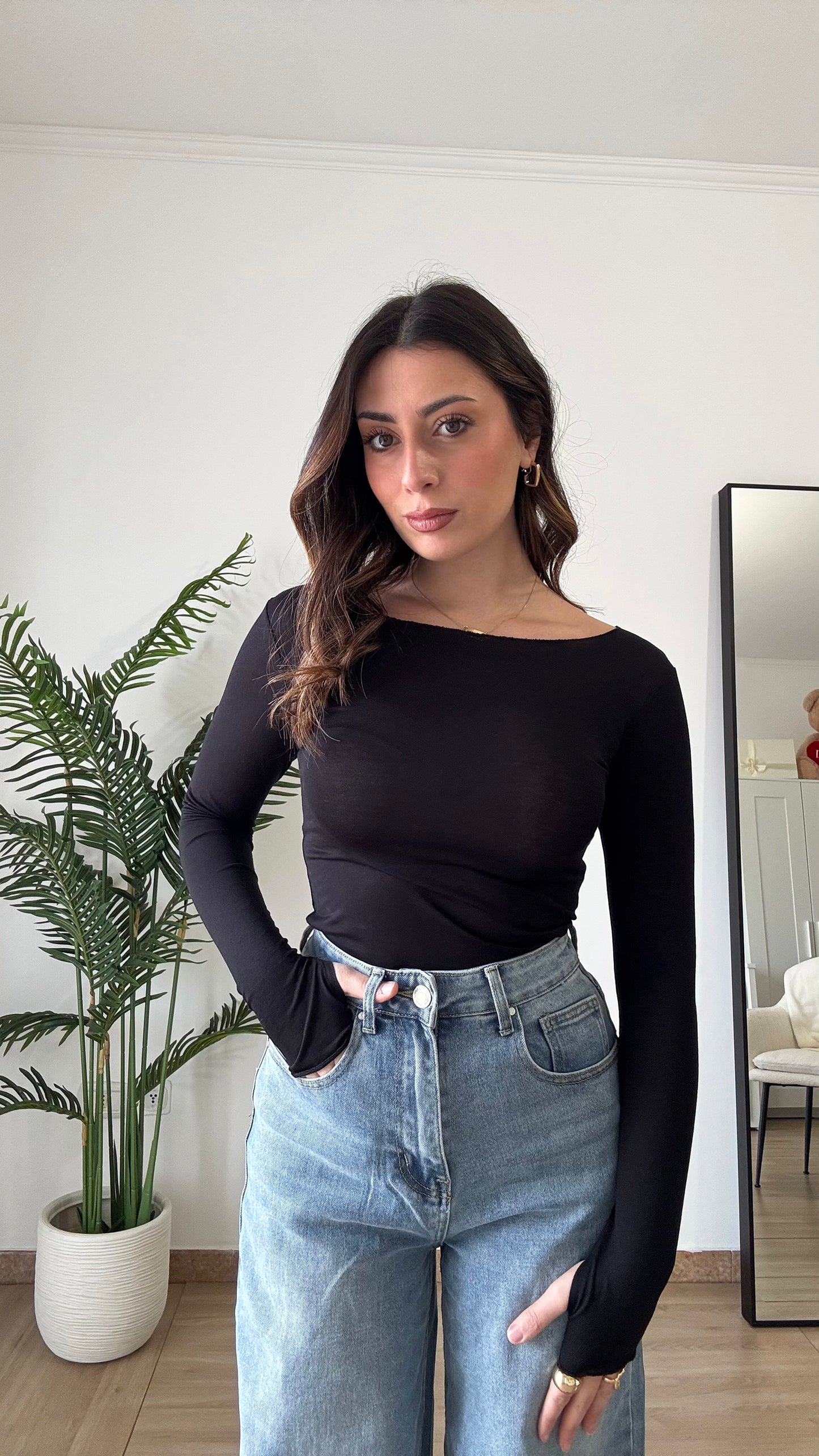 Body intimo taglia unica veste 34/44, abbastanza elasticizzato, con manica a guanto.
