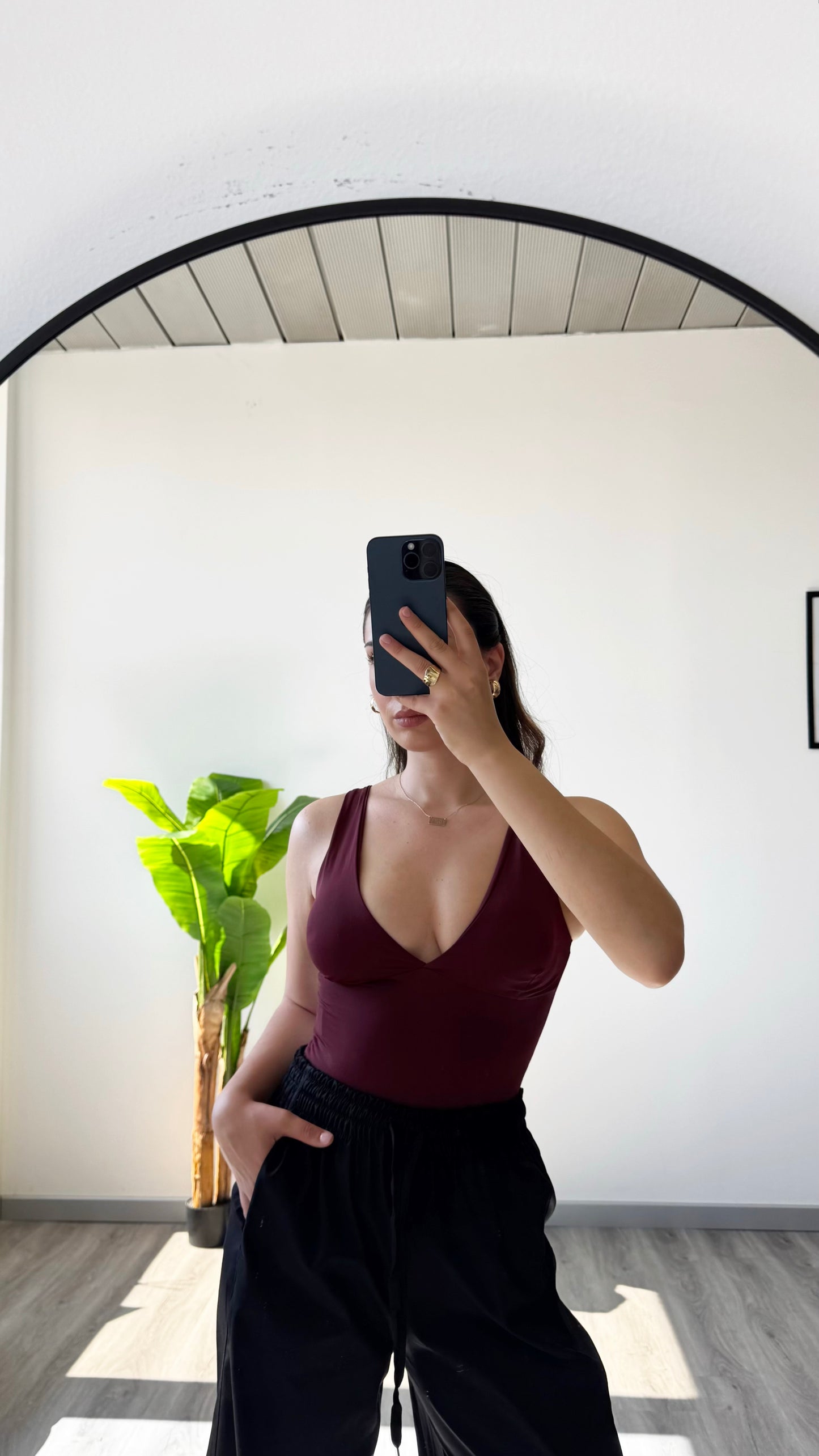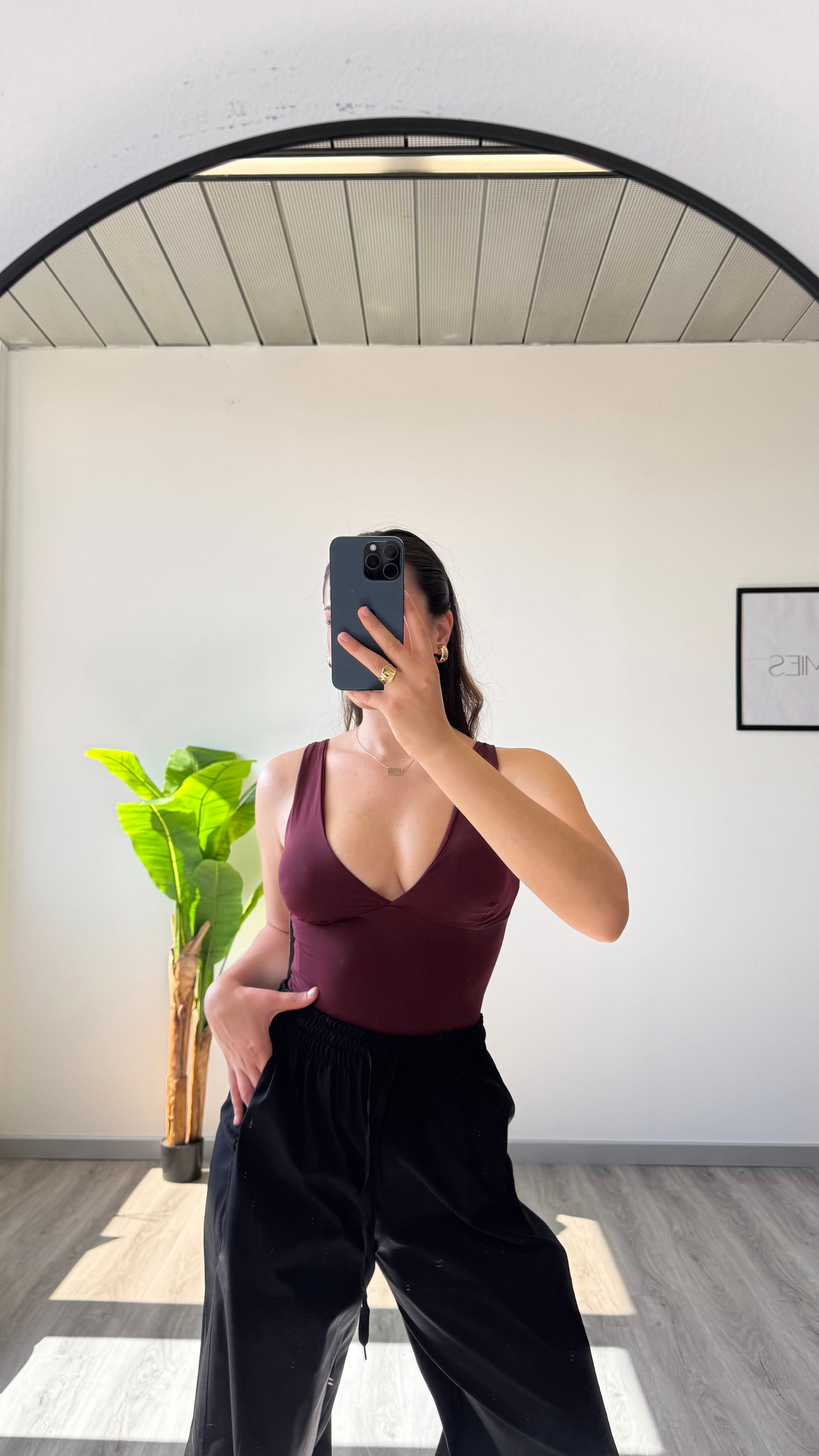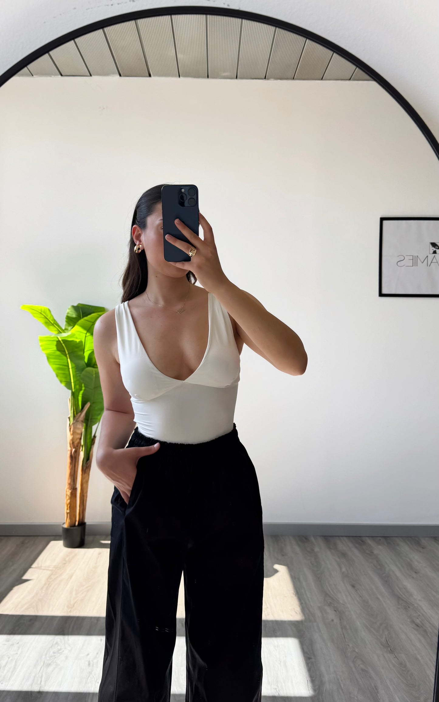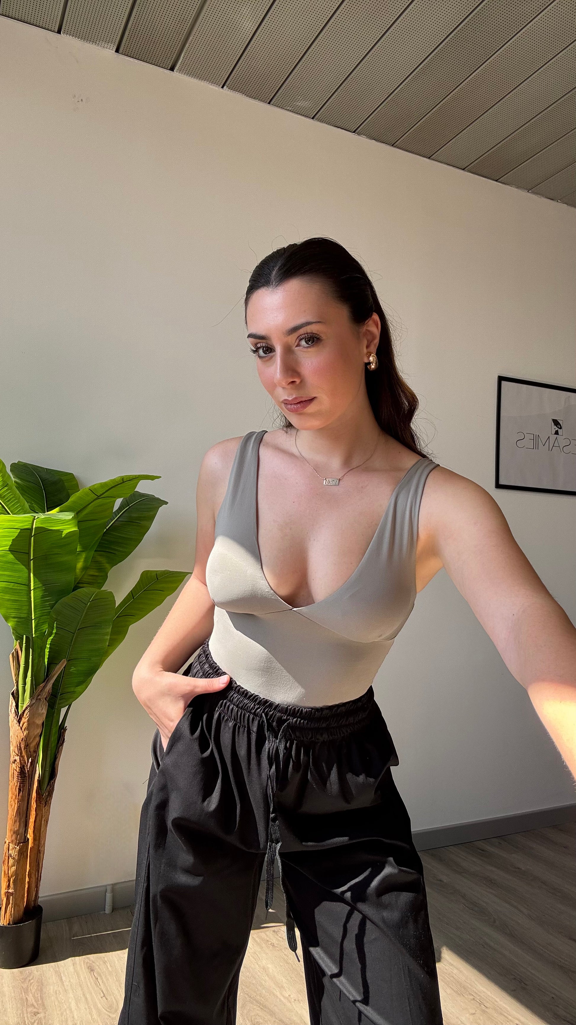 Body super contenitivo con coppe interne e scollo a V, elasticizzato taglia unica che veste 34/46.
