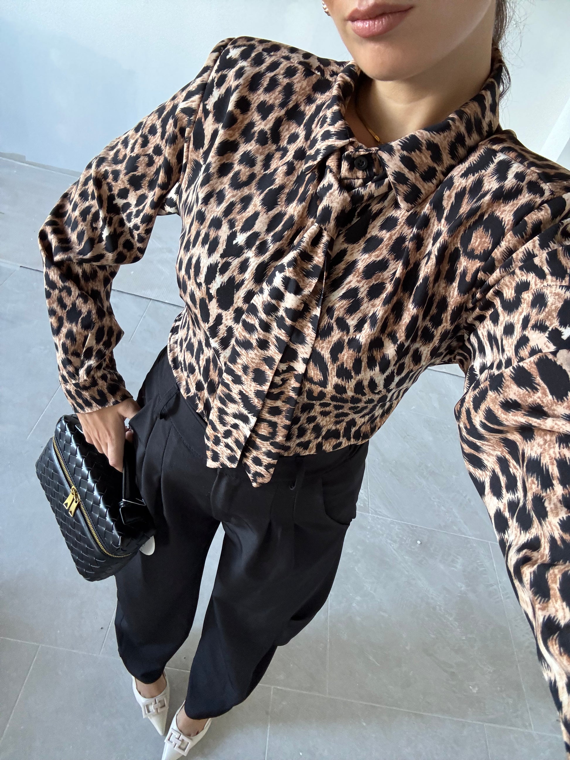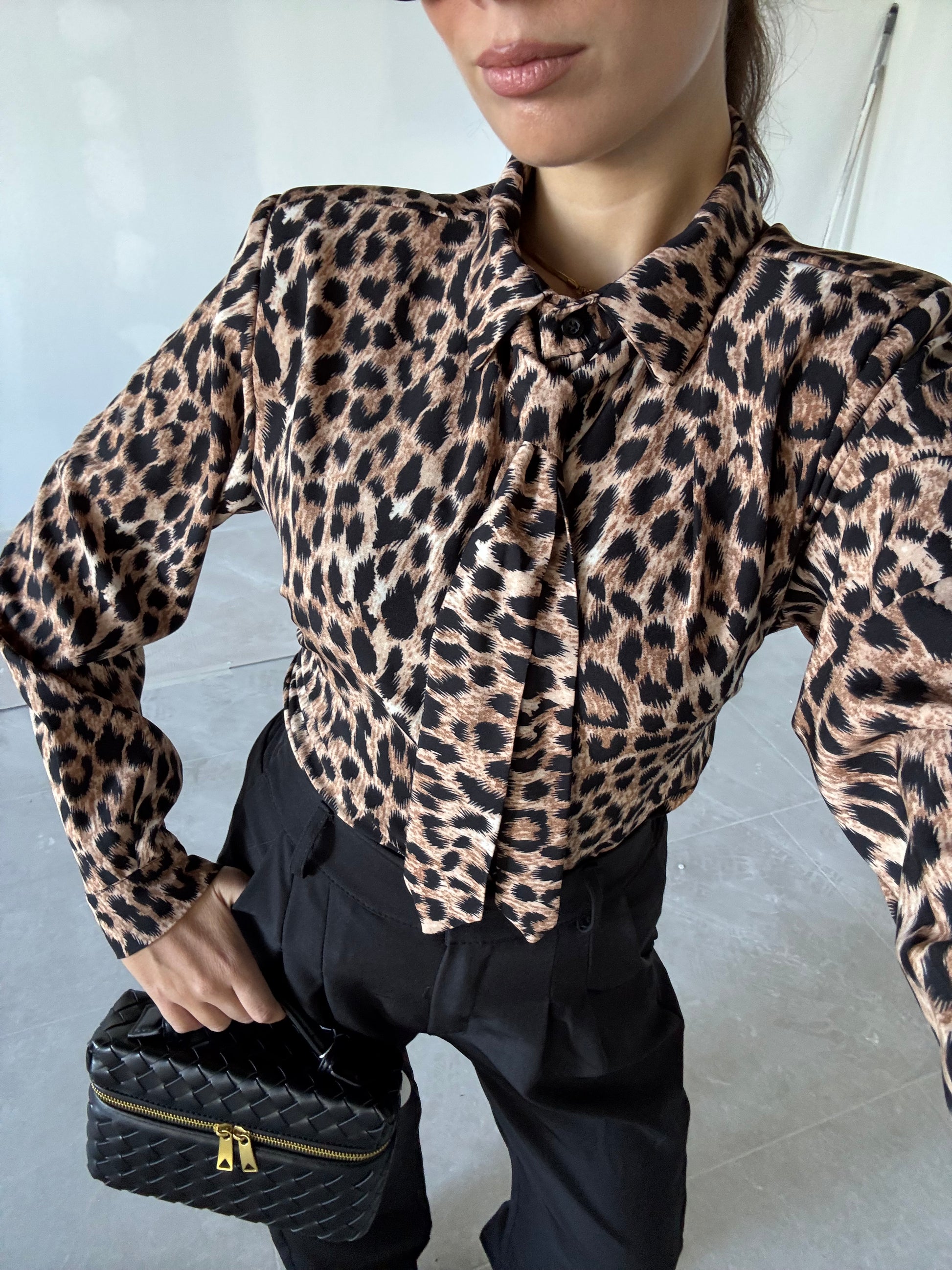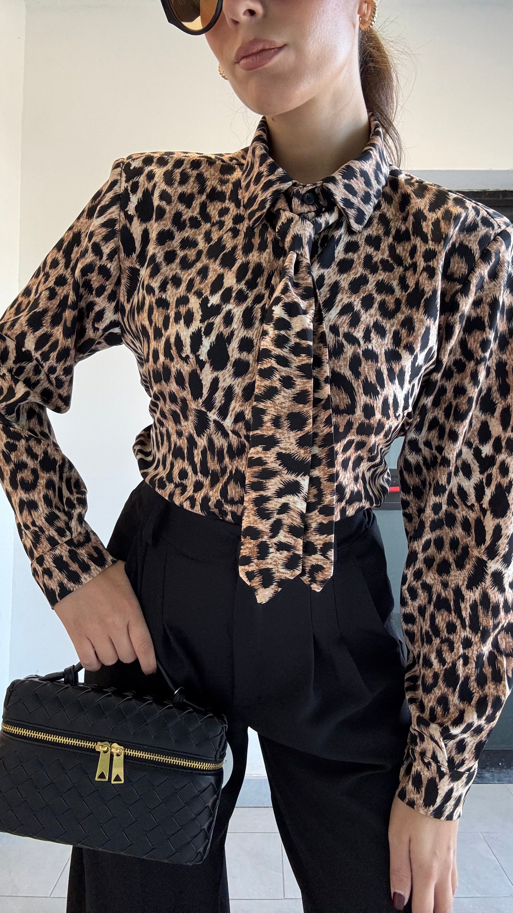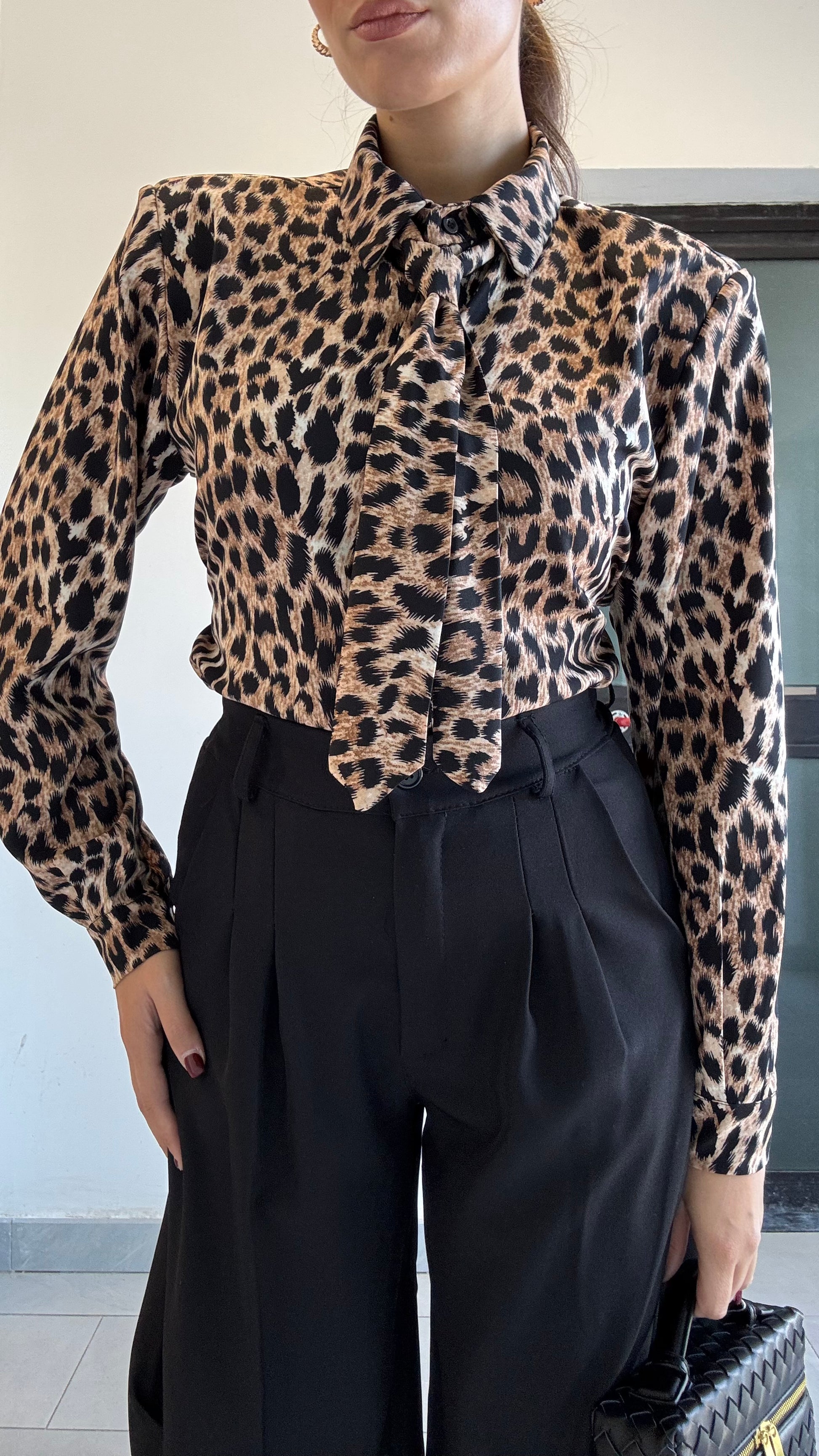 Camicia MUST HAVE con spalle imbottite e cravattina tono su tono, removibile volendo, si allaccia sul retro per un effetto a clessidra in vita, taglia unica che veste 34-46.