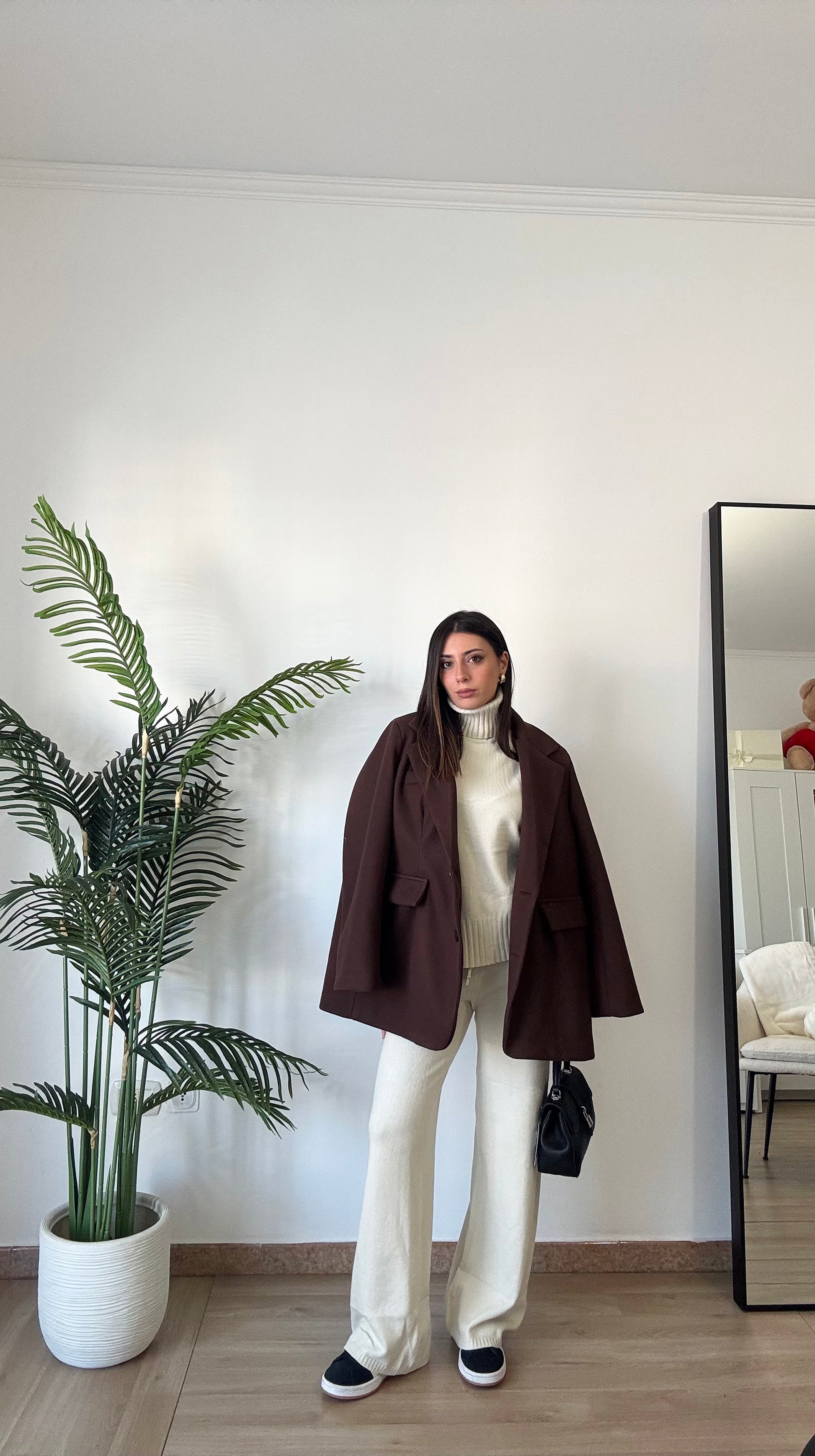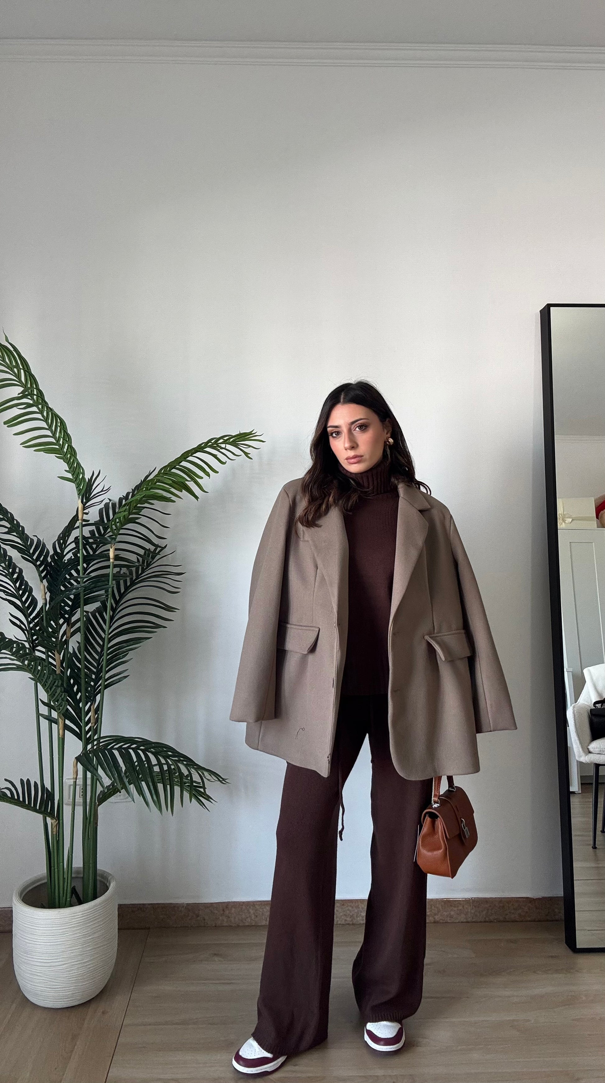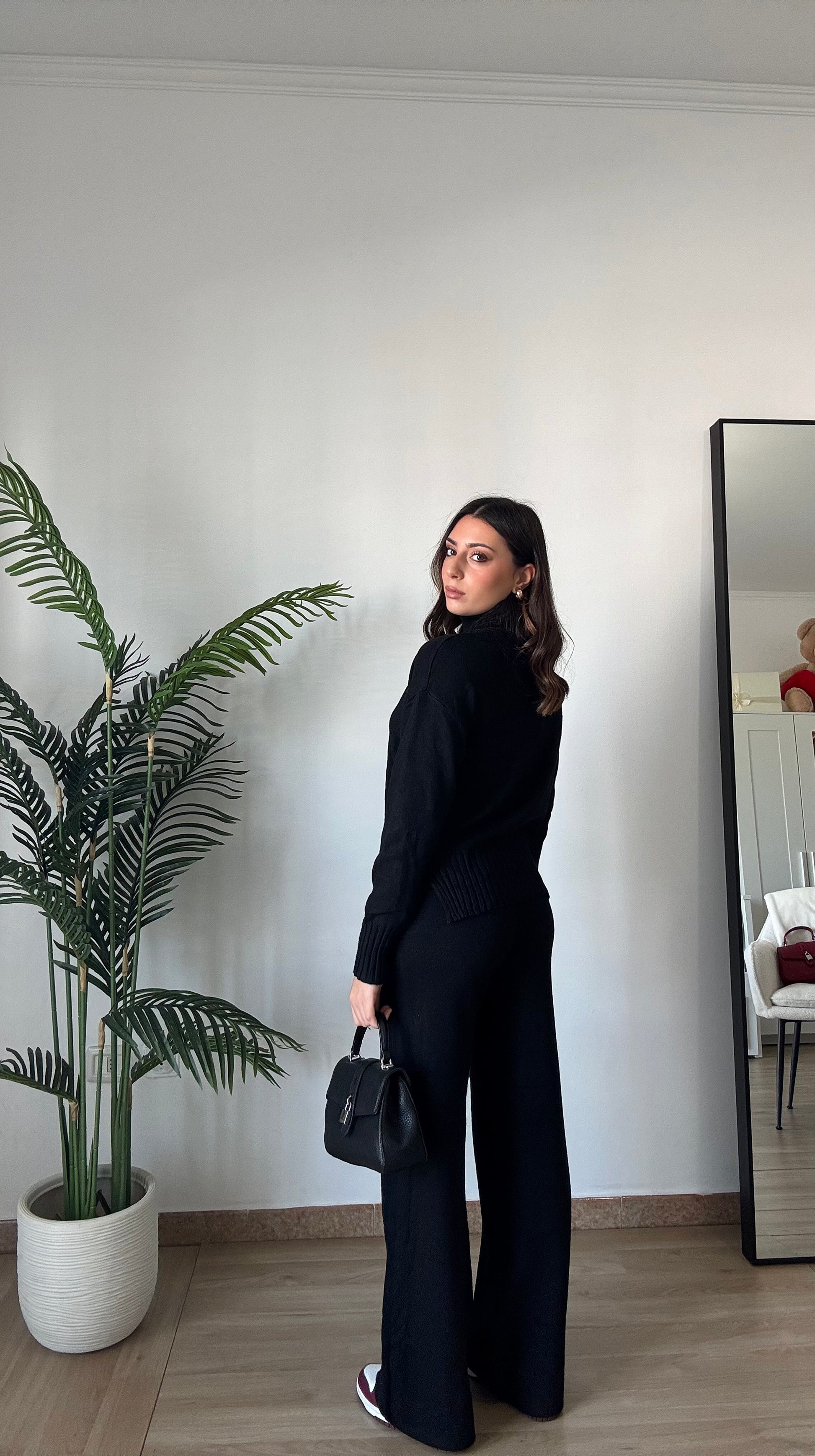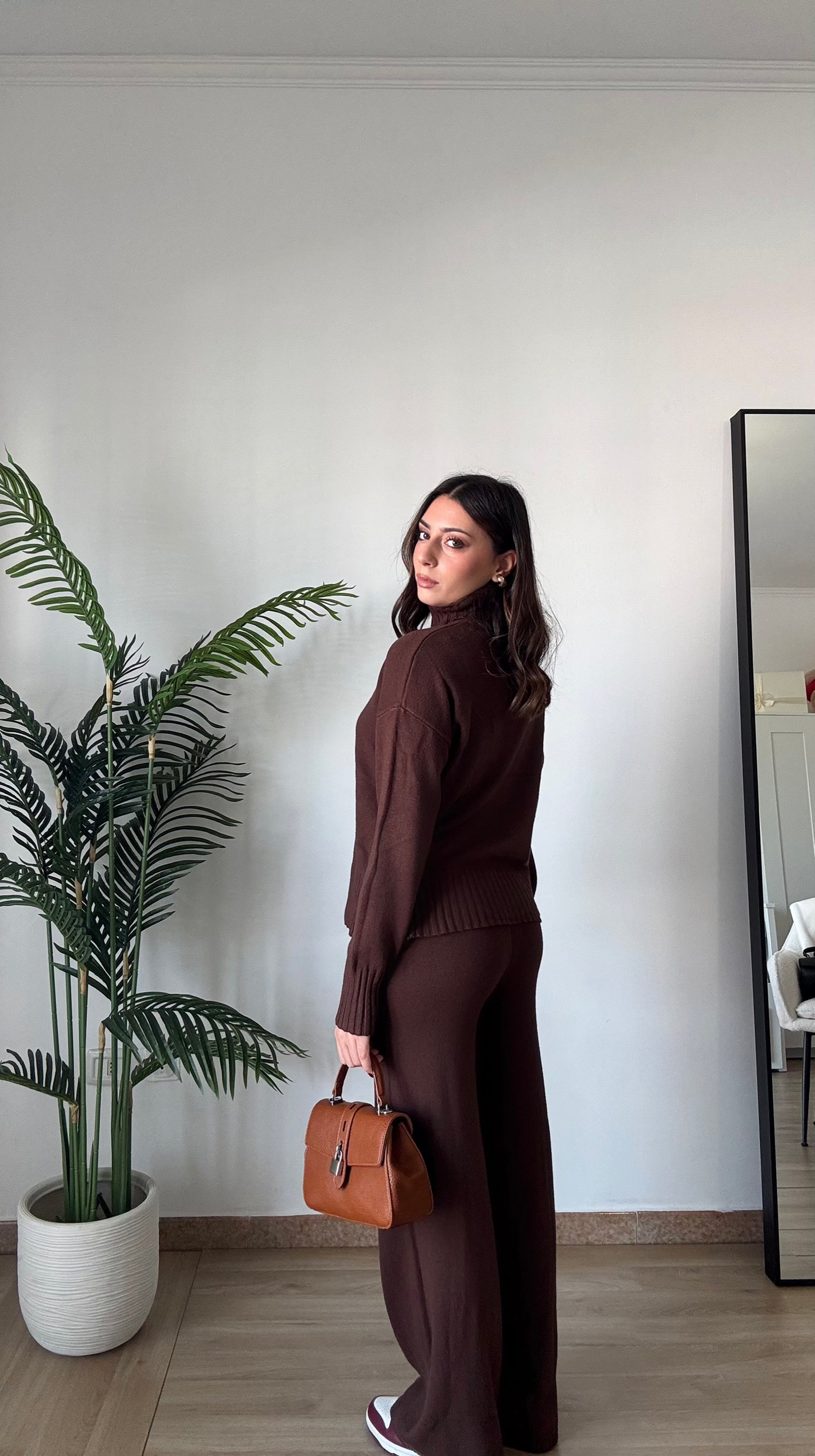 Coordinato in maglia super morbido e caldo, composto da pullover a collo alto e pant con elastico in vita super morbido, taglia unica veste 34-46.