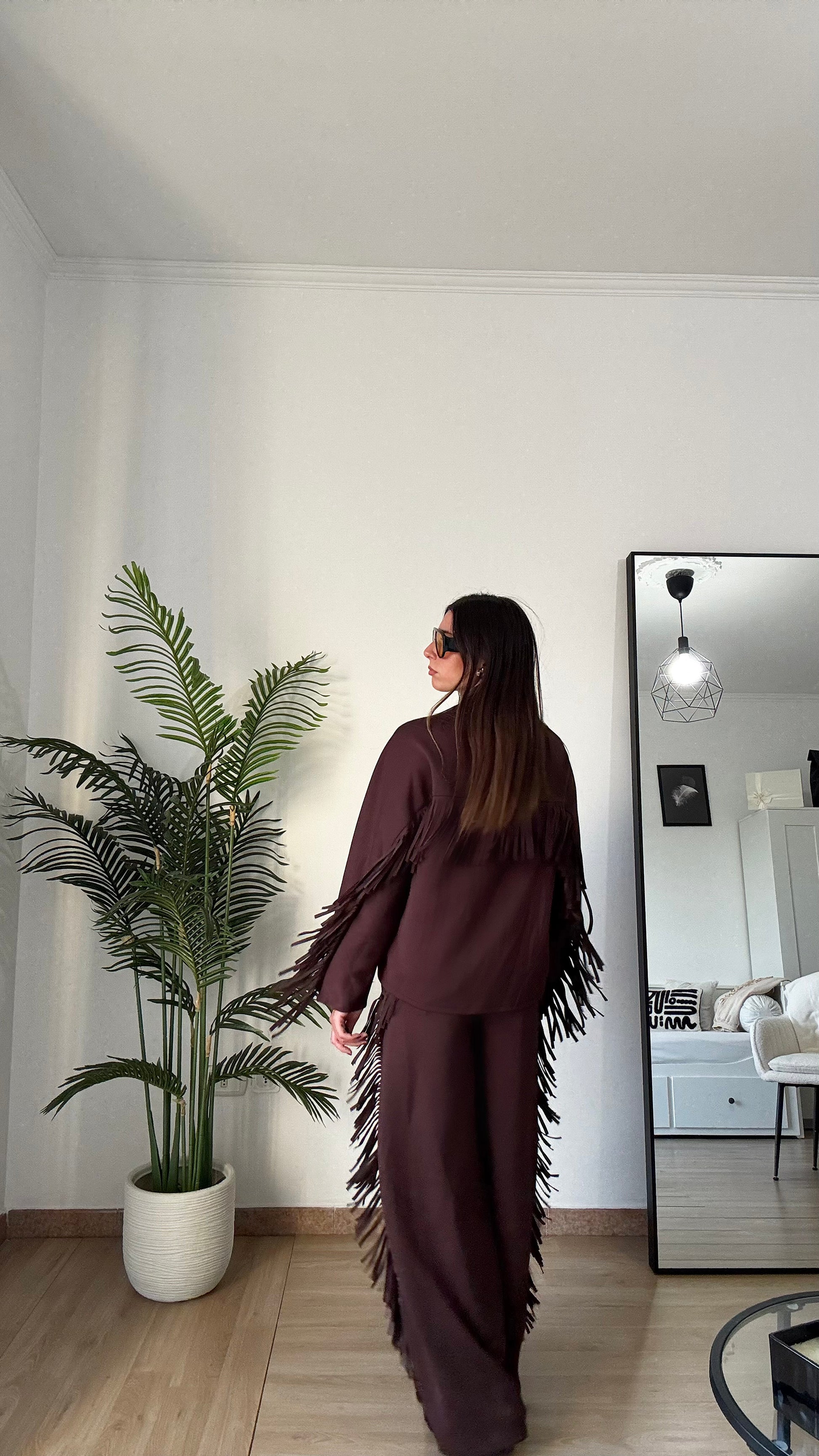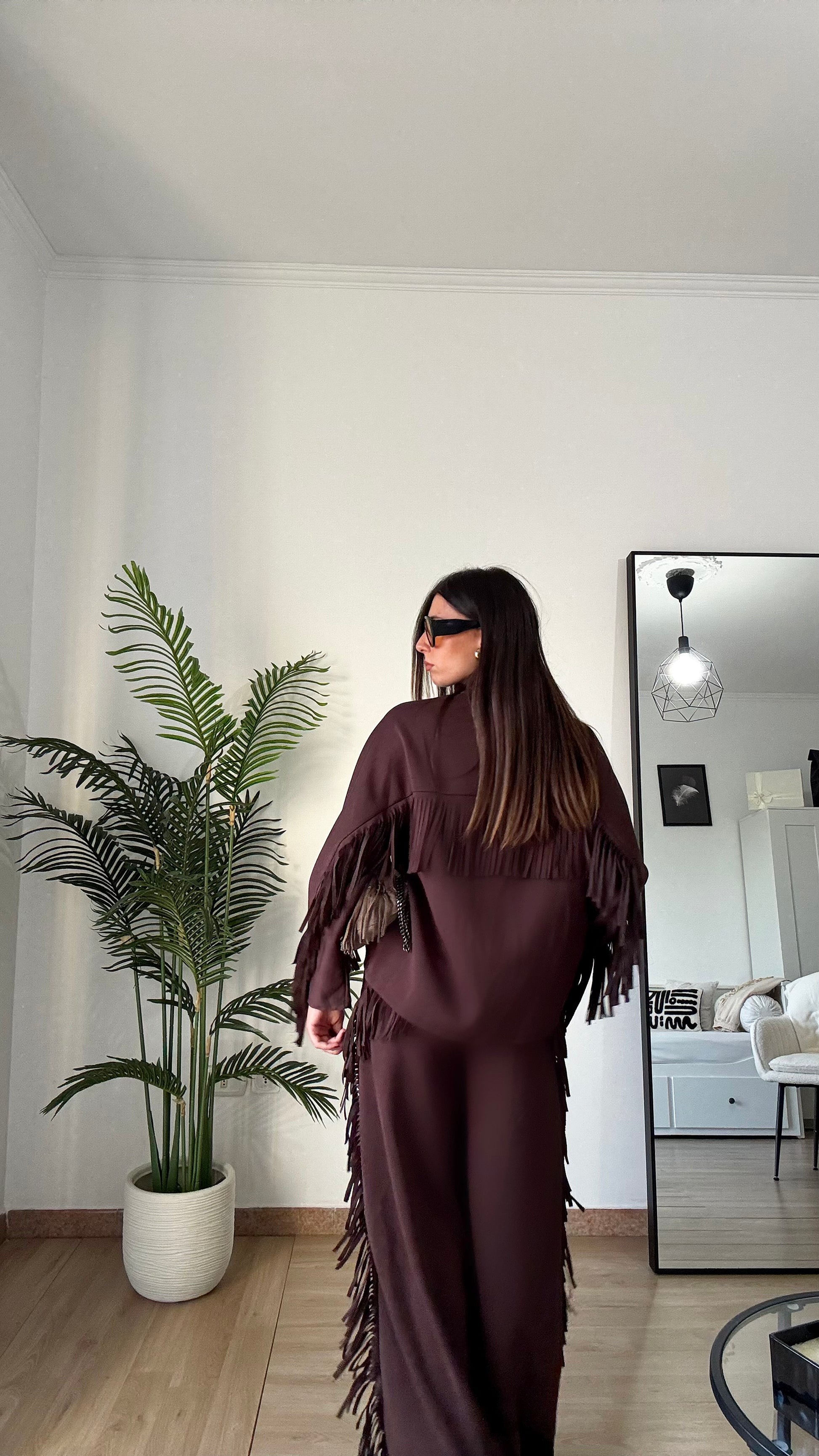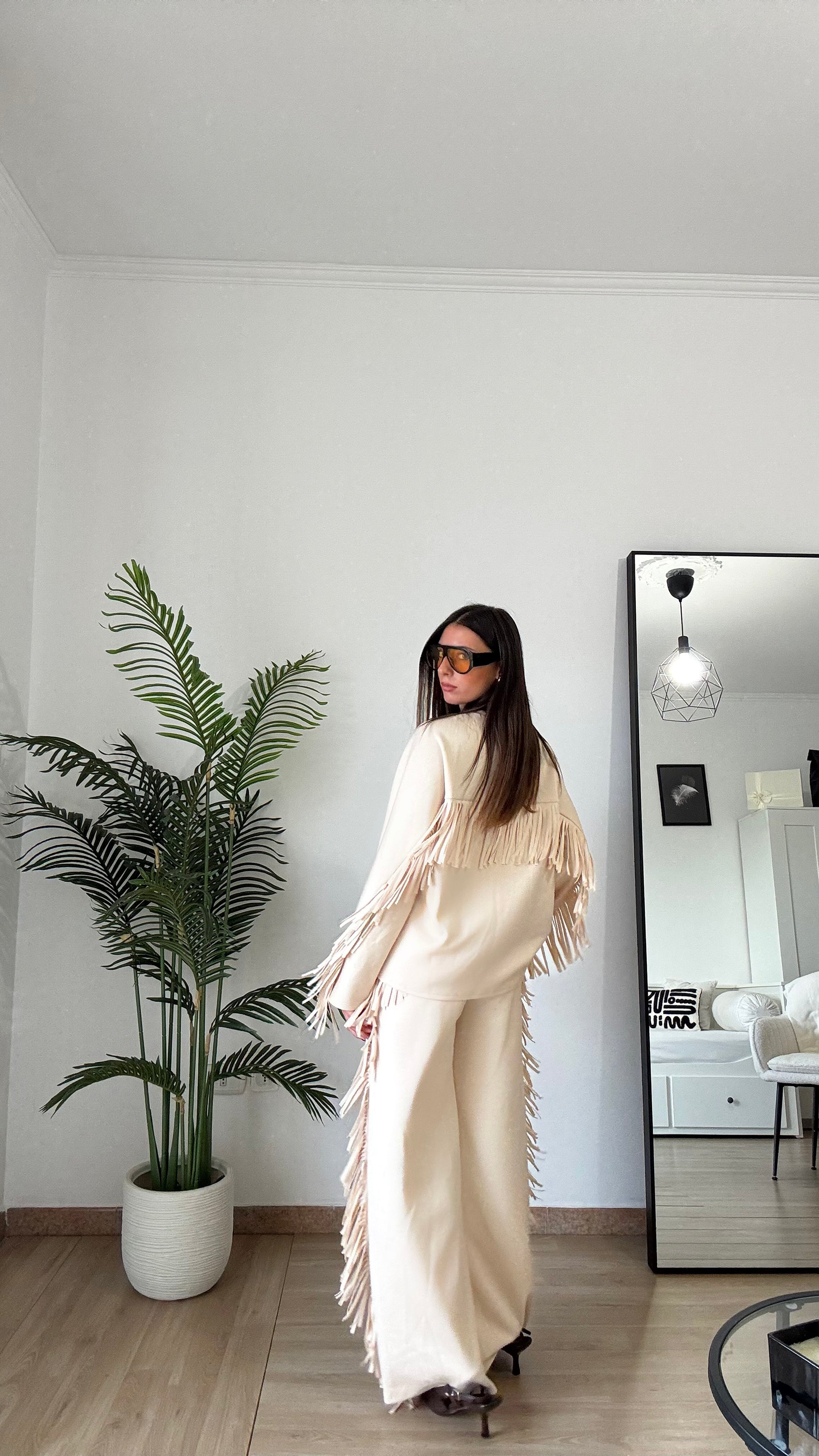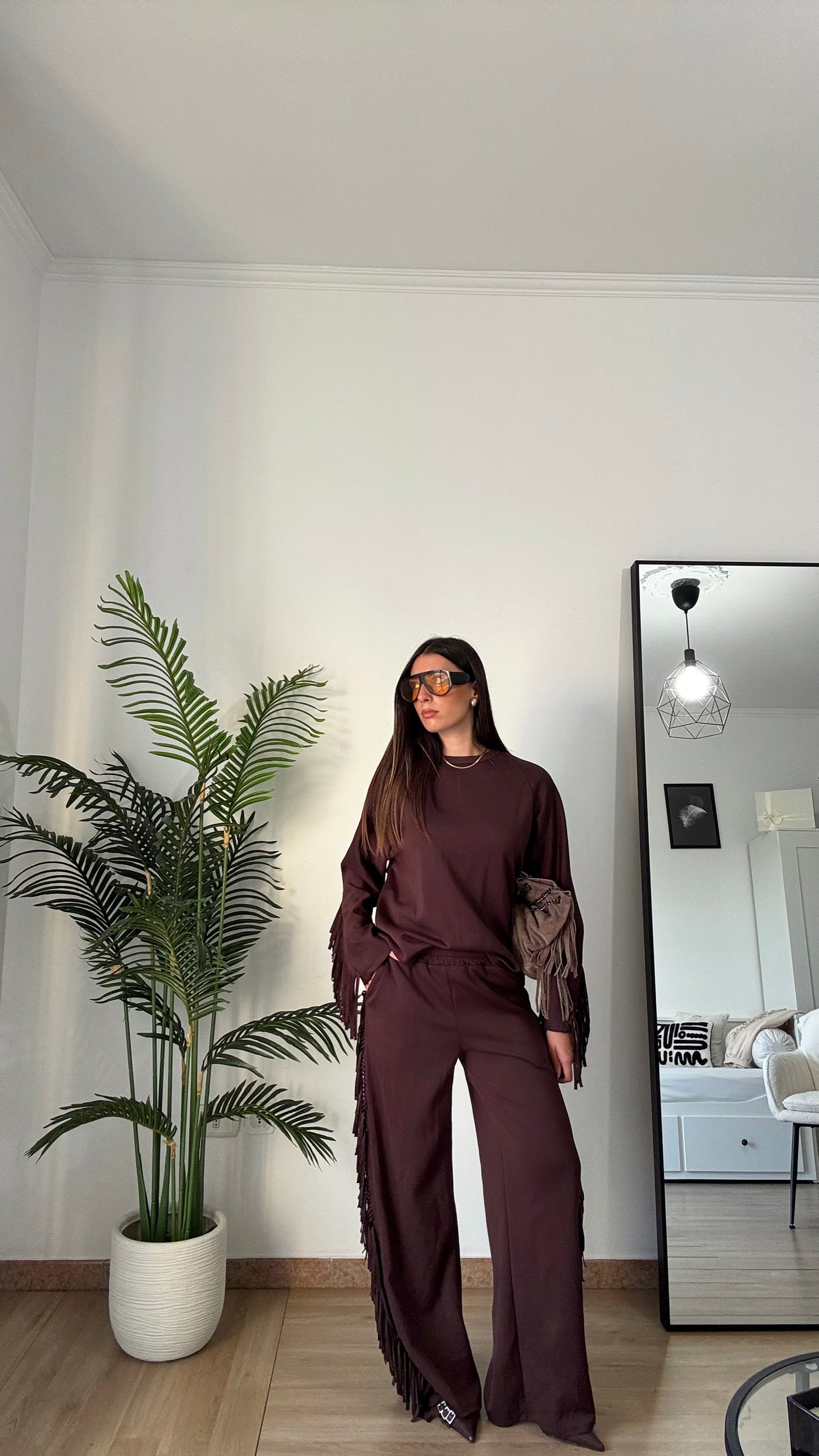 Coord set con frange in un’ottima qualità tessuto in viscosa, felpa e pantalone super particolari, sono taglia unica che vestono 36-48, pant con elastico in vita super morbido, versatile comodo e con stile!