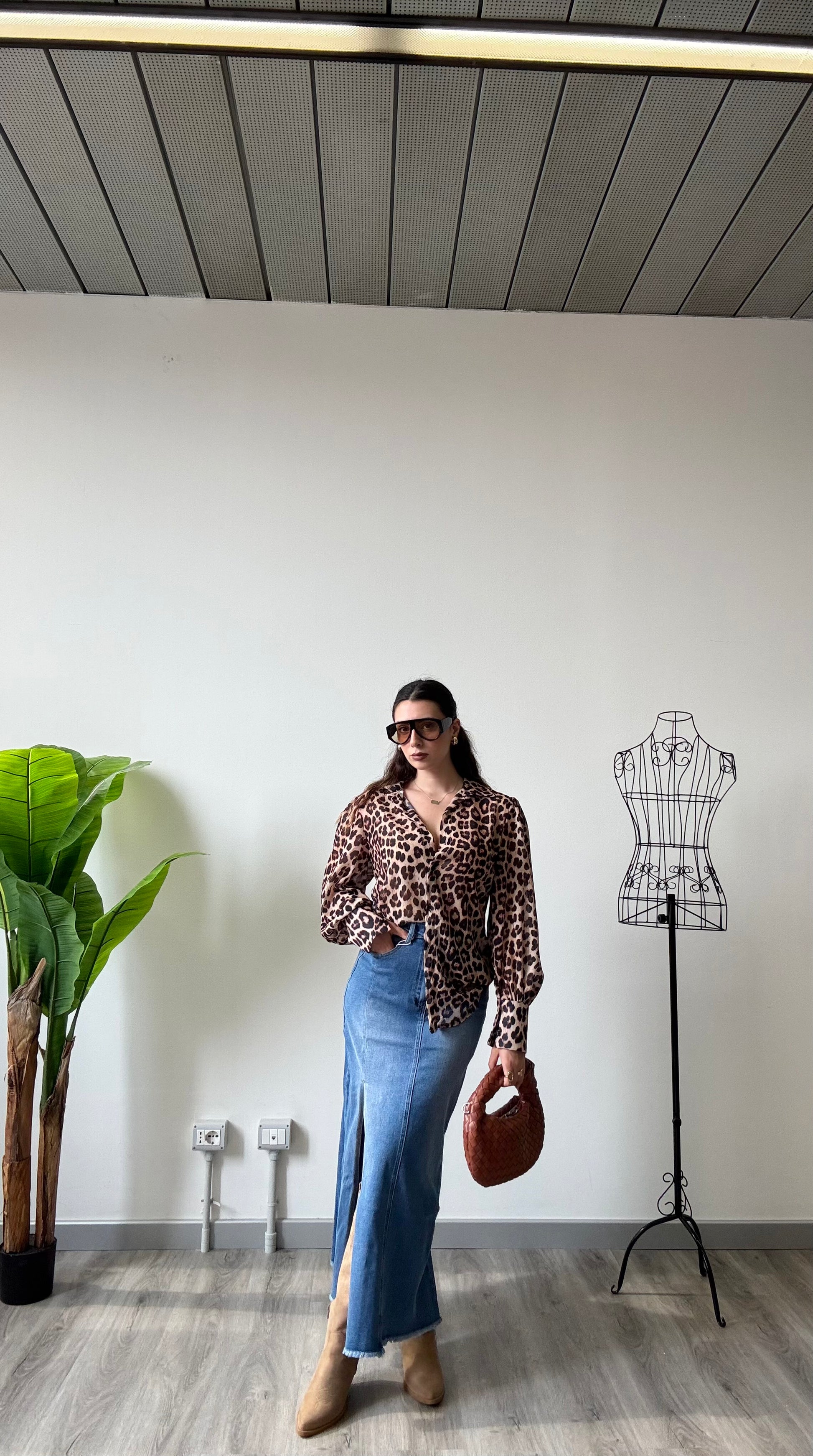 Gonna in jeans alta vita con spacco sul lato sinistro, molto elasticizzata, consiglio una taglia in meno, indosso S.