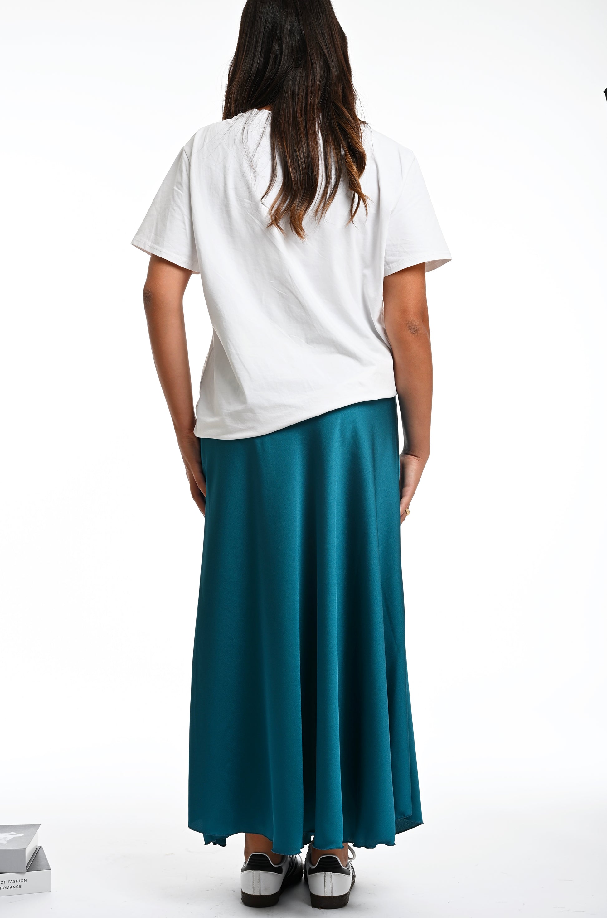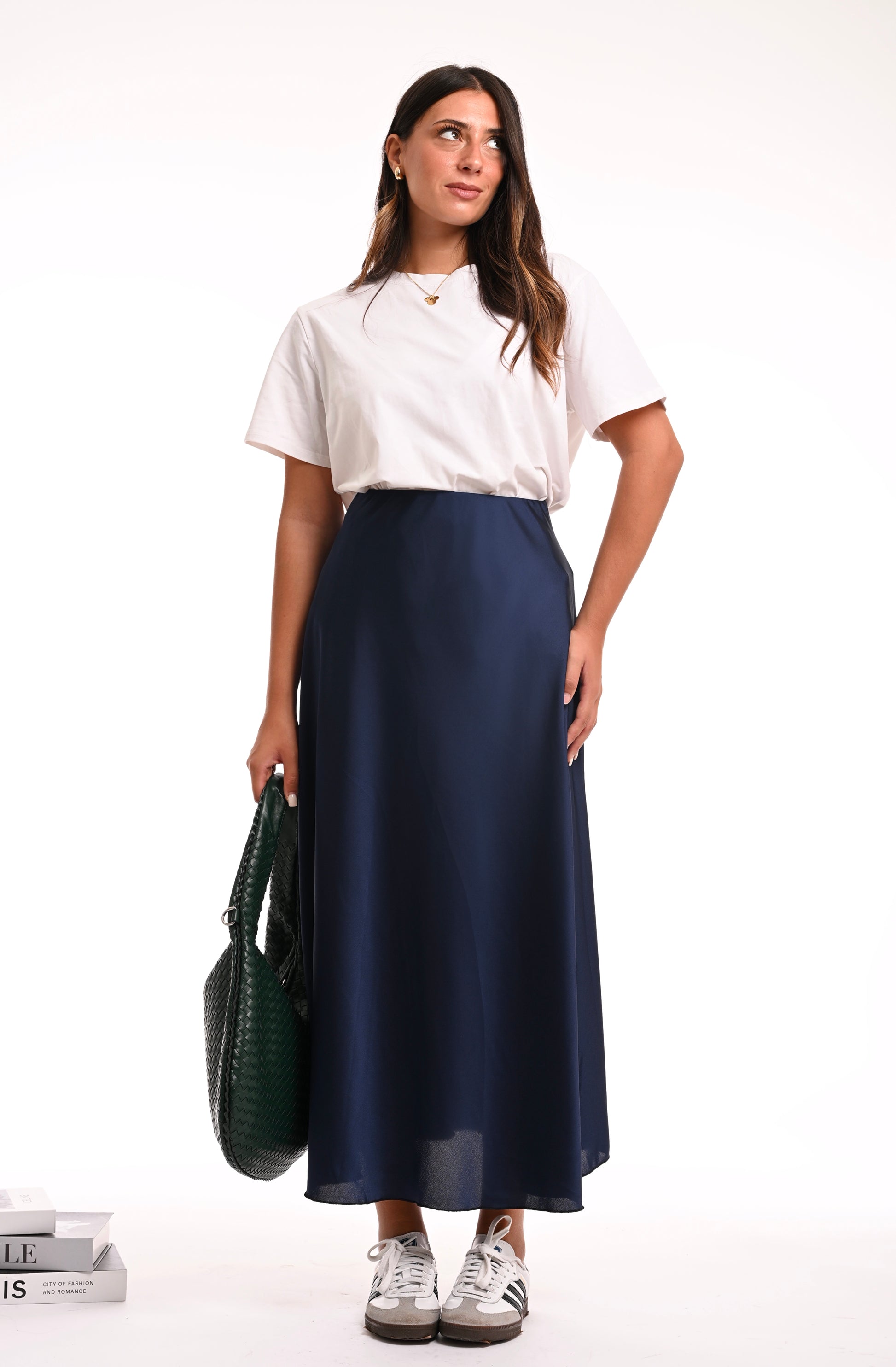 Gonna satinata taglia unica taglia 34-46 , con elastico in vita.