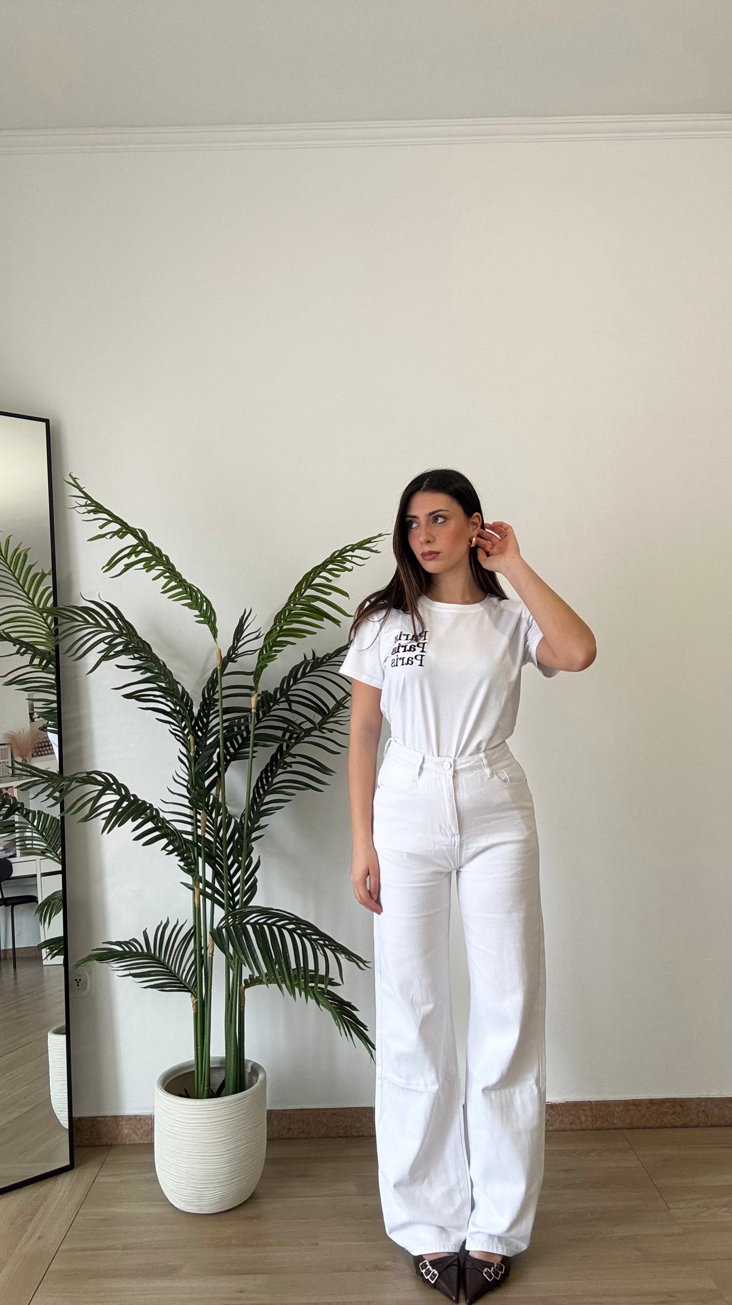 Jeans Wide Leg bianco, elasticizzato, consiglio una taglia in meno, indosso S, prendere una tg in meno.