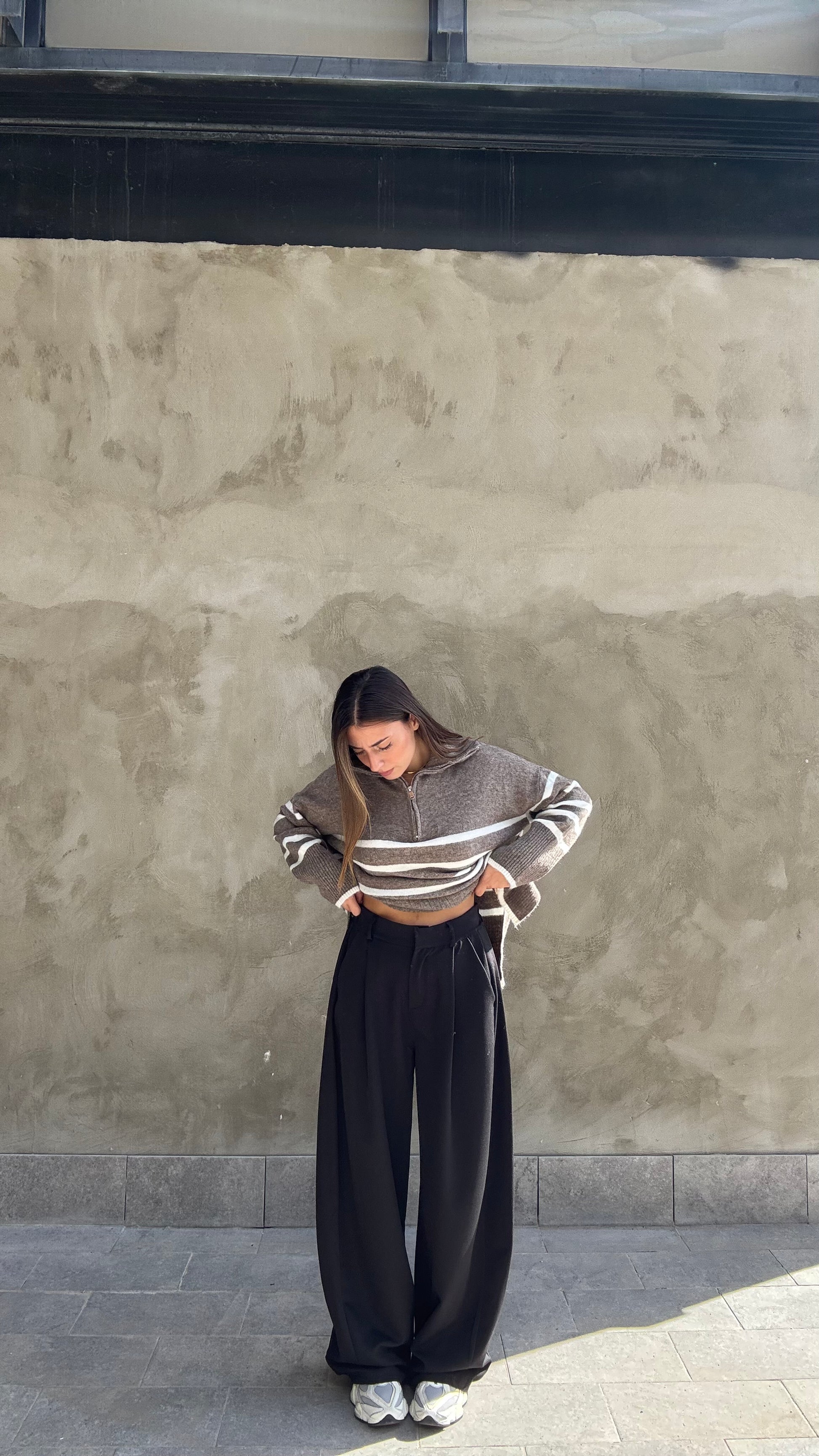 Pantalone alta vita con una vestibilitá molto morbida , over size scende a palazzo taglia unica che veste 38-48.