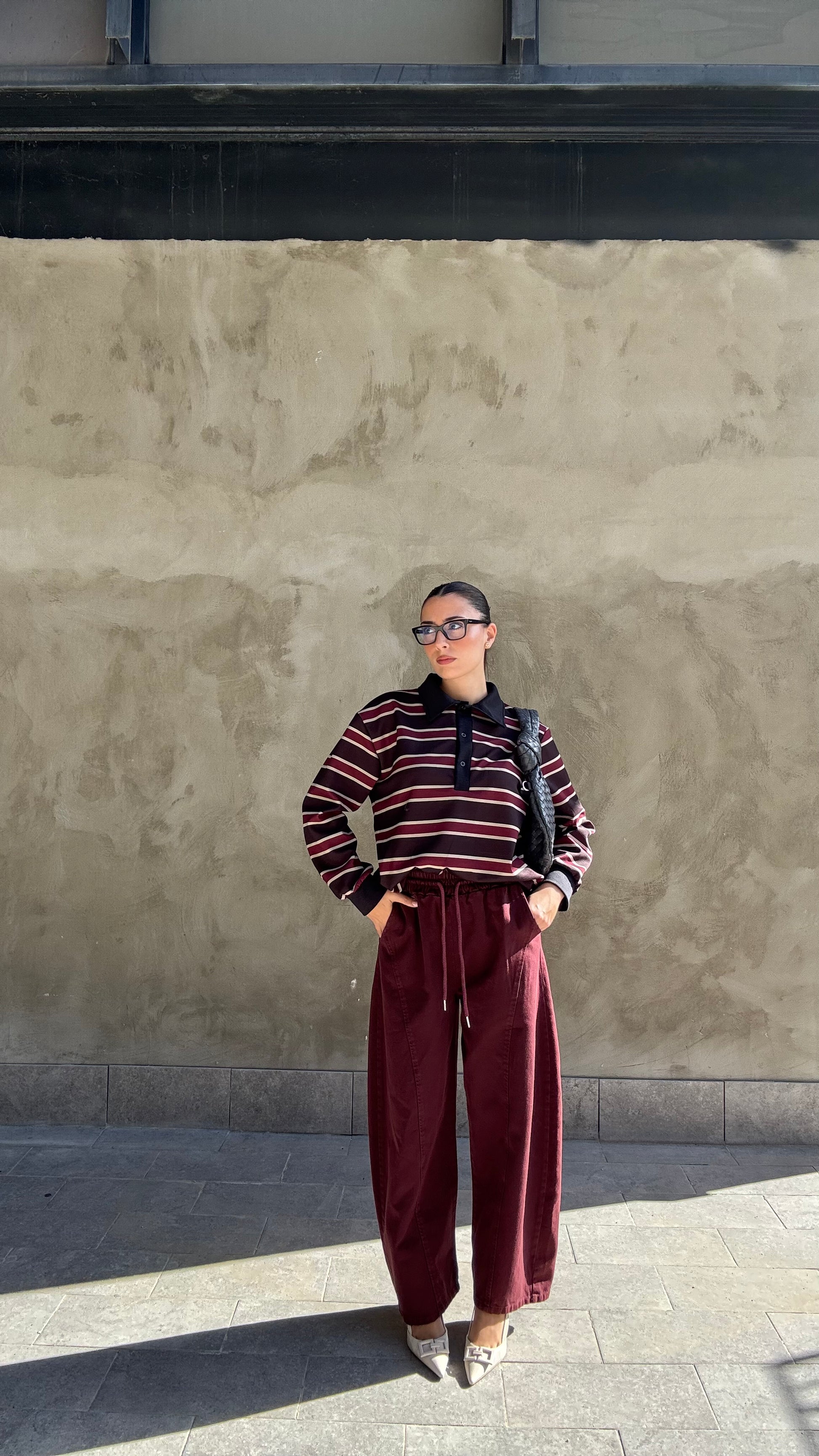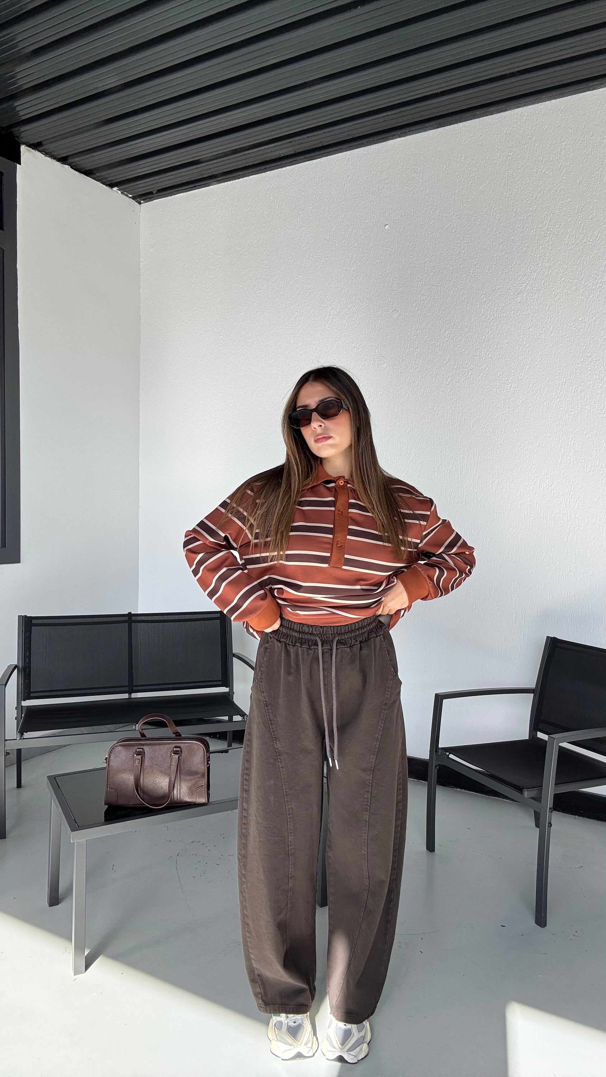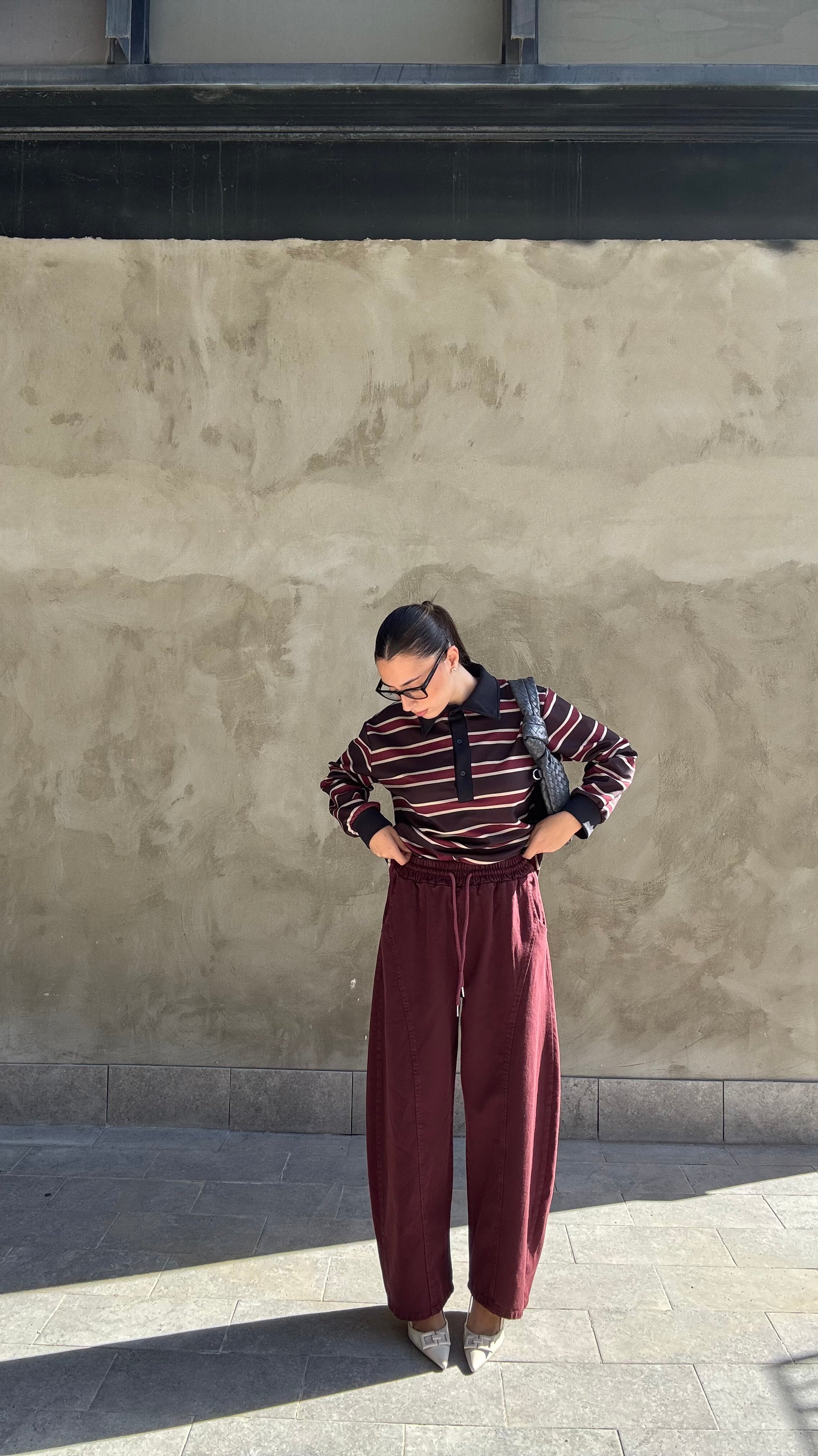 Pant tessuto in jeans balloon con elastico in vita regolabile taglia unica che veste 34-46.