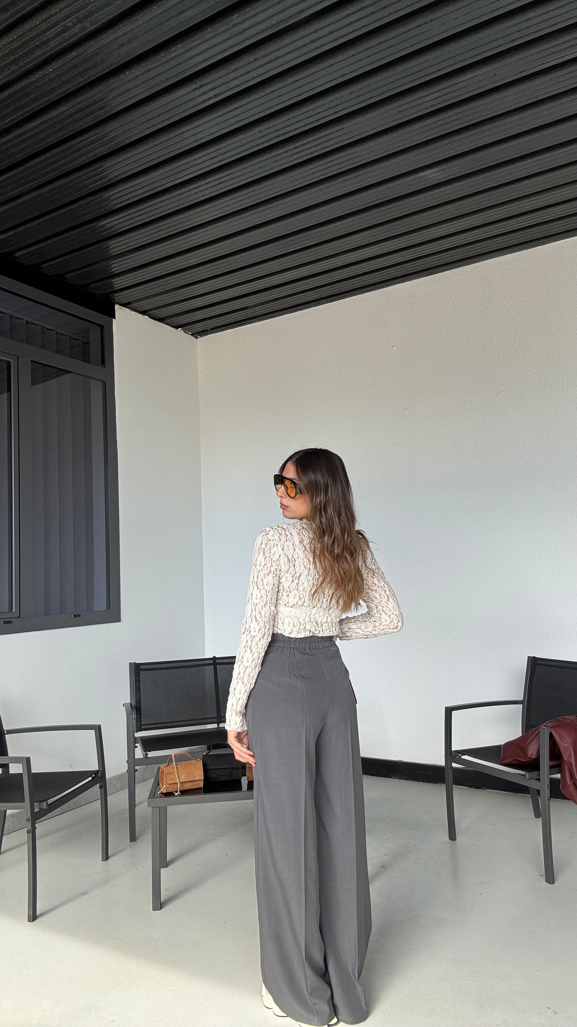 Pantalone basic lungo a palazzo, elastico sul retro vestibilità morbida molto confortevole, taglia unica che veste 36/44.