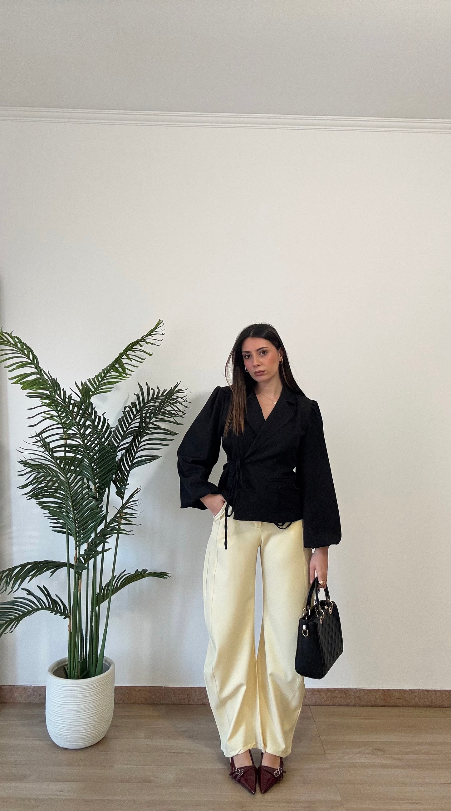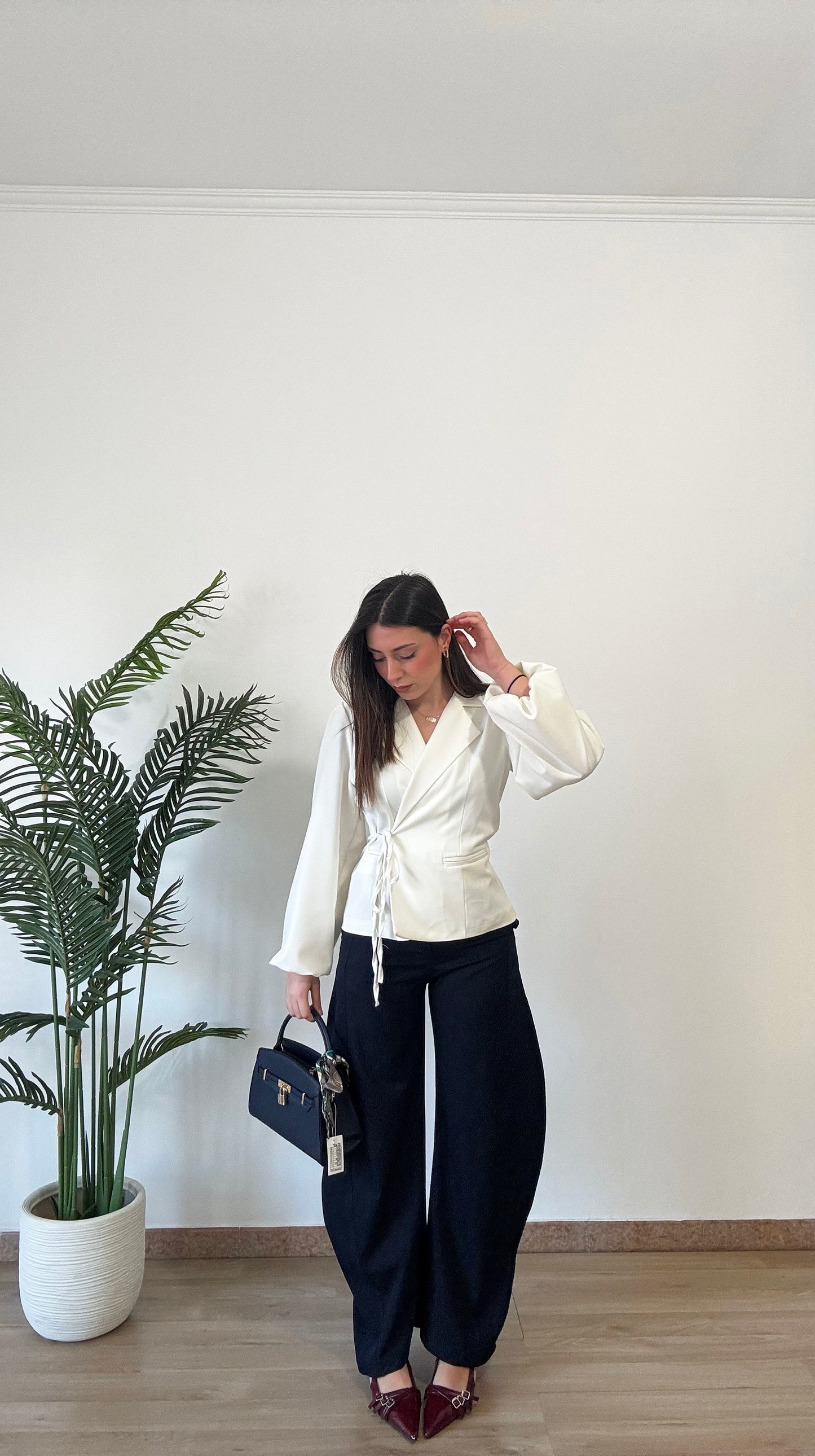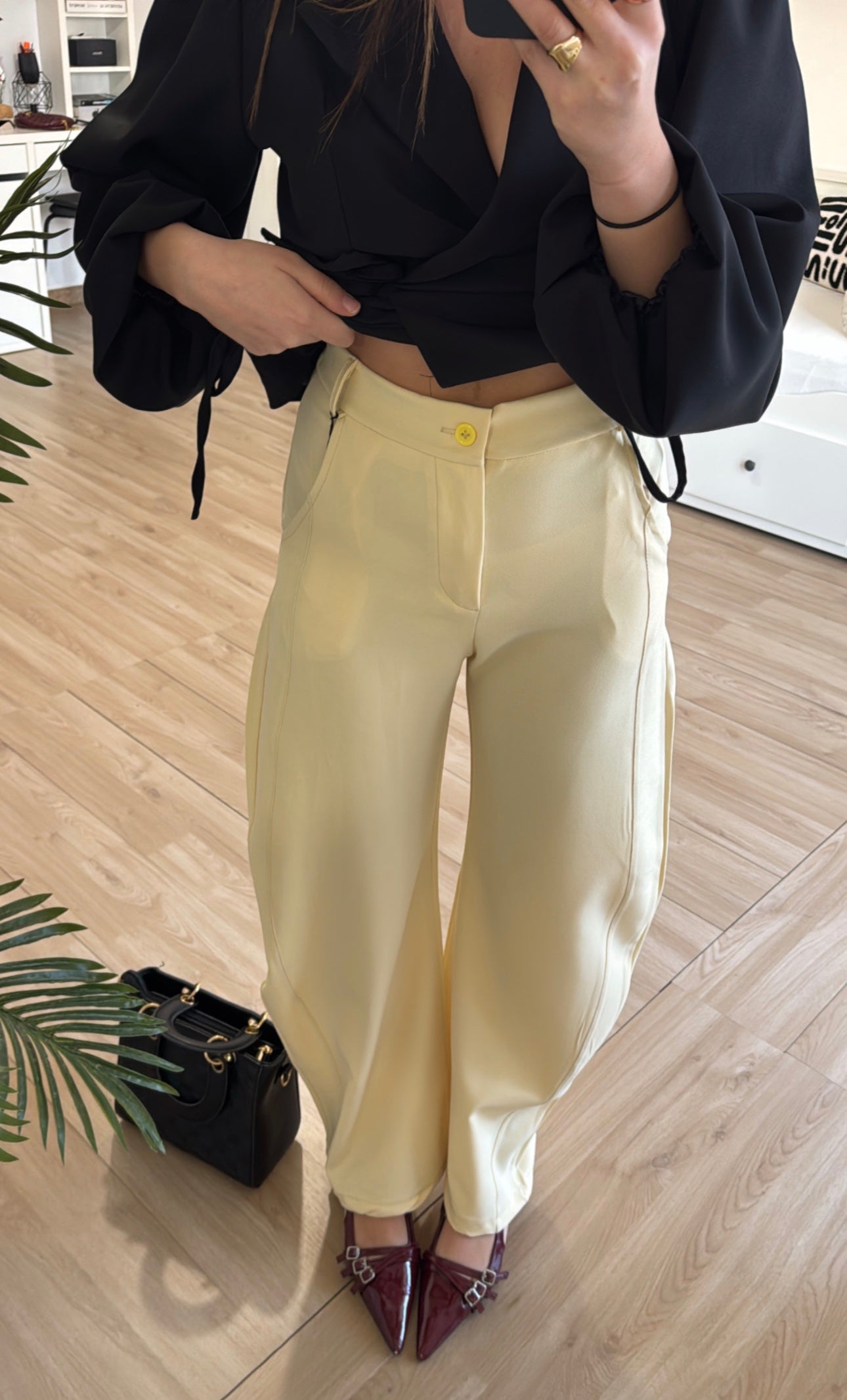 Pantalone Balloon alta vita con elastico sul retro, taglia unica che veste 34/44.