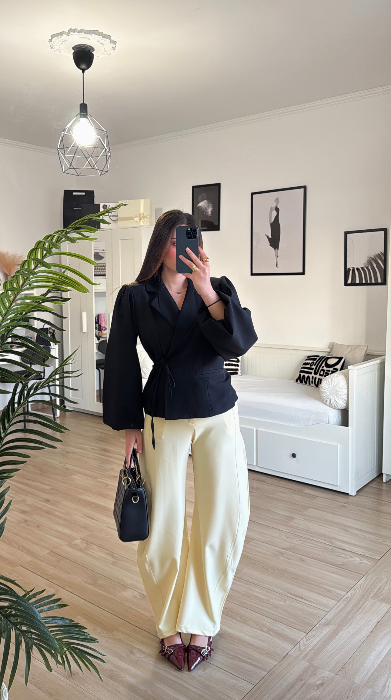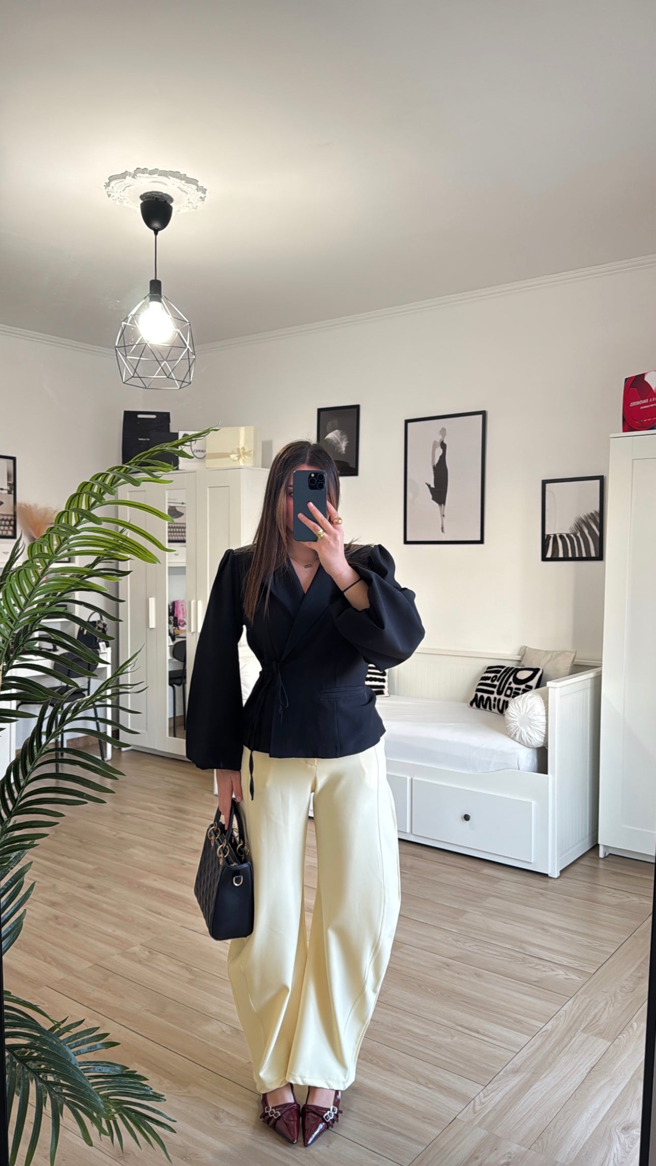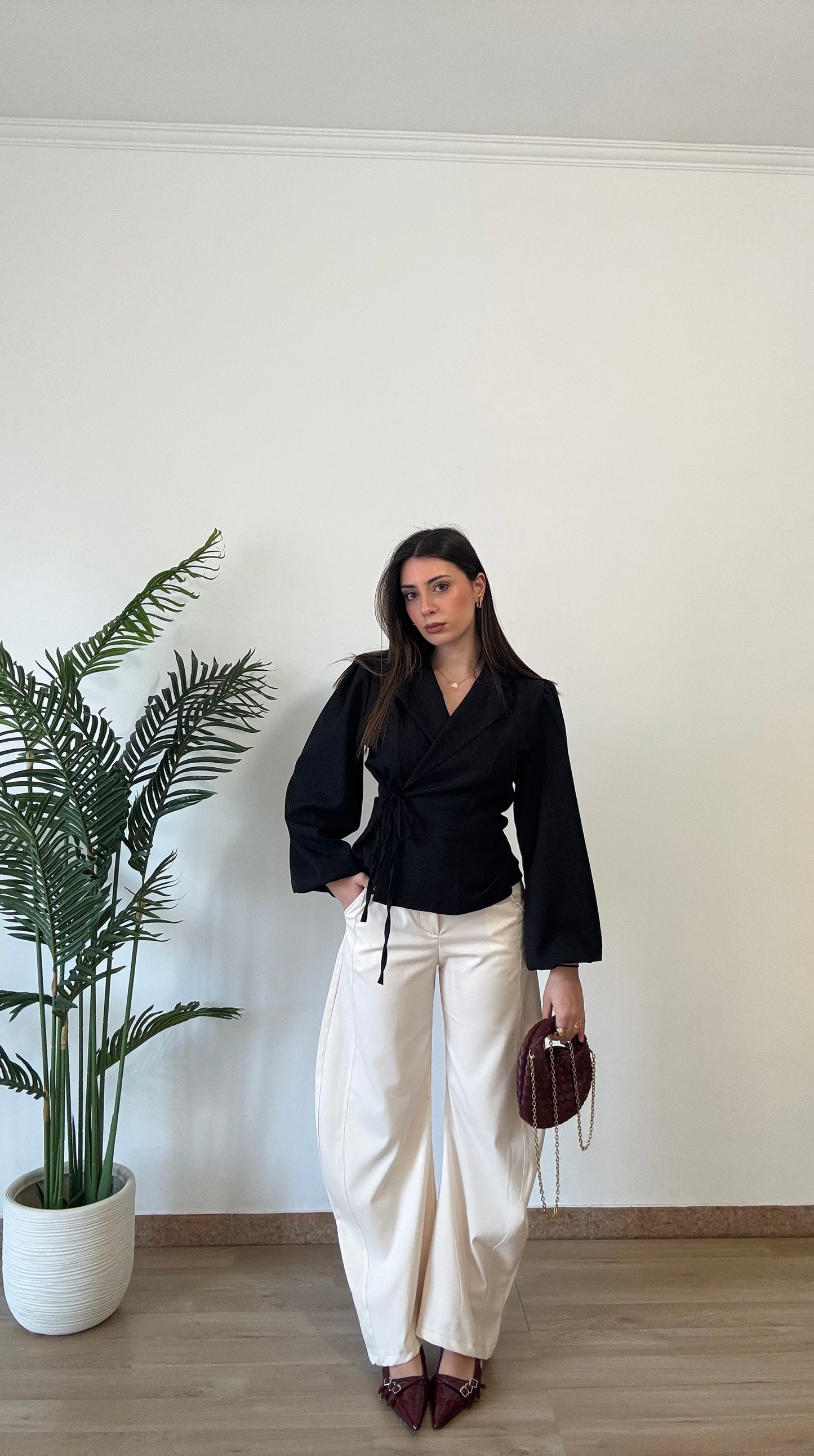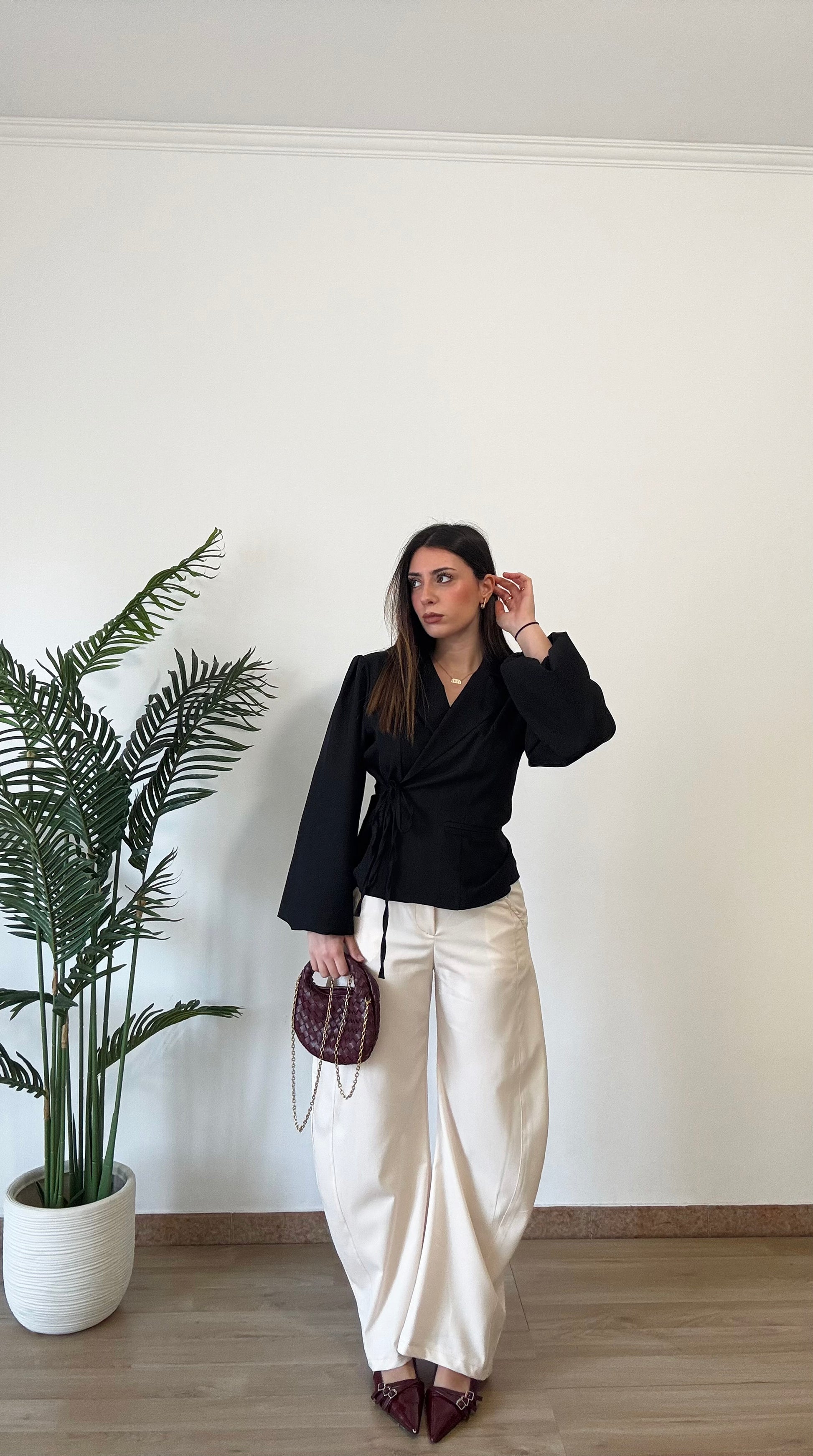 Pantalone Balloon alta vita con elastico sul retro, taglia unica che veste 34/44.