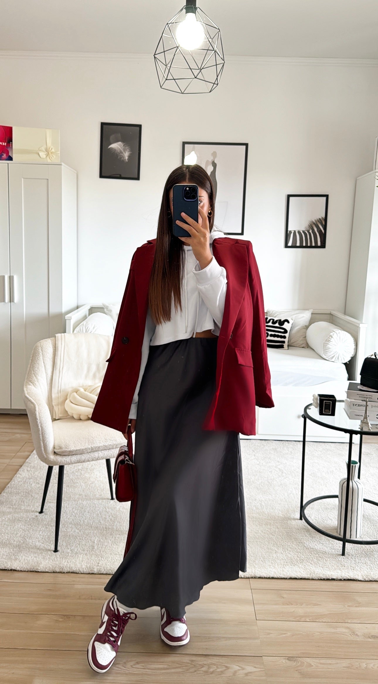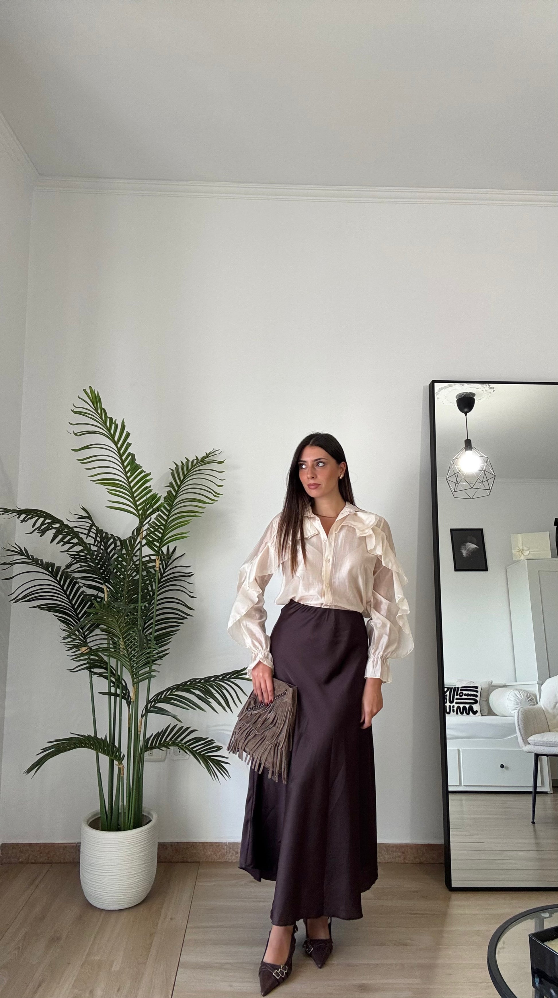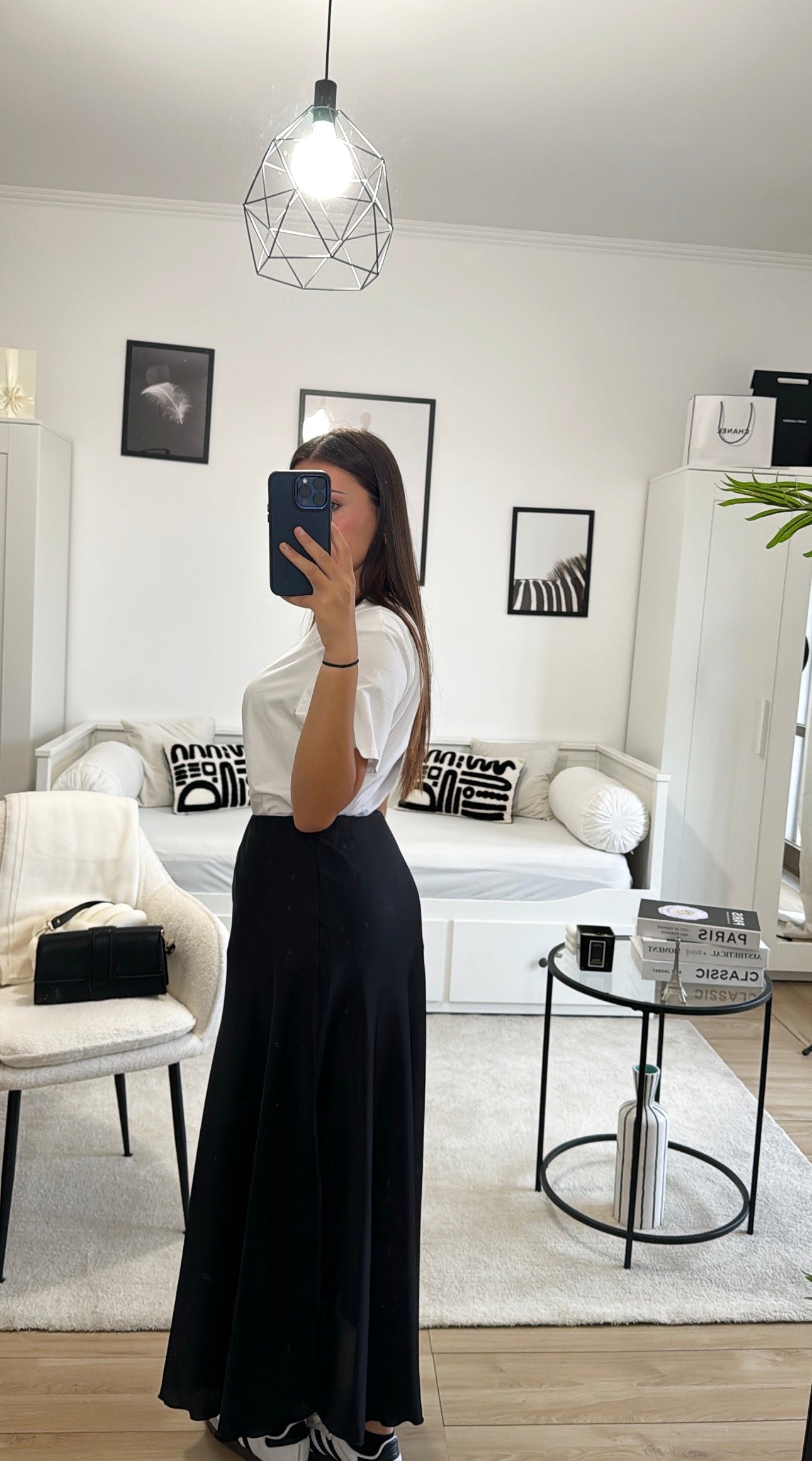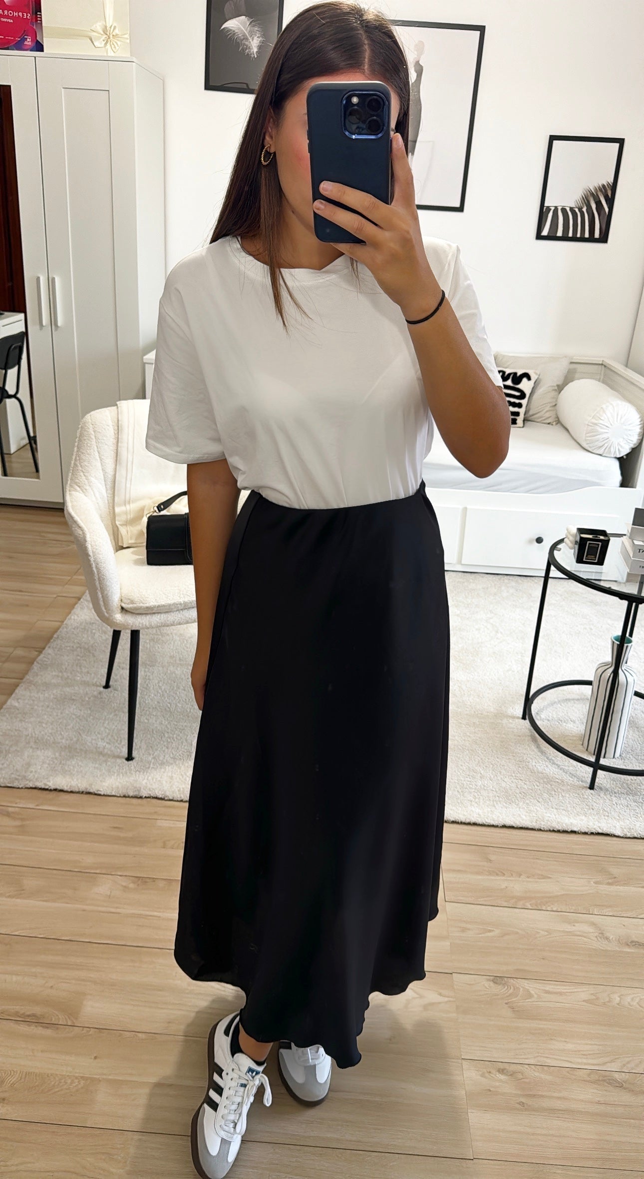 Gonna satinata taglia unica taglia 34-46 , con elastico in vita.