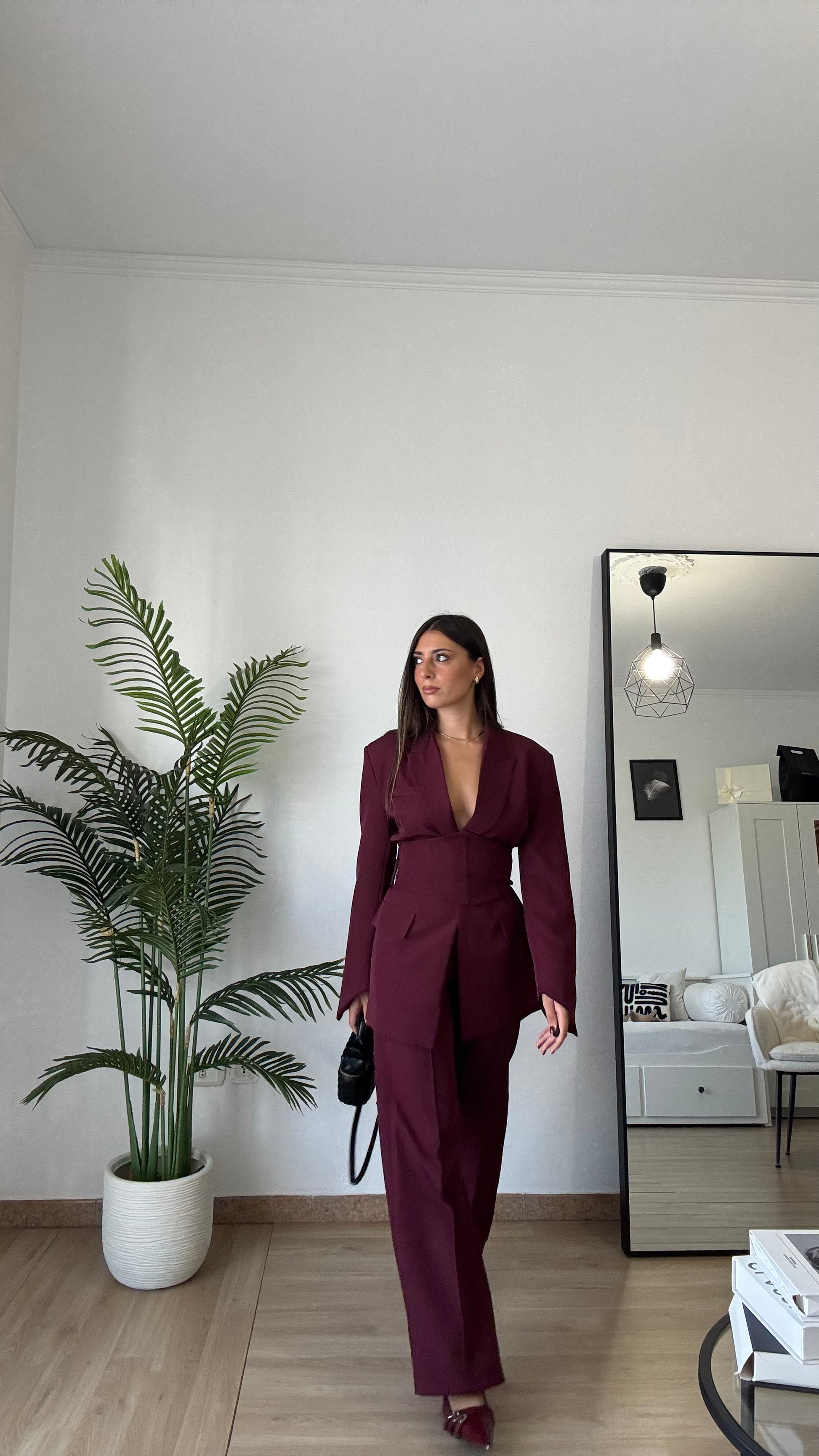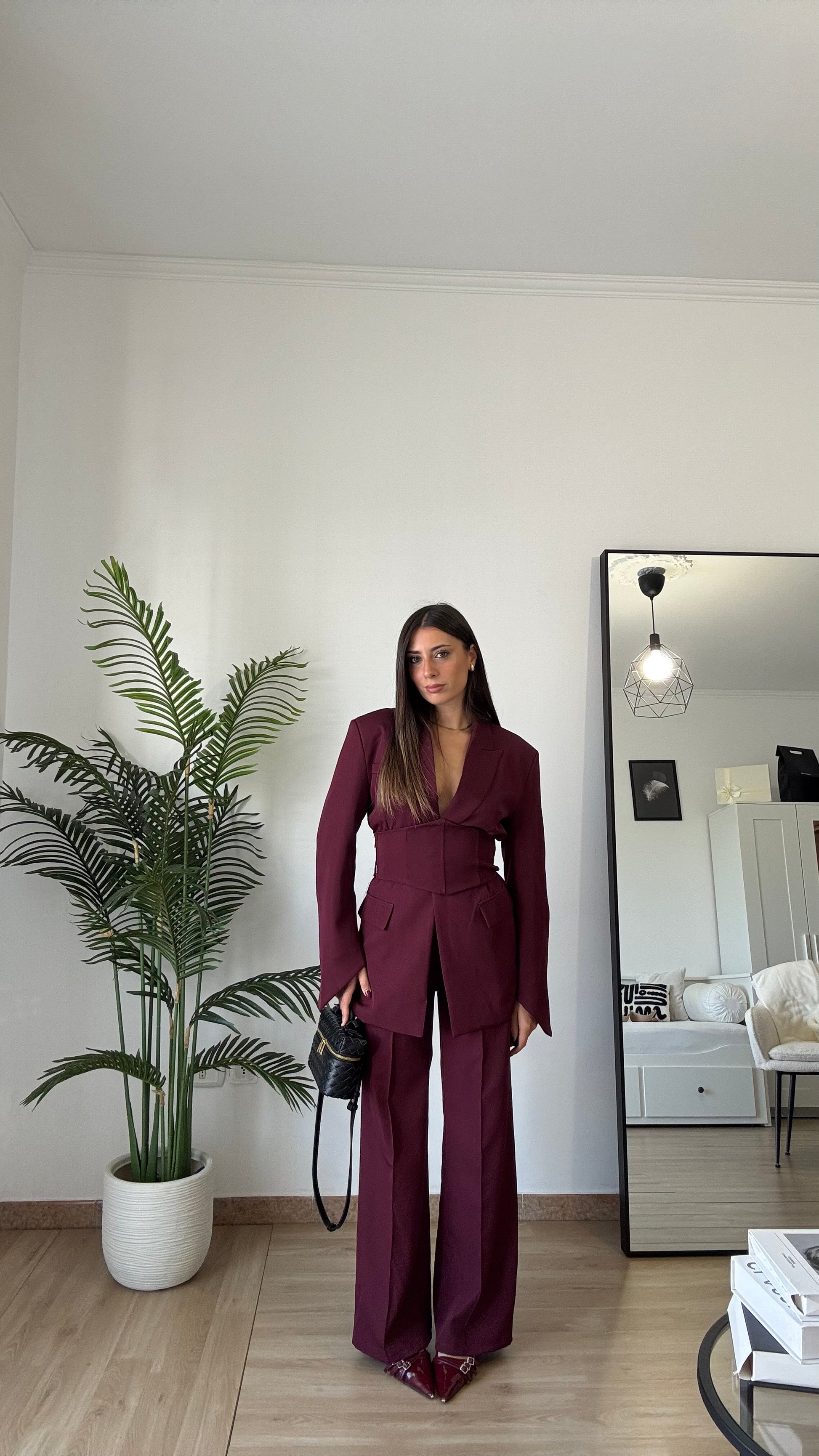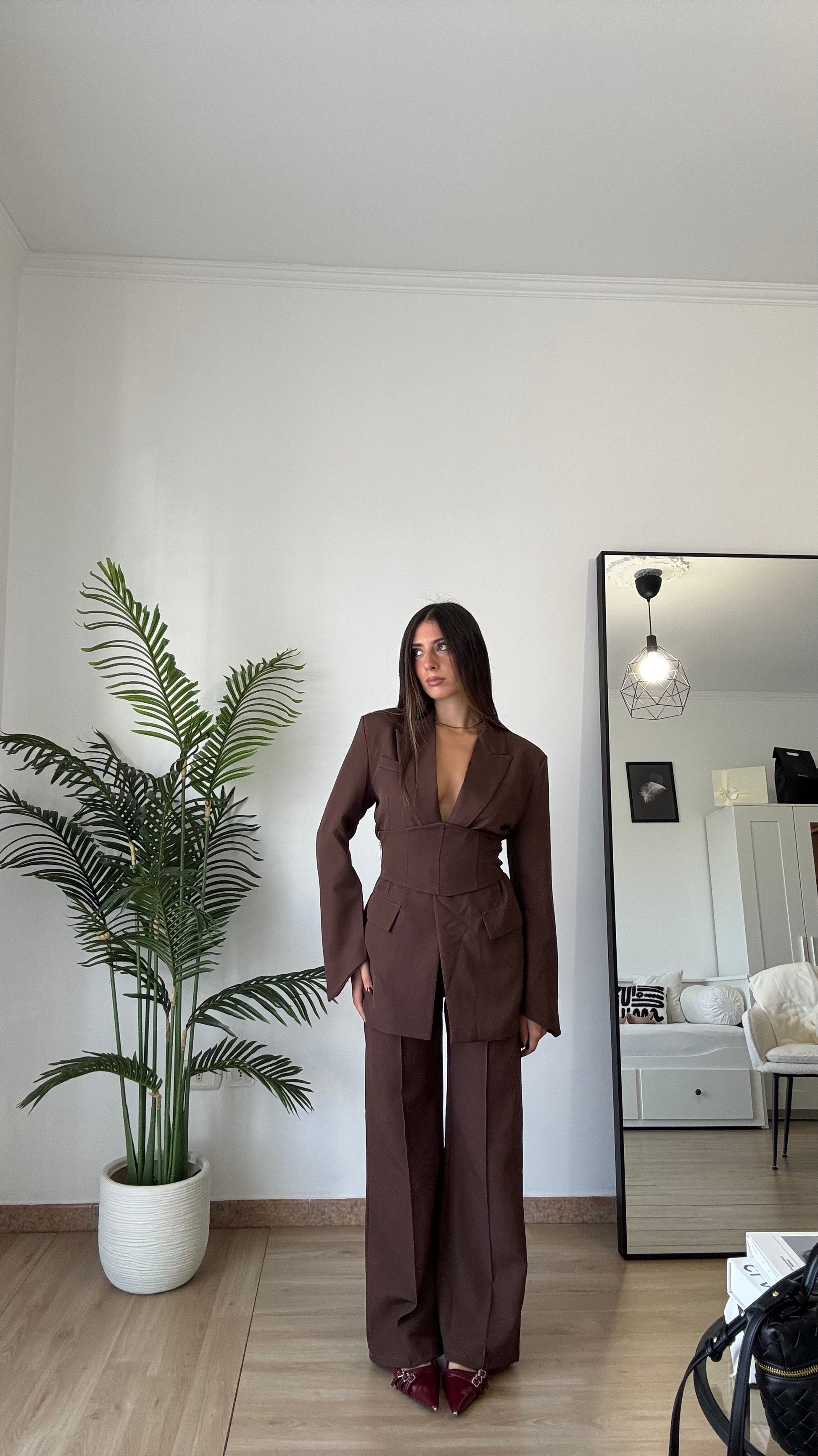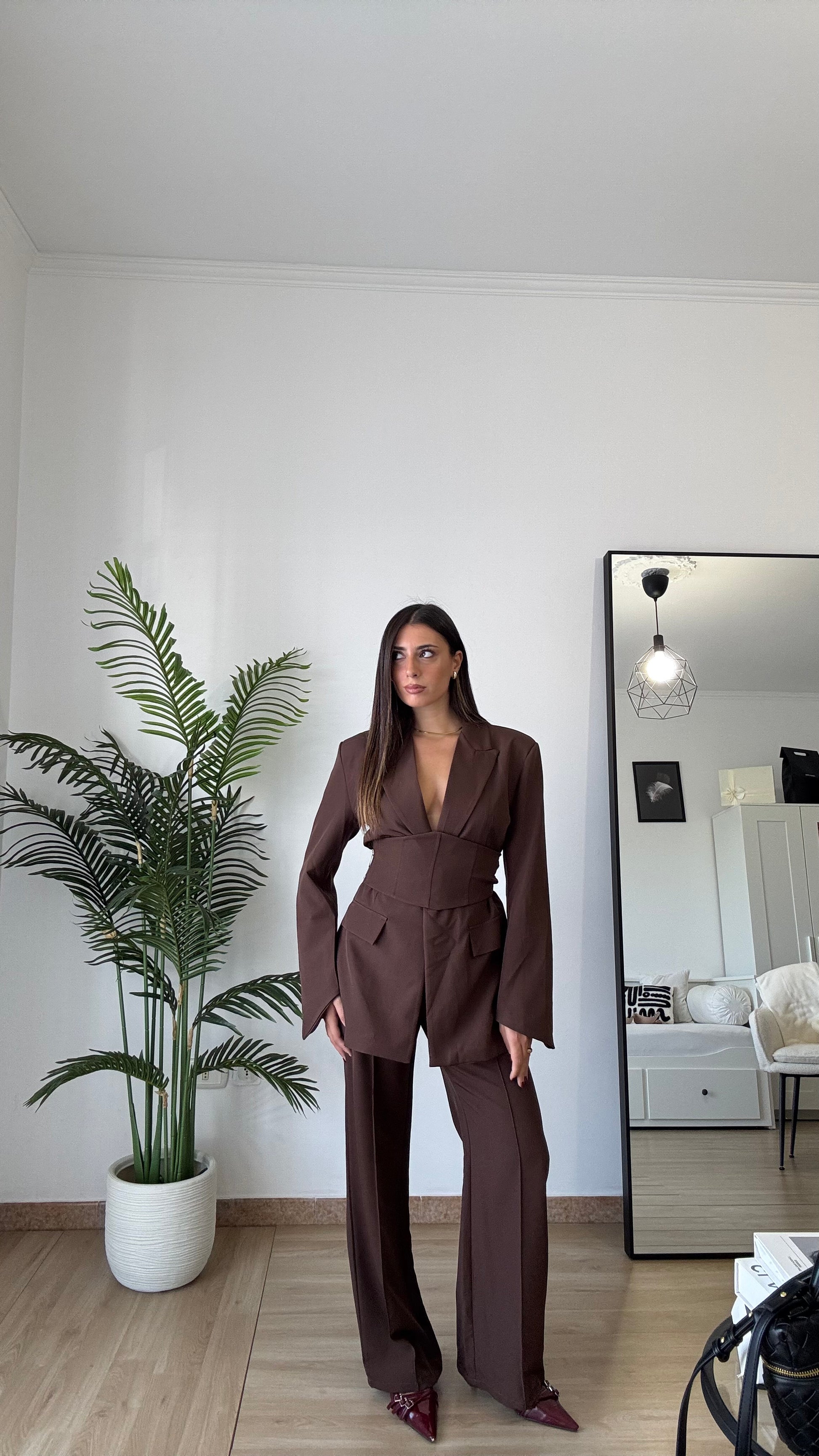 Tailleur composto da 3 pezzi, blazer con spalle imbottite mini corsetto con cerniera removibile , e pantalone con elastico sul retro, taglia unica 36/44.