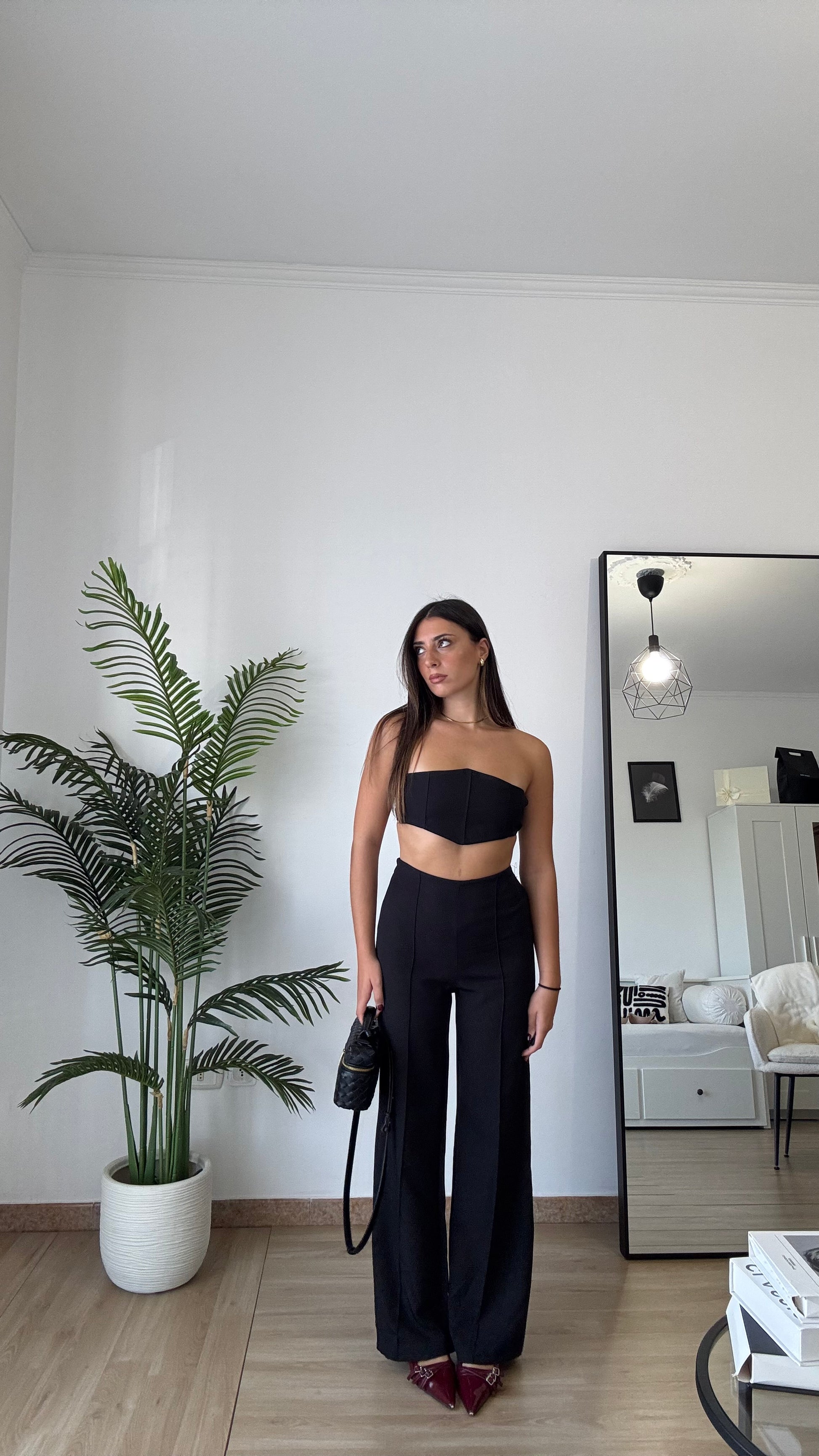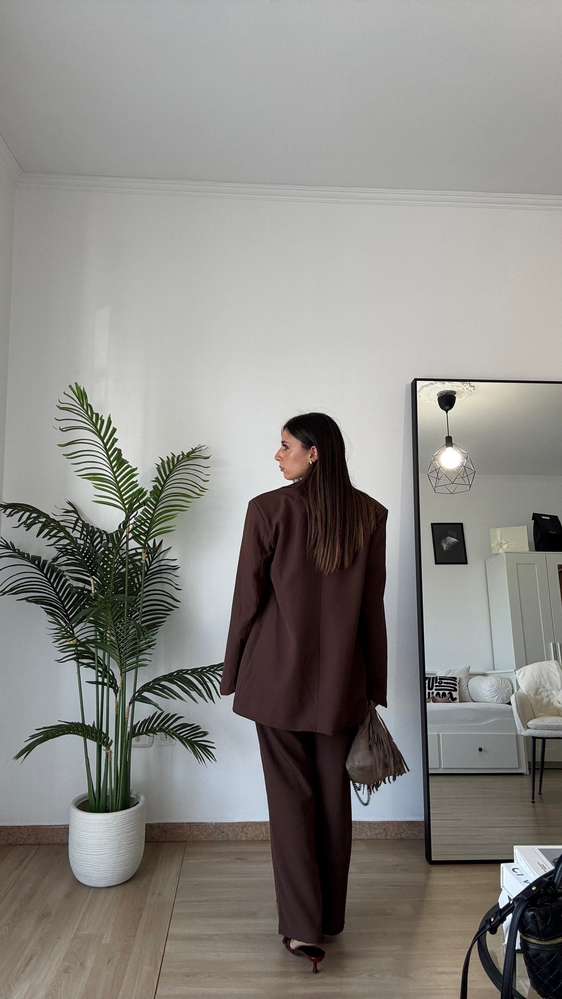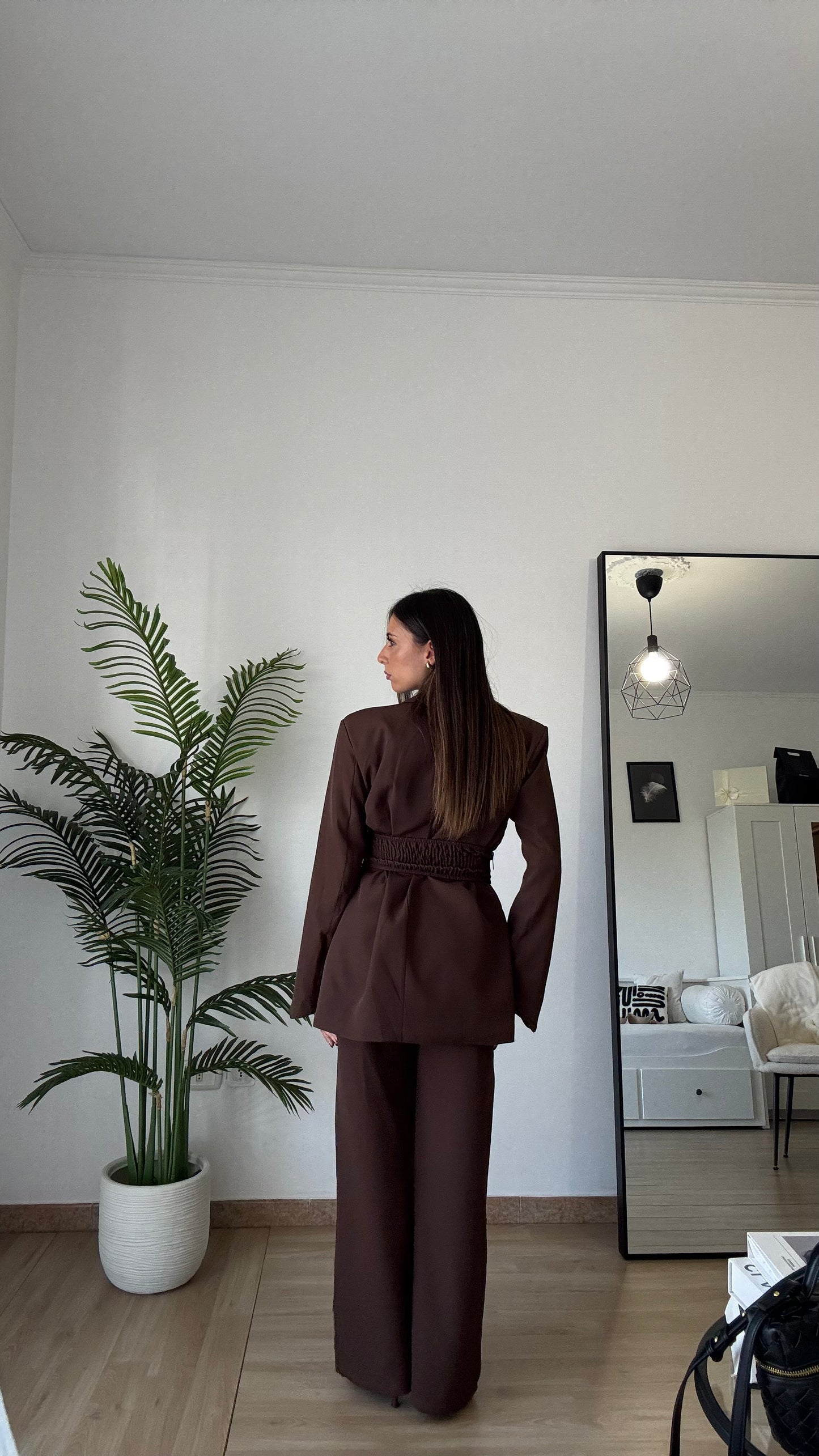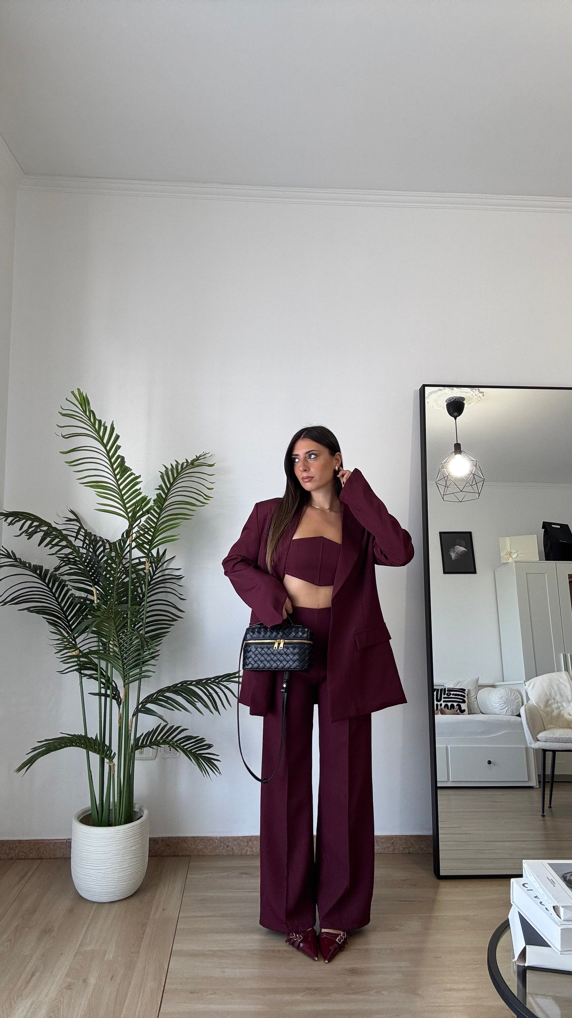 Tailleur composto da 3 pezzi, blazer con spalle imbottite mini corsetto con cerniera removibile , e pantalone con elastico sul retro, taglia unica 36/44.