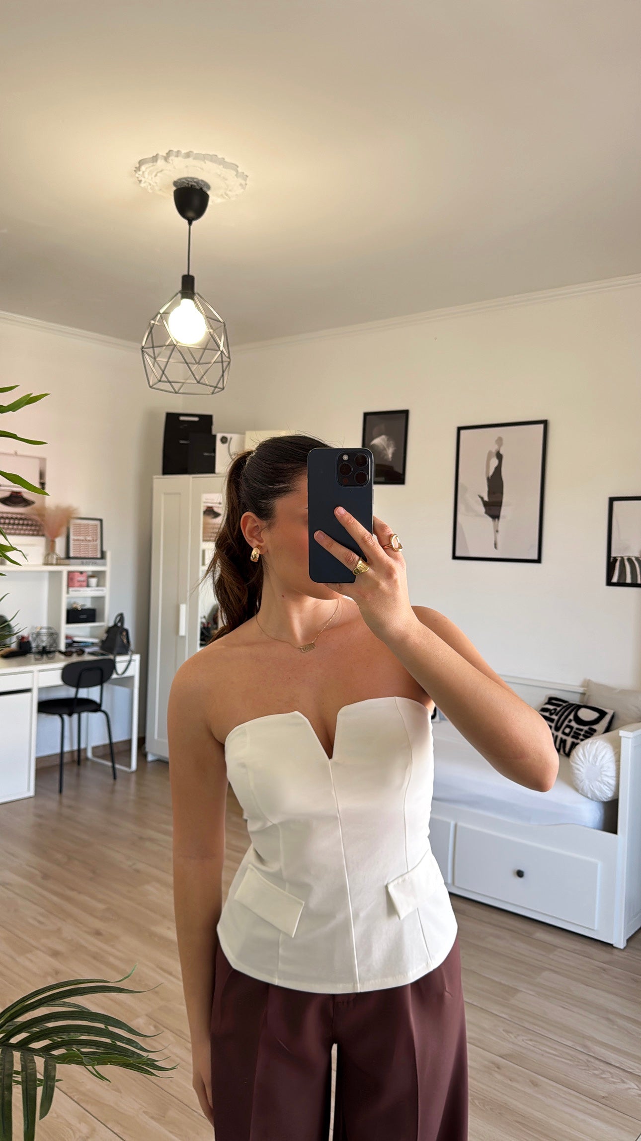 Top a Bustier elasticizzato NON è compreso di camicia, senza coppe interne, presenta il ferretto, taglia unica 36/44.