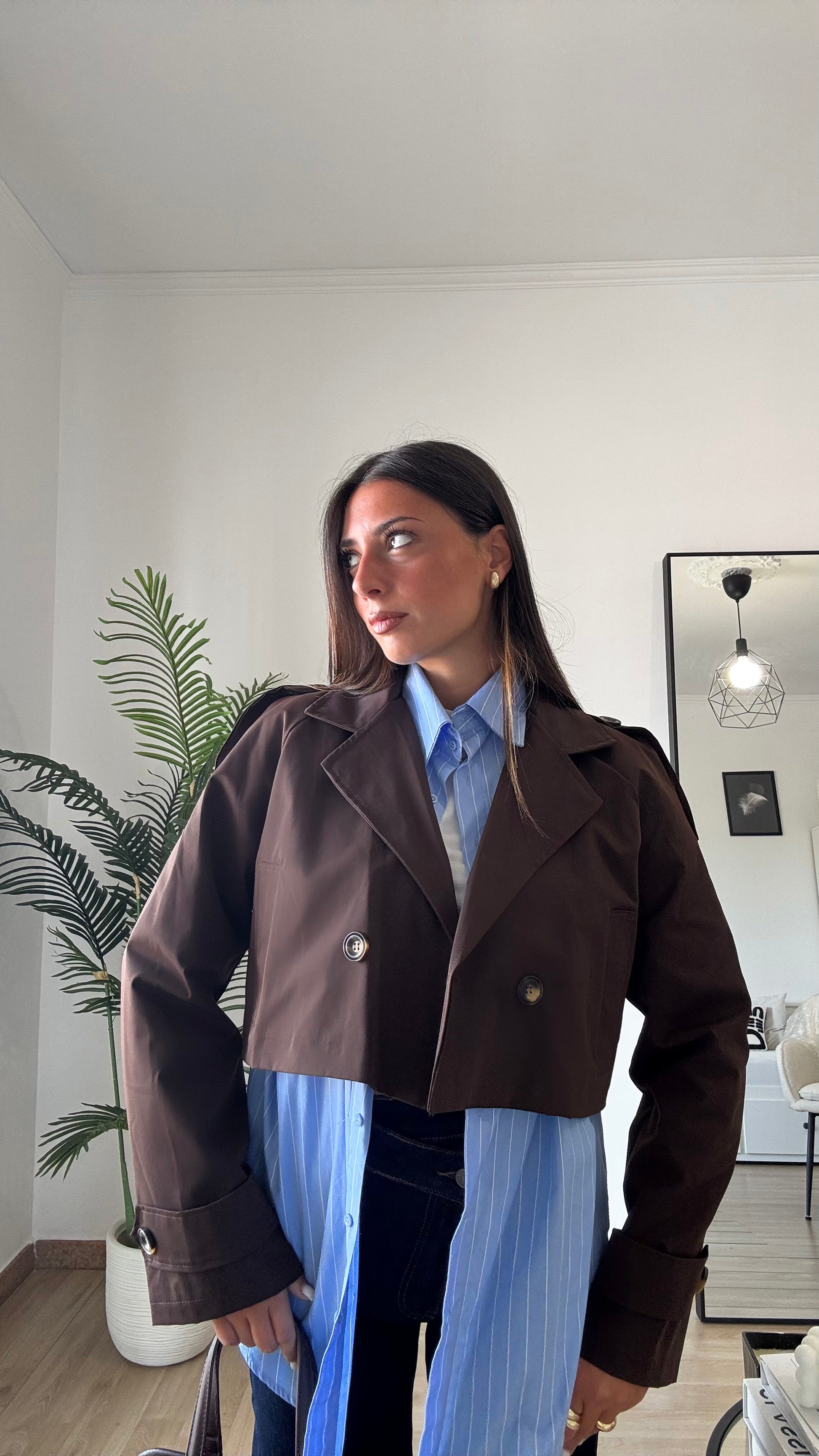 Trench crop 100% cotone interno foderato, tg unica che veste 34-36, leggermente over size, tasche centrali.